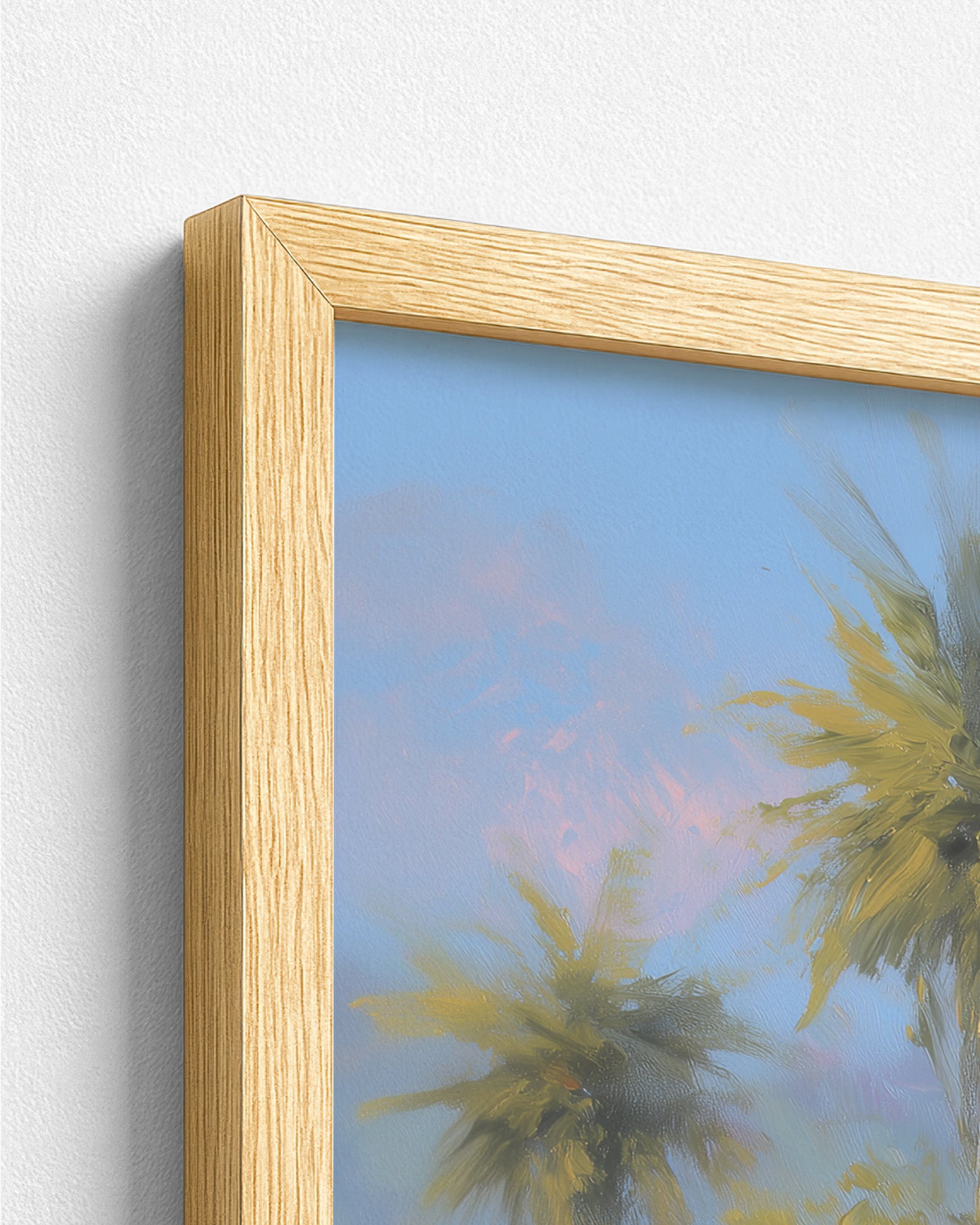 Premium artwork printed on high-quality paper, professionally mounted within a durable pine wood frame.