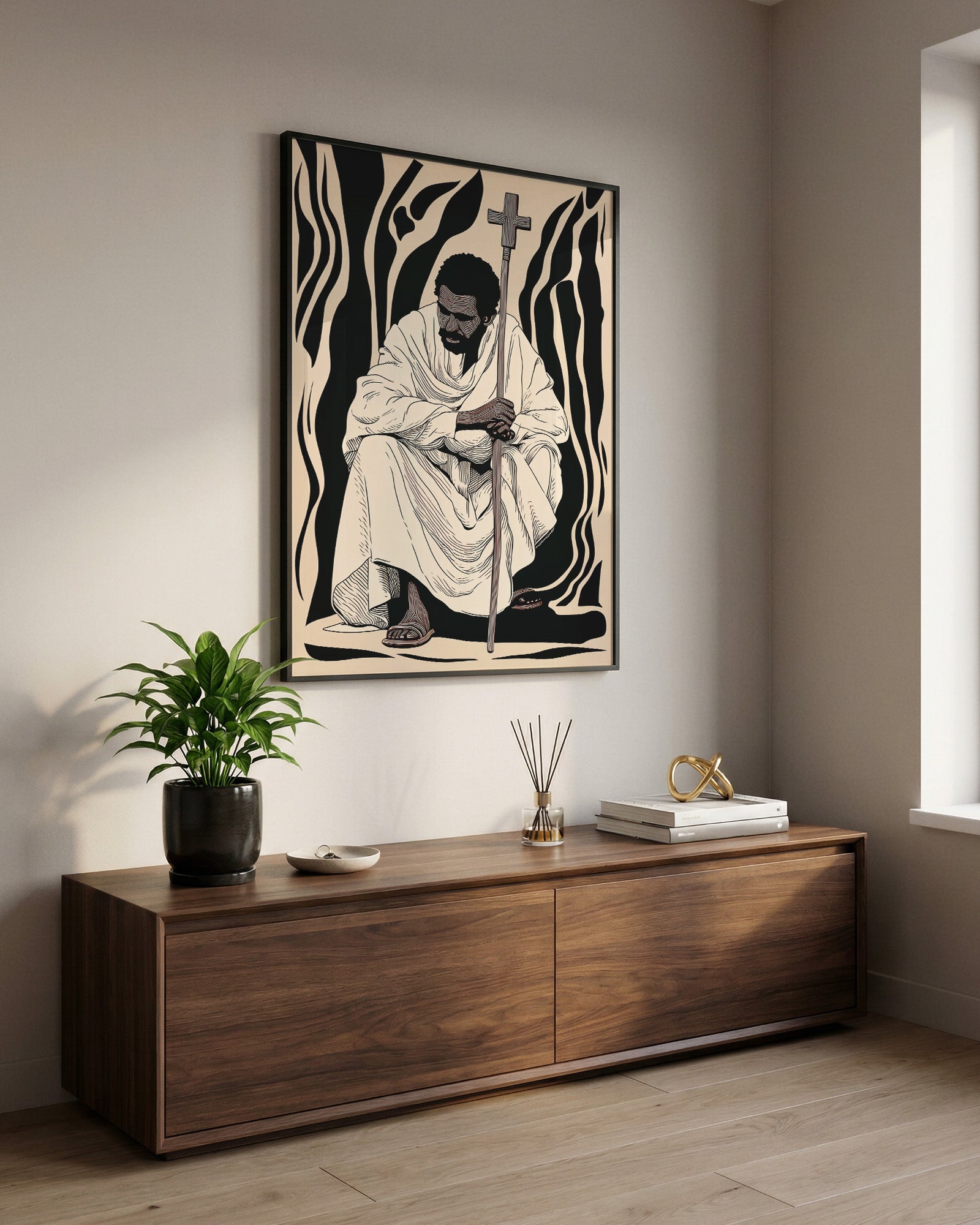 This artwork draws inspiration from the spiritual traditions of Ethiopia, where faith and culture have been closely intertwined for centuries. Ethiopia is home to one of the oldest Christian traditions in the world, with the Ethiopian Orthodox Tewahedo Church tracing its origins back to the Kingdom of Aksum in the 4th century.