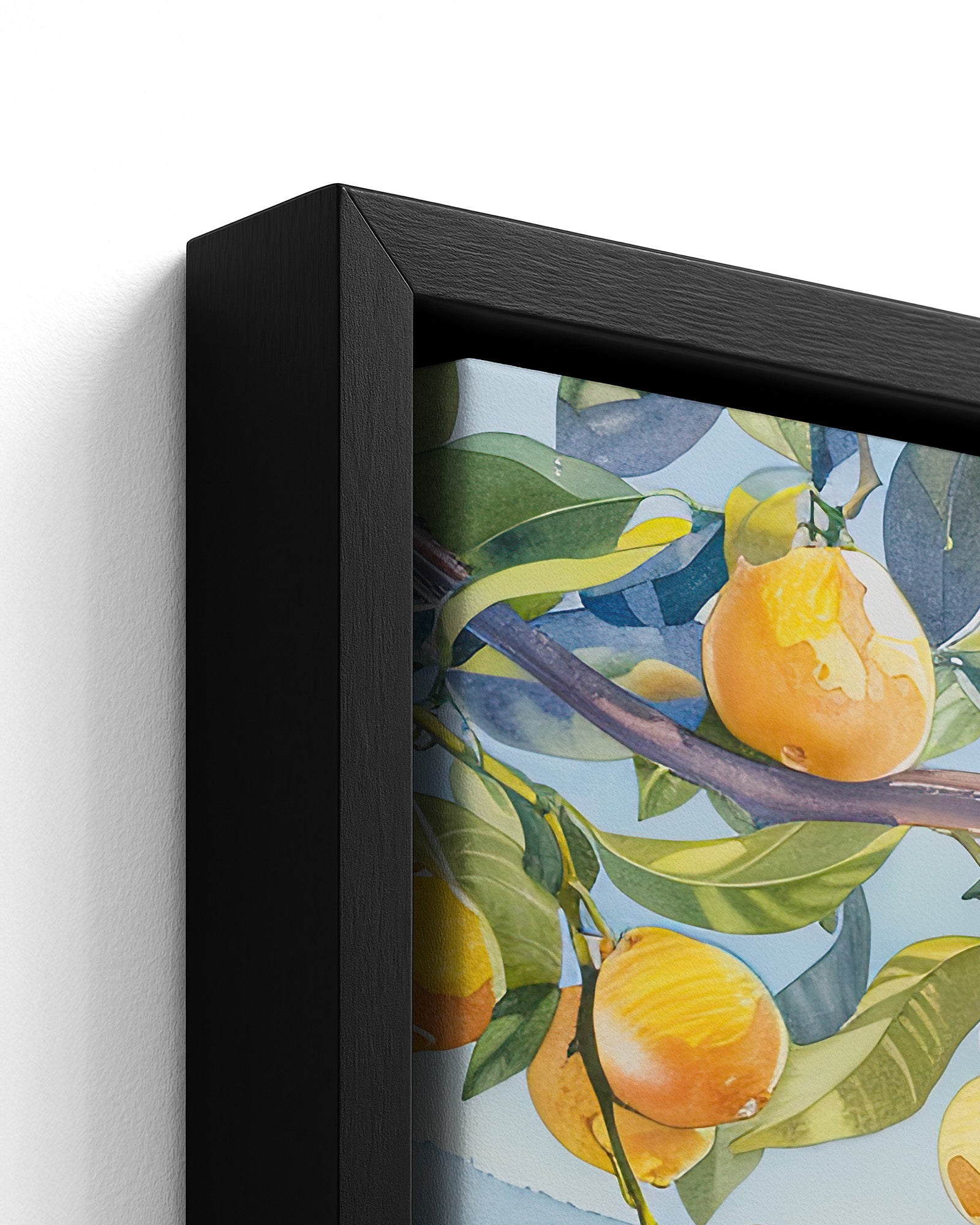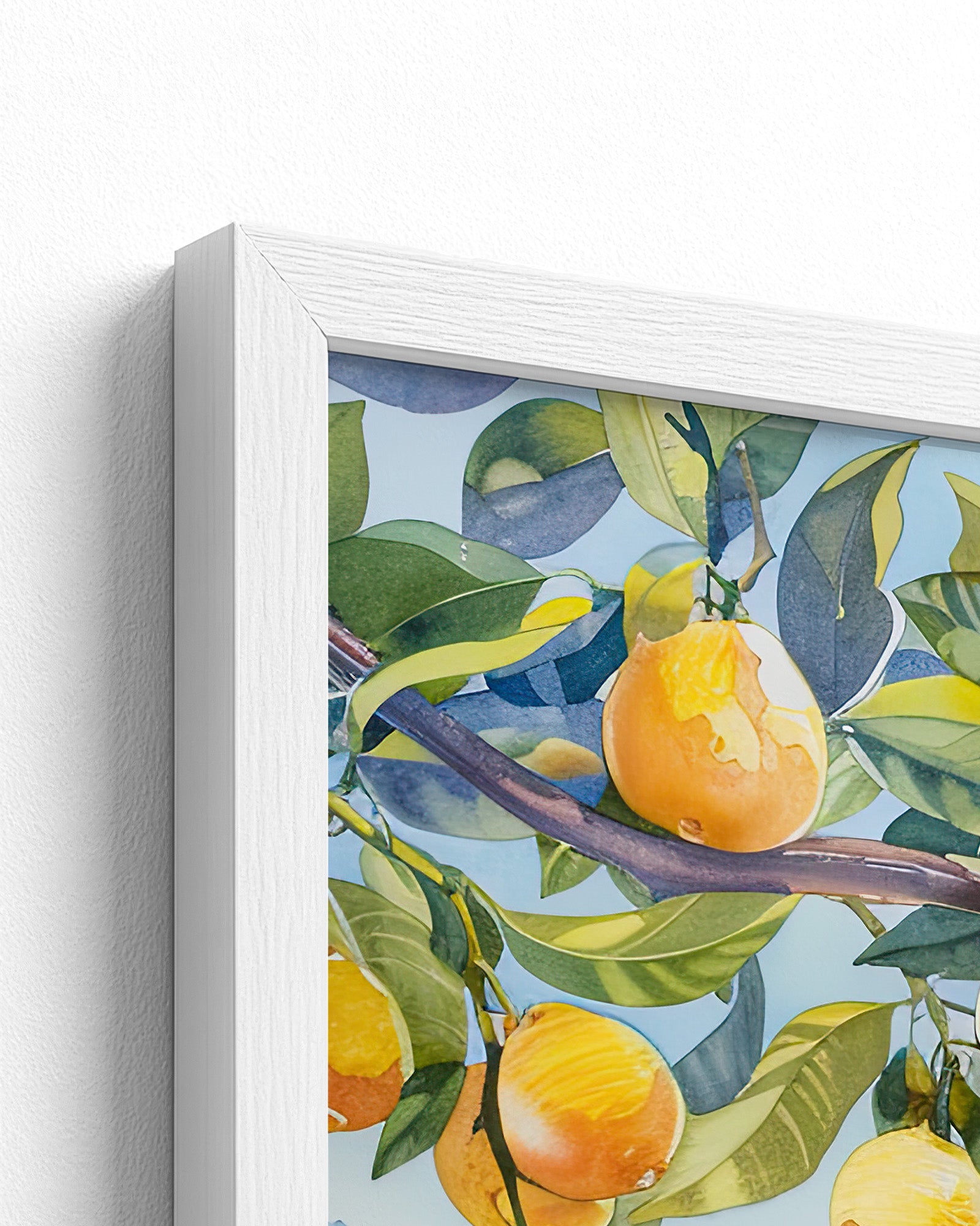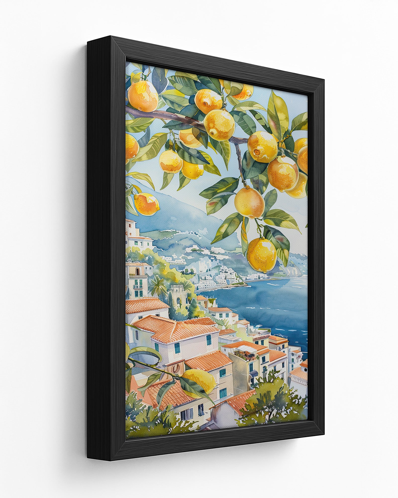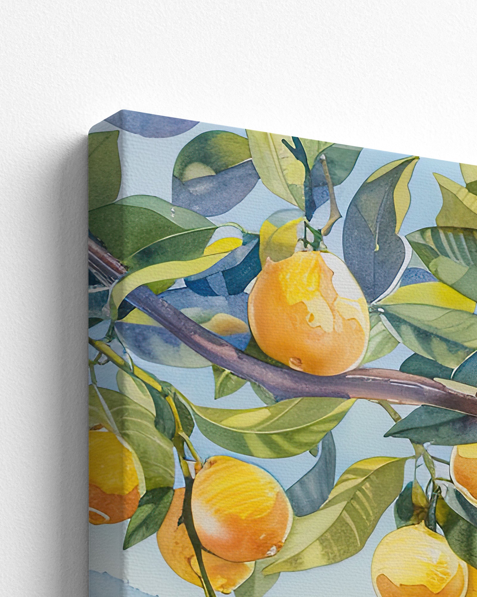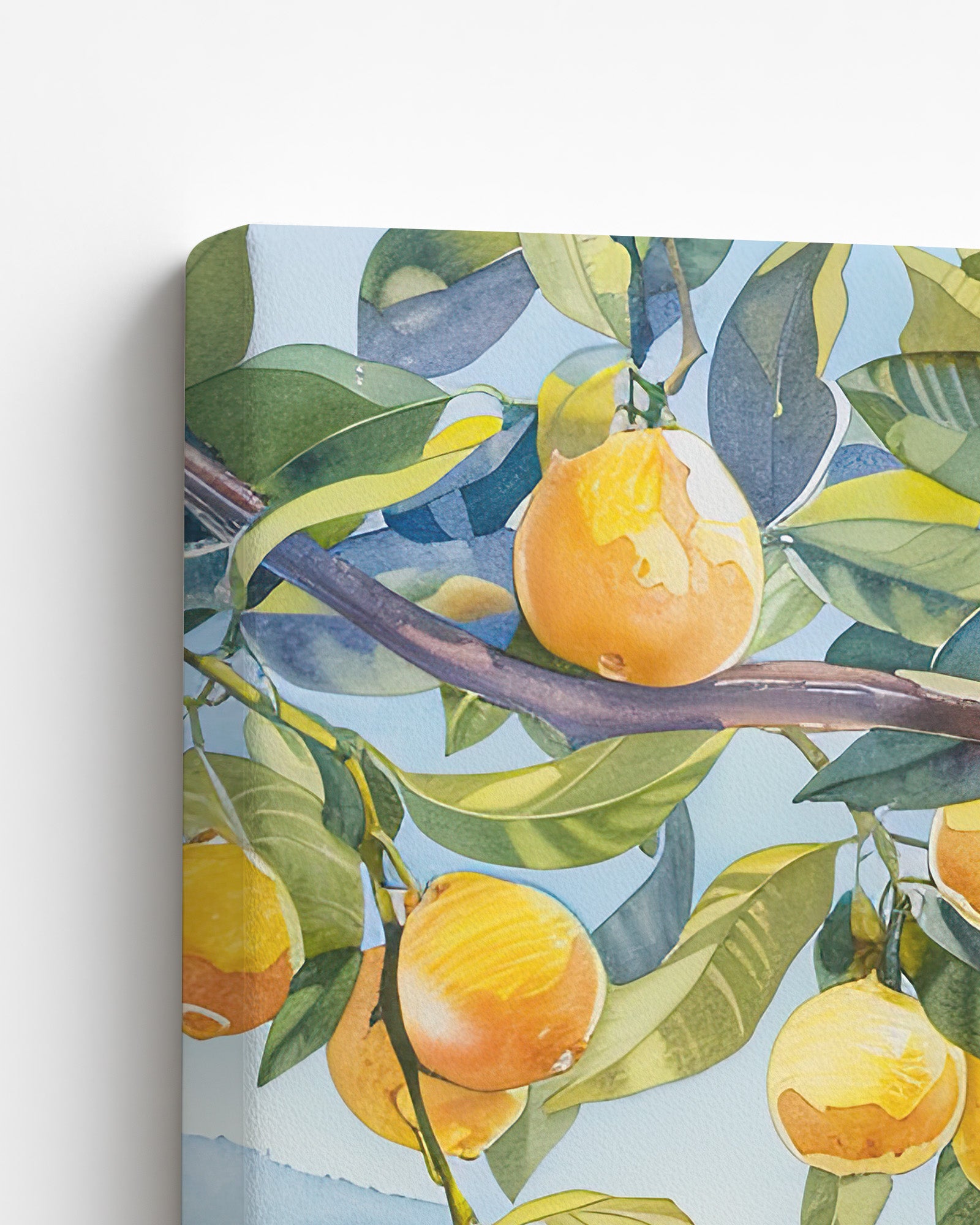 Transport yourself to the picturesque landscapes of Greece with our stunning wall art painting. This piece captures the essence of a Greek balcony adorned with vibrant lemon trees, overlooking charming whitewashed houses and the serene Mediterranean coast.