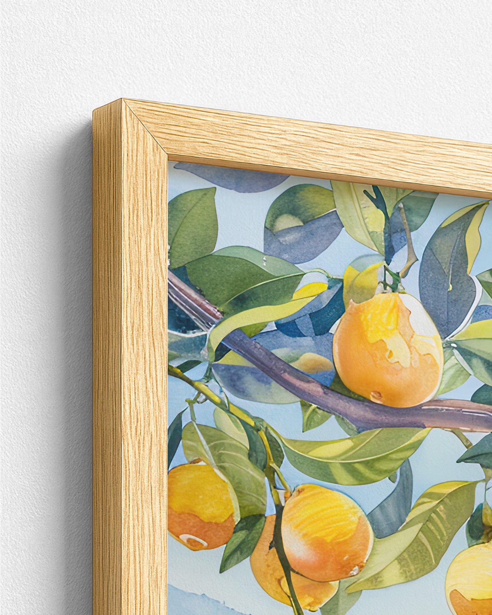 Premium artwork printed on high-quality paper, professionally mounted within a durable pine wood frame.