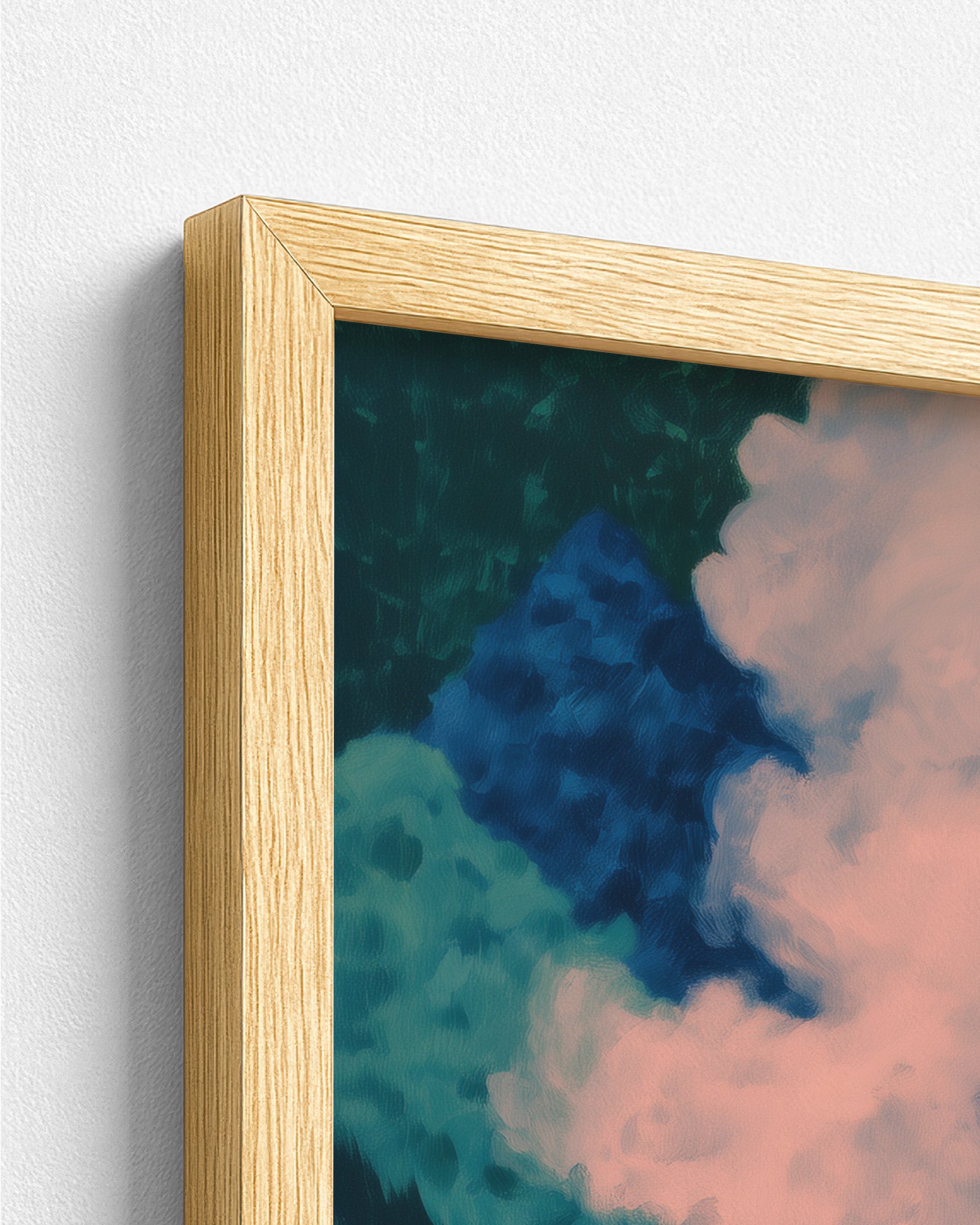 Premium artwork printed on high-quality paper, professionally mounted within a durable pine wood frame.