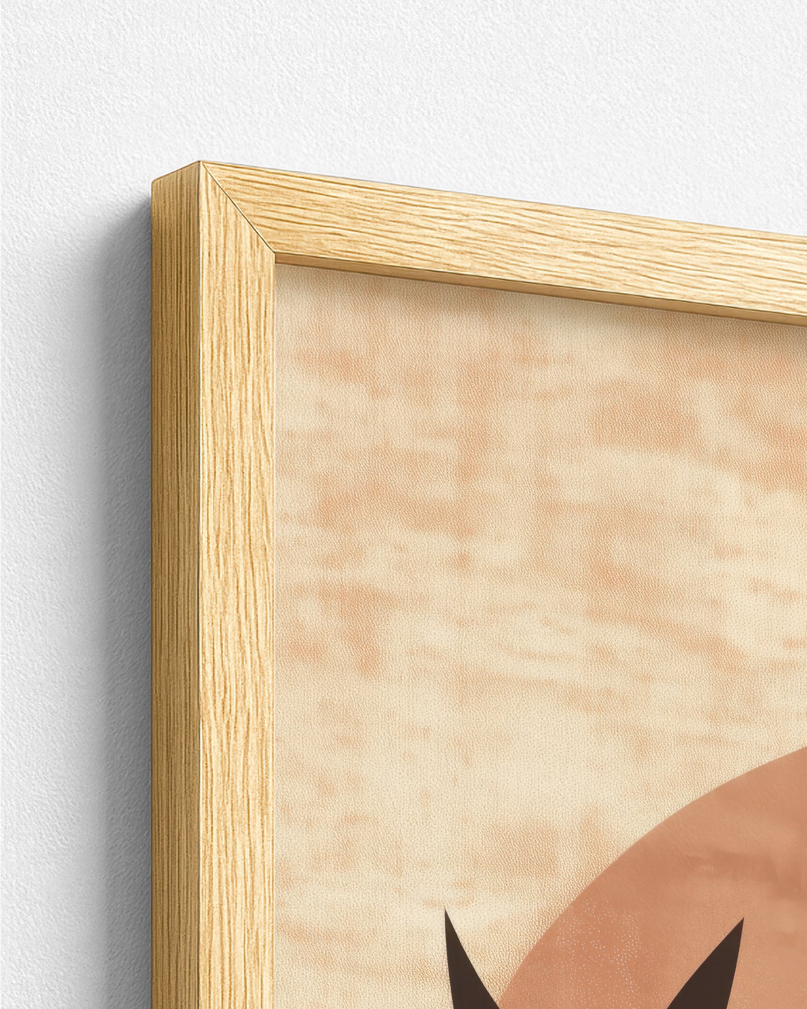 Premium artwork printed on high-quality paper, professionally mounted within a durable pine wood frame.