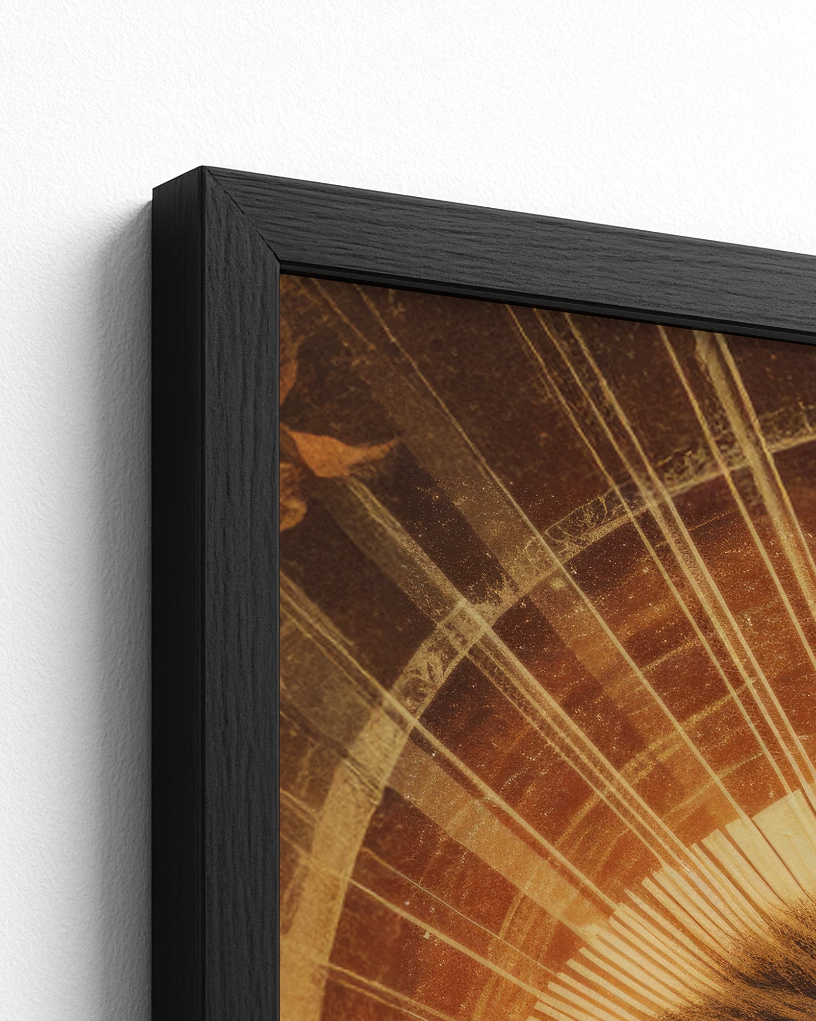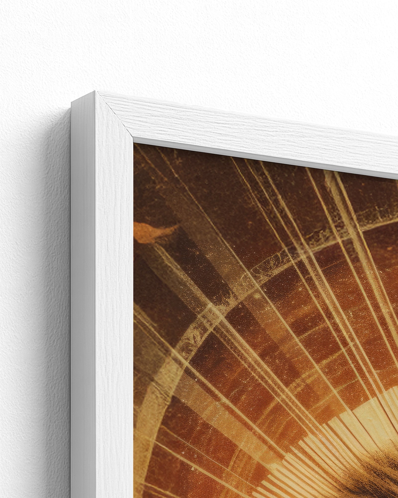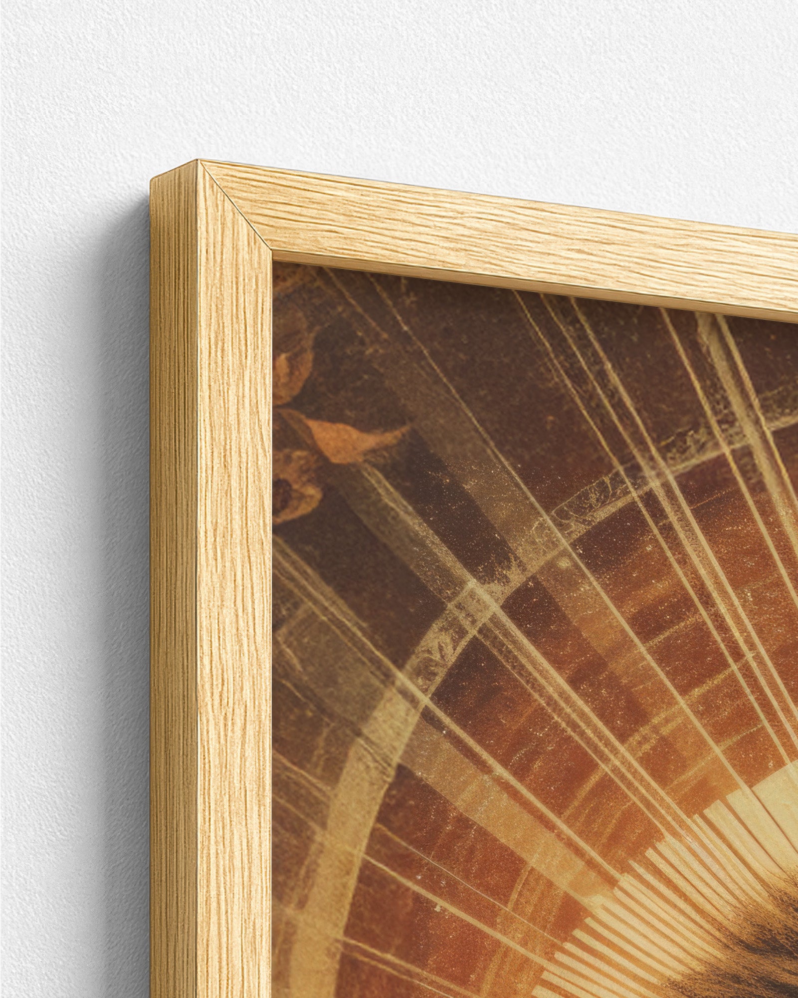 Premium artwork printed on high-quality paper, professionally mounted within a durable pine wood frame.