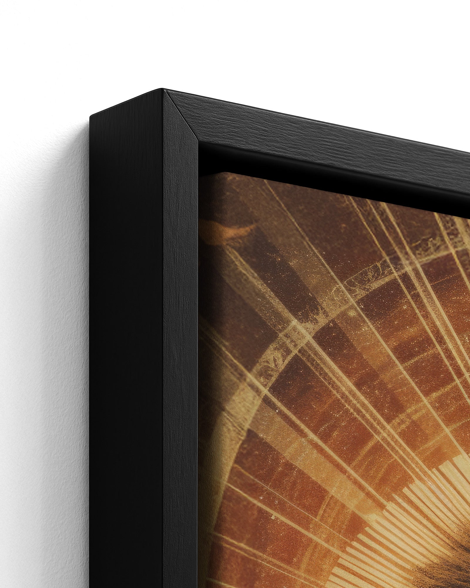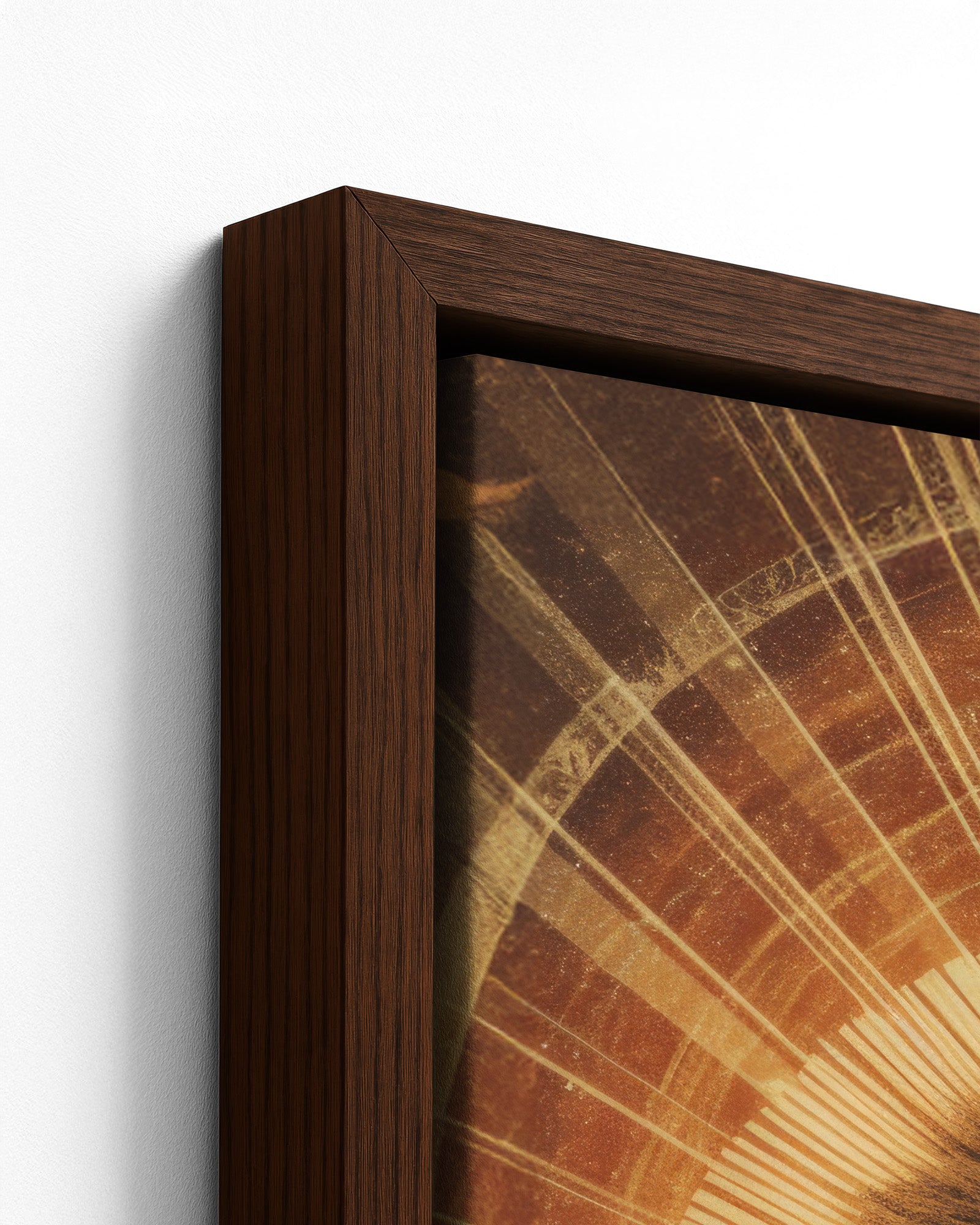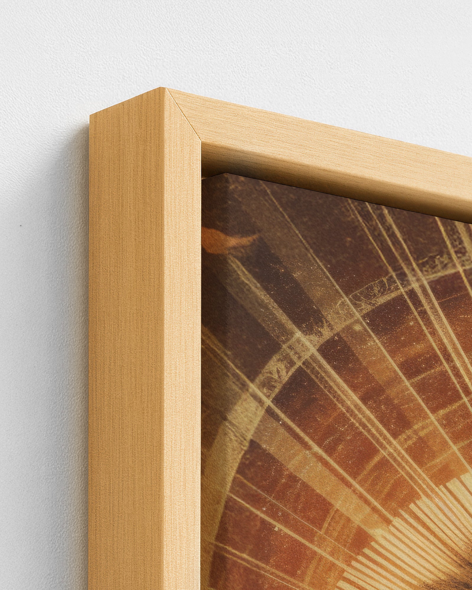 Premium artwork printed on high-quality paper, professionally mounted within a durable pine wood frame.