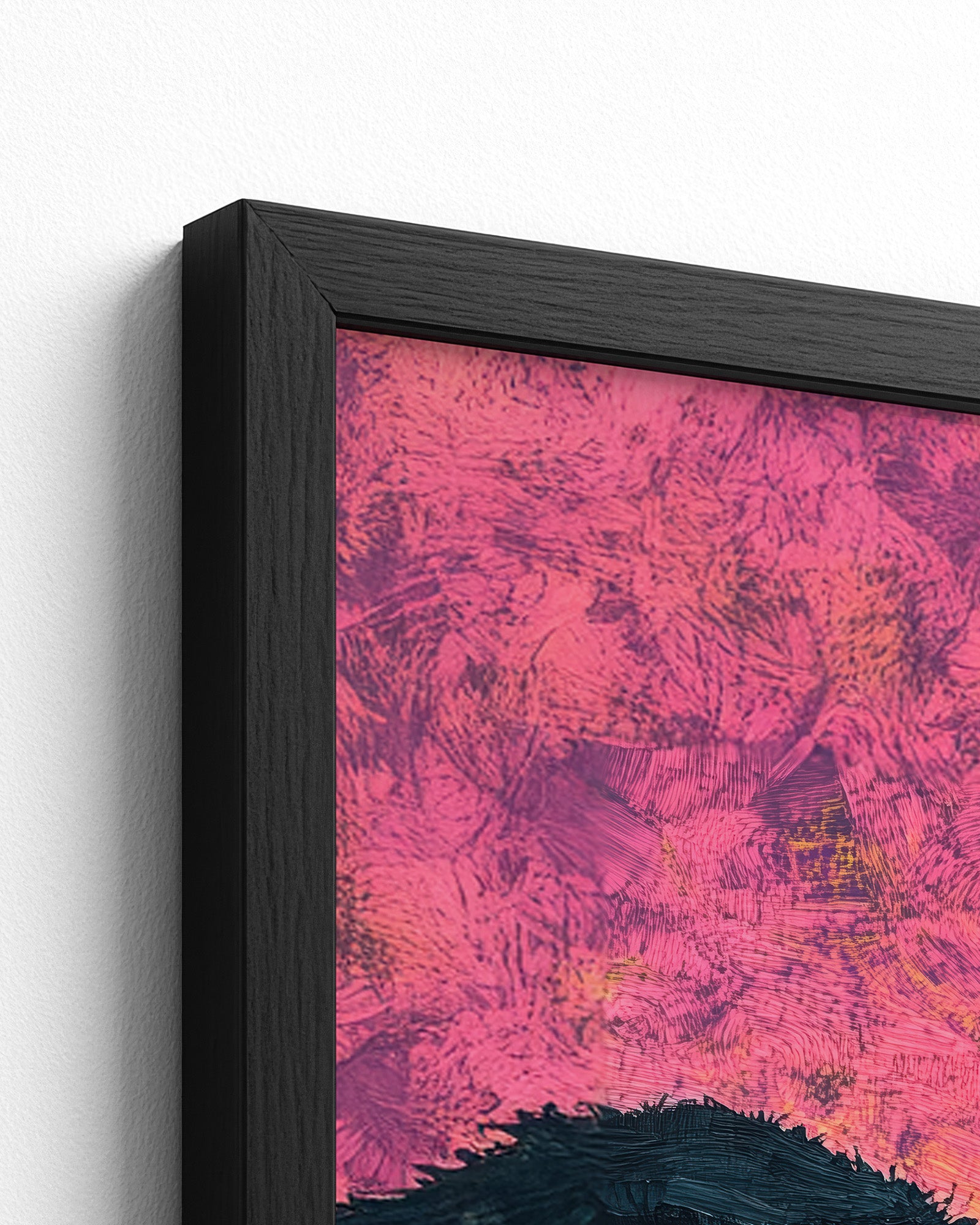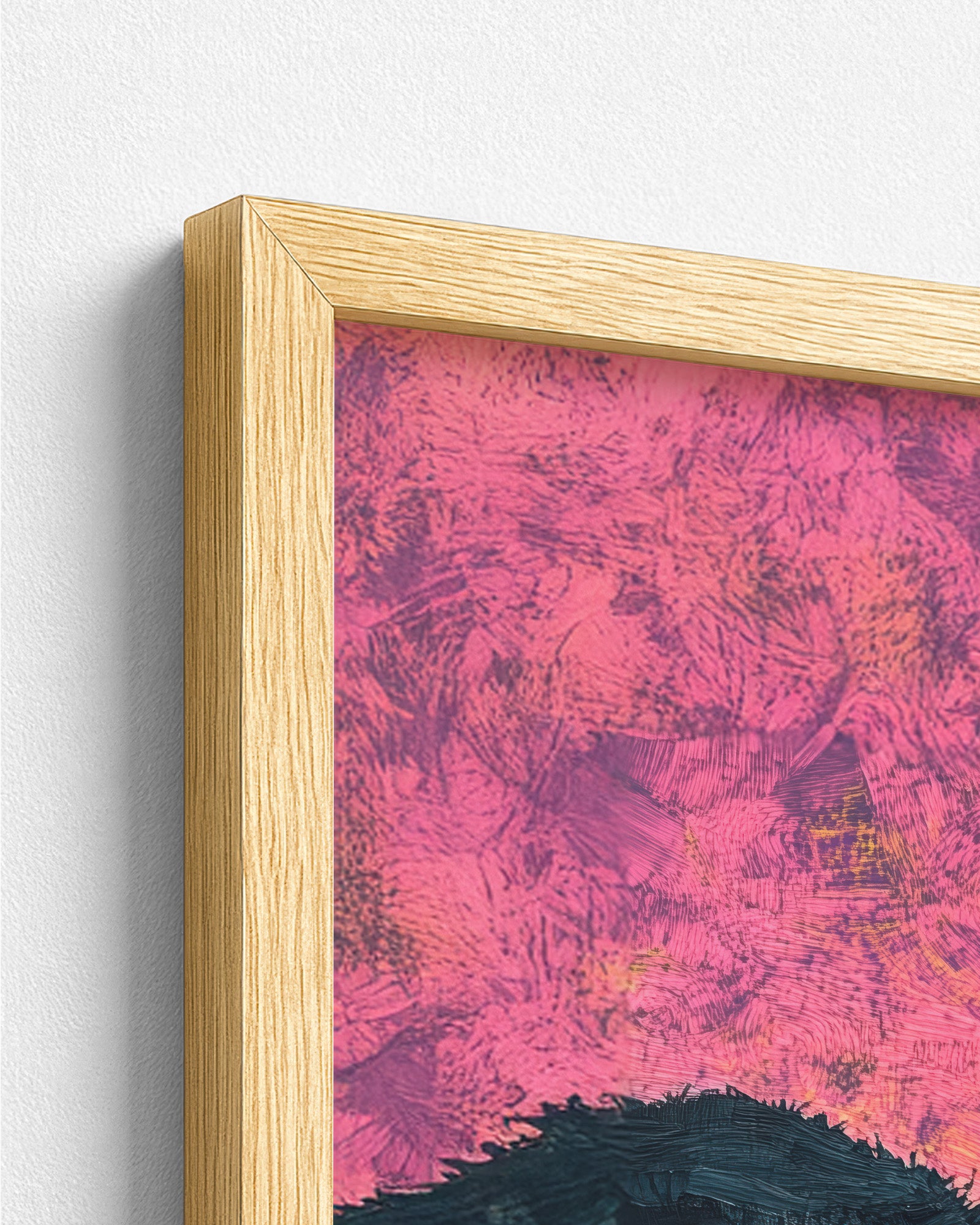 Premium artwork printed on high-quality paper, professionally mounted within a durable pine wood frame.