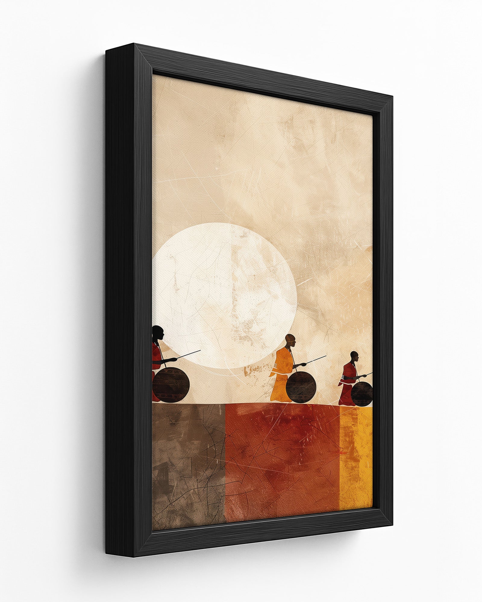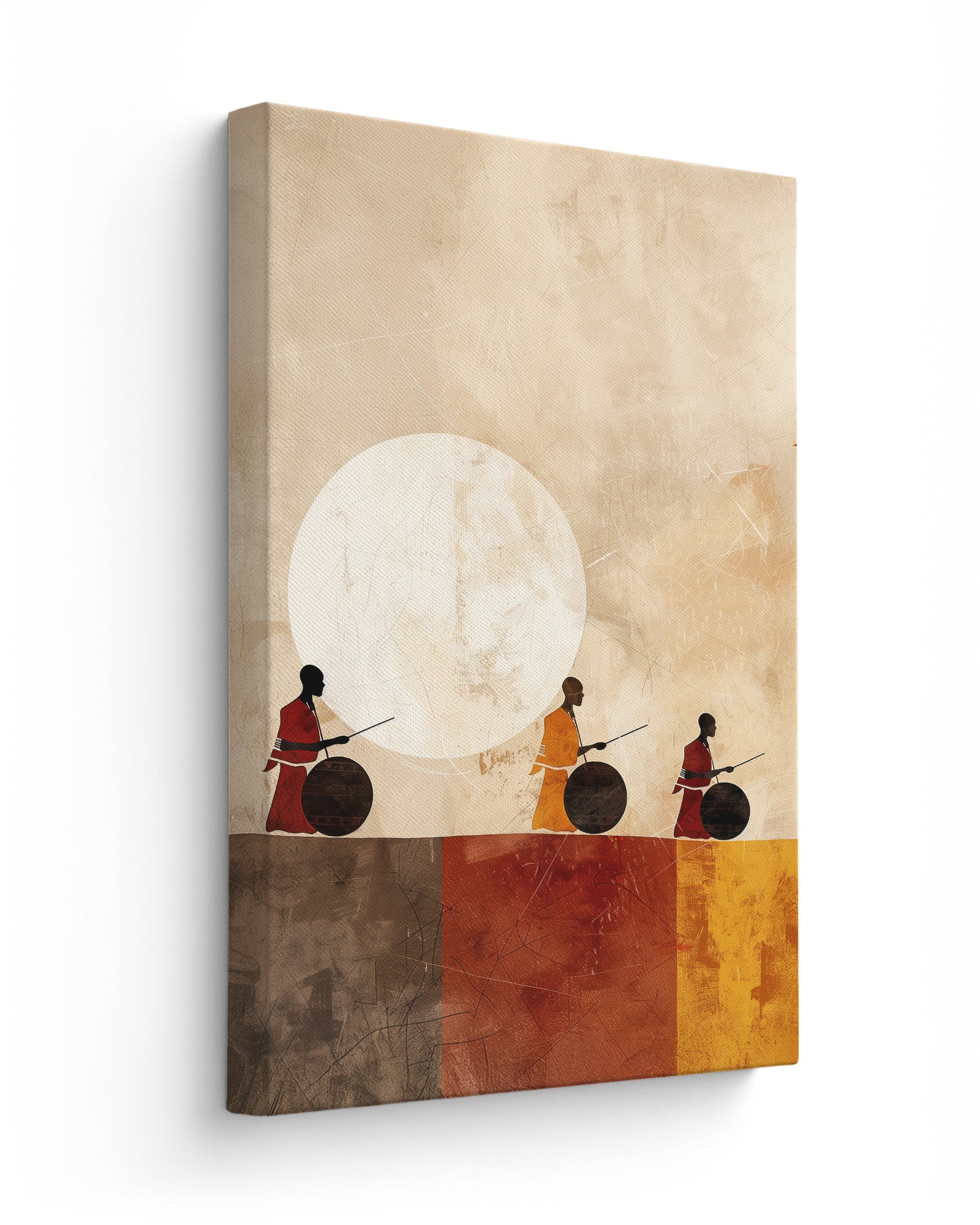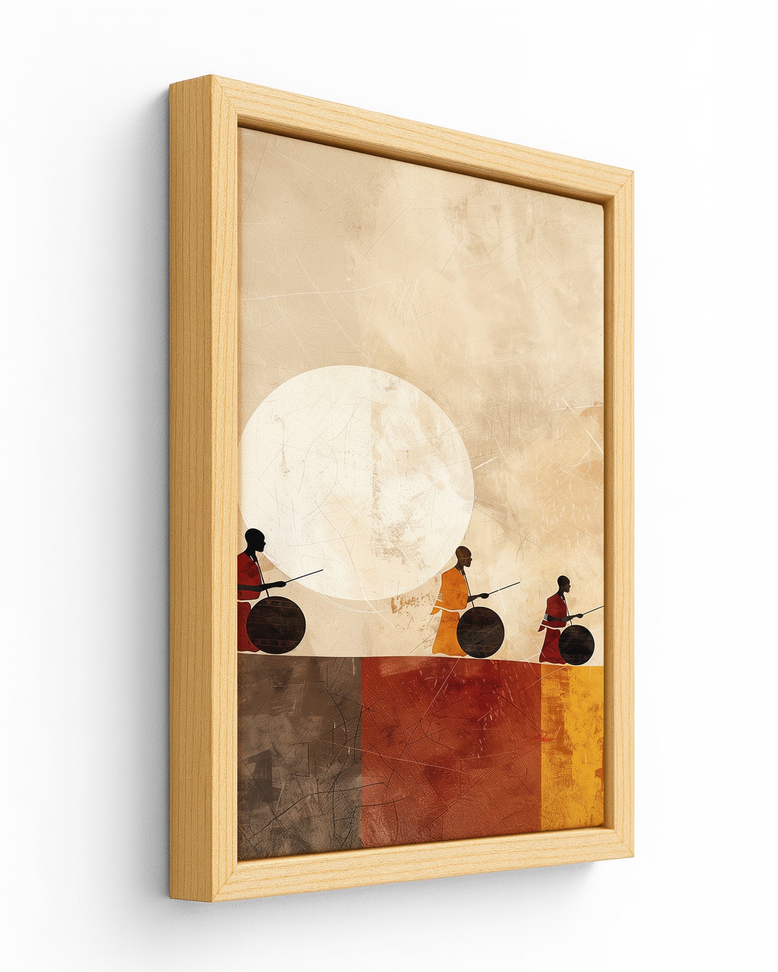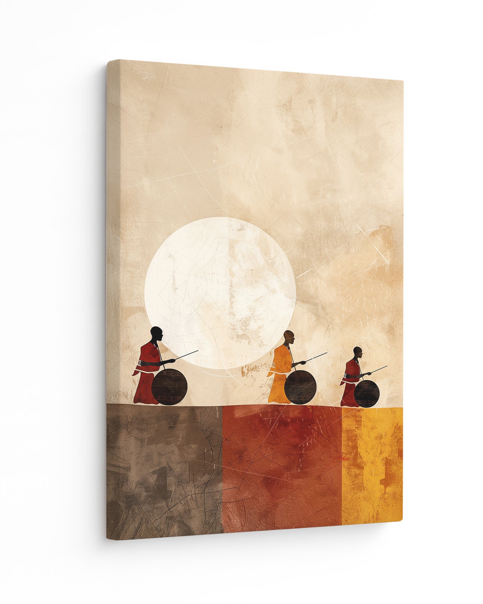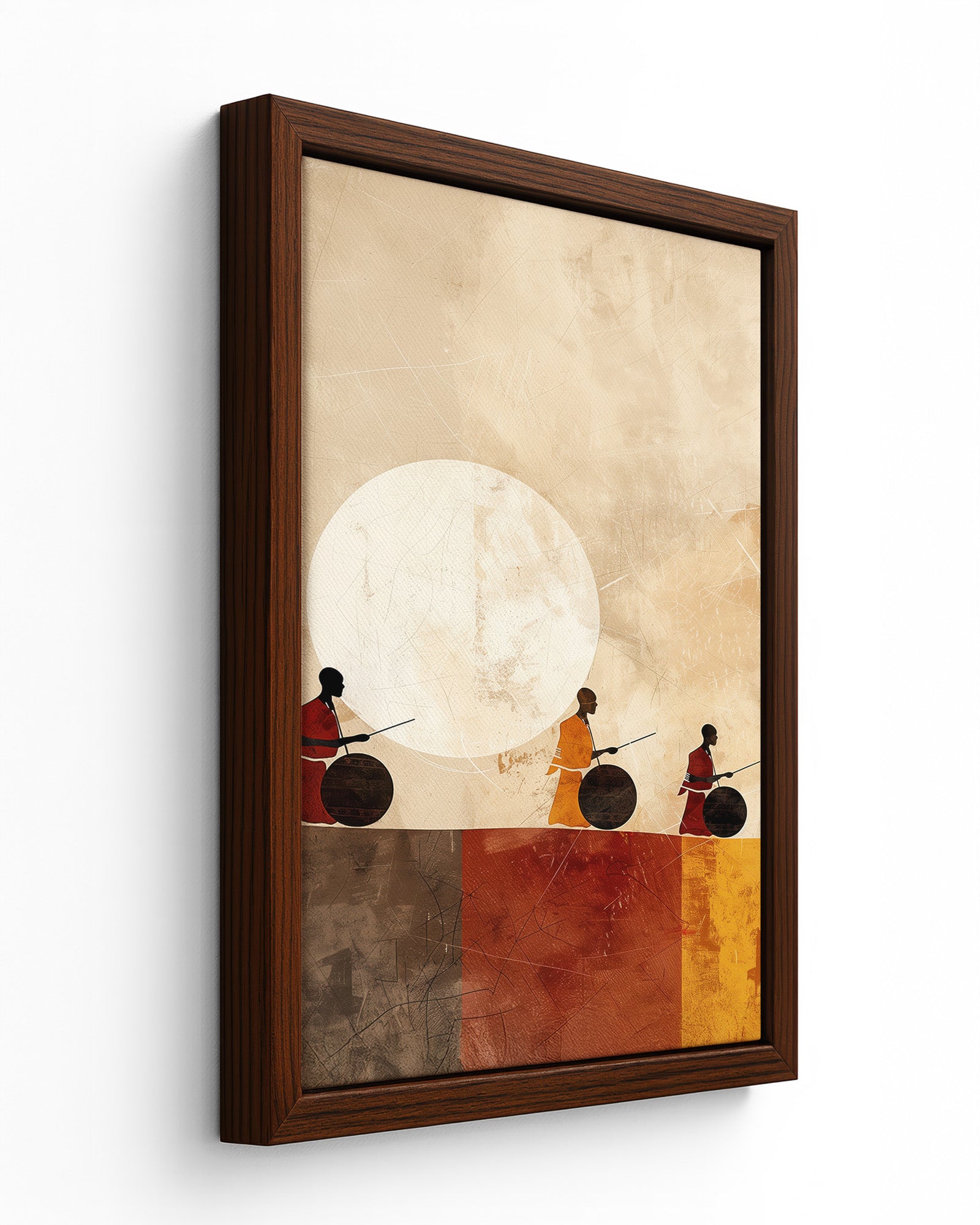 Immerse yourself in the soulful rhythm of African heritage with this minimalist art piece. Featuring a serene scene of drummers in muted earth tones, the artwork captures subtle motion and cultural celebration in an elegant, understated style.