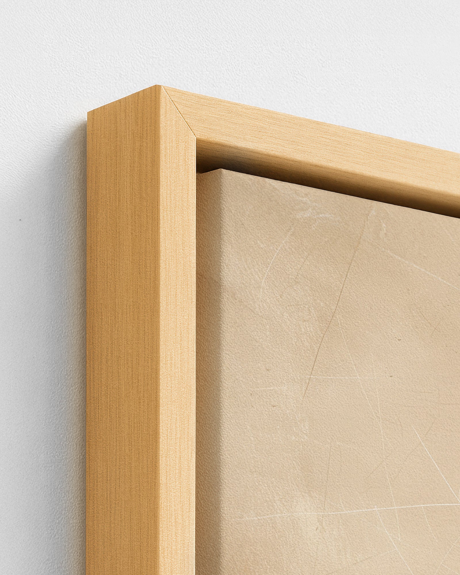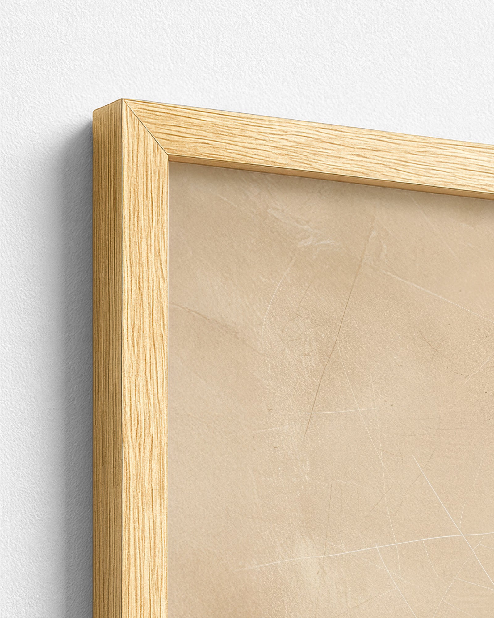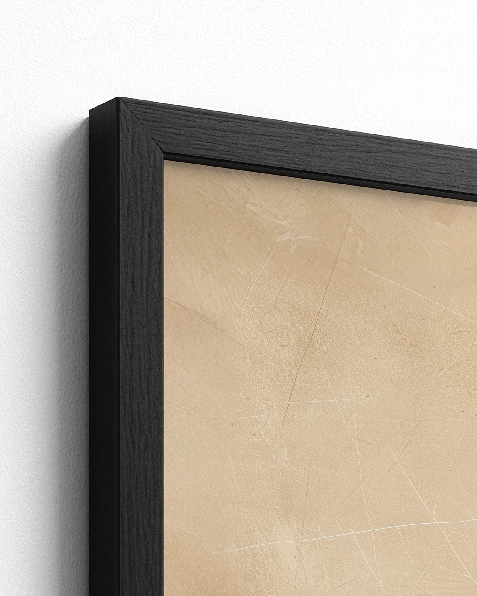 Premium artwork printed on high-quality paper, professionally mounted within a durable pine wood frame.