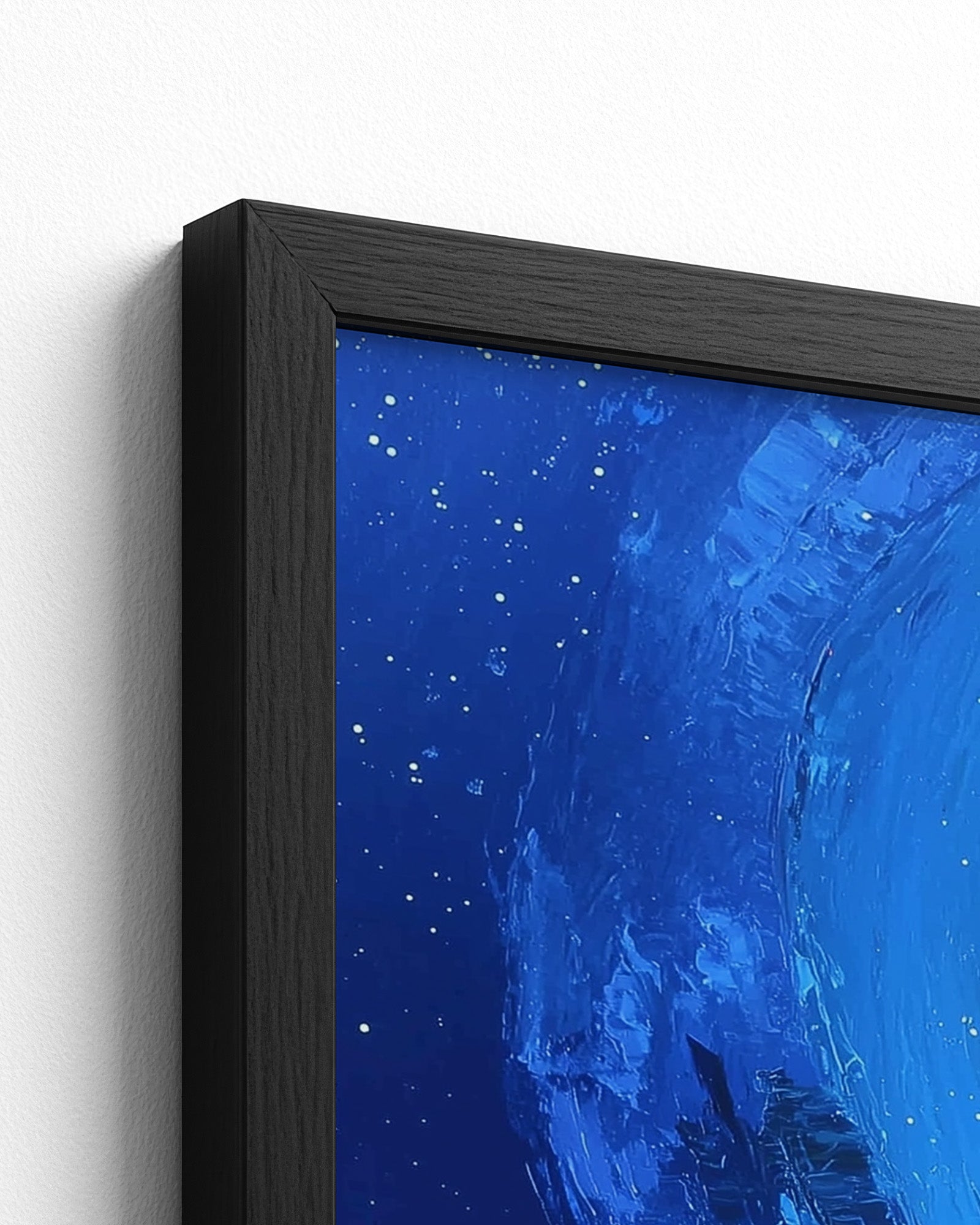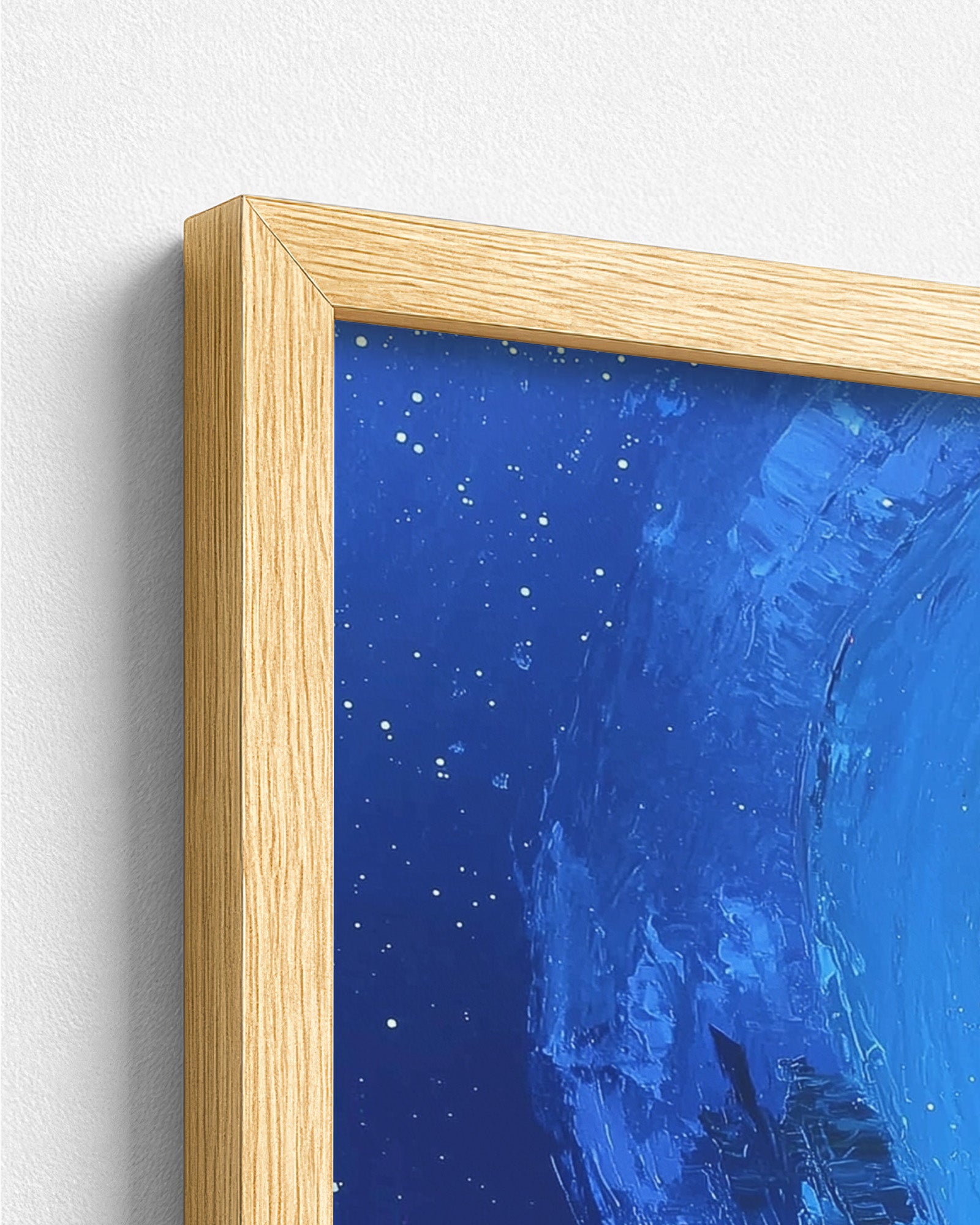 Premium artwork printed on high-quality paper, professionally mounted within a durable pine wood frame.