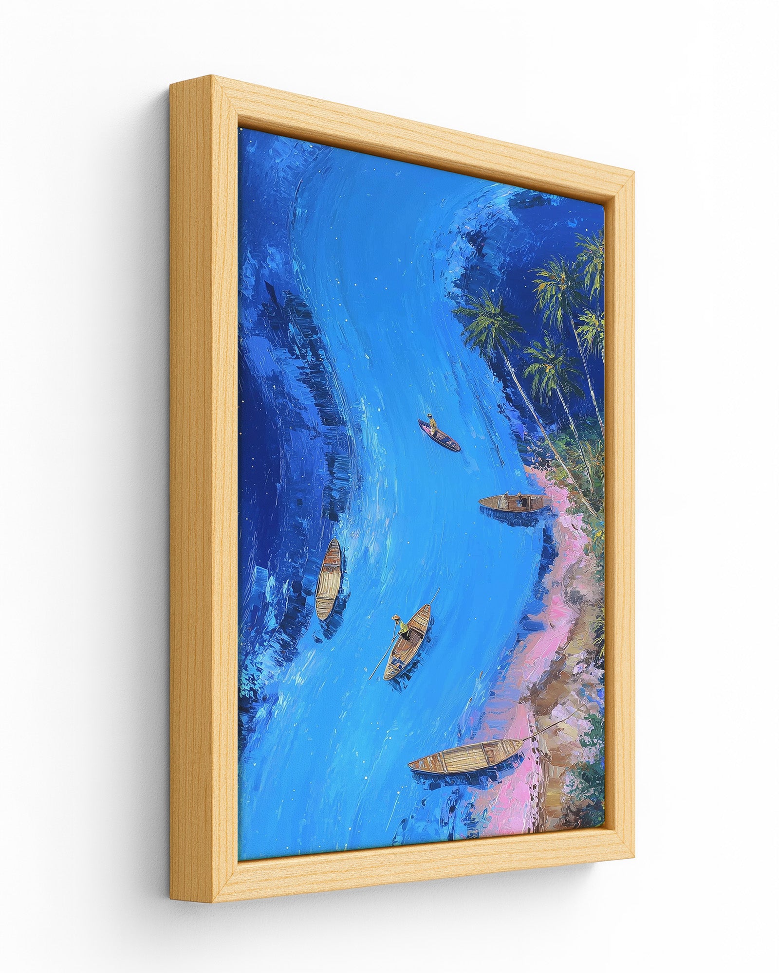 The canvas is stretched over a slim wooden frame with a 2–3 cm depth.