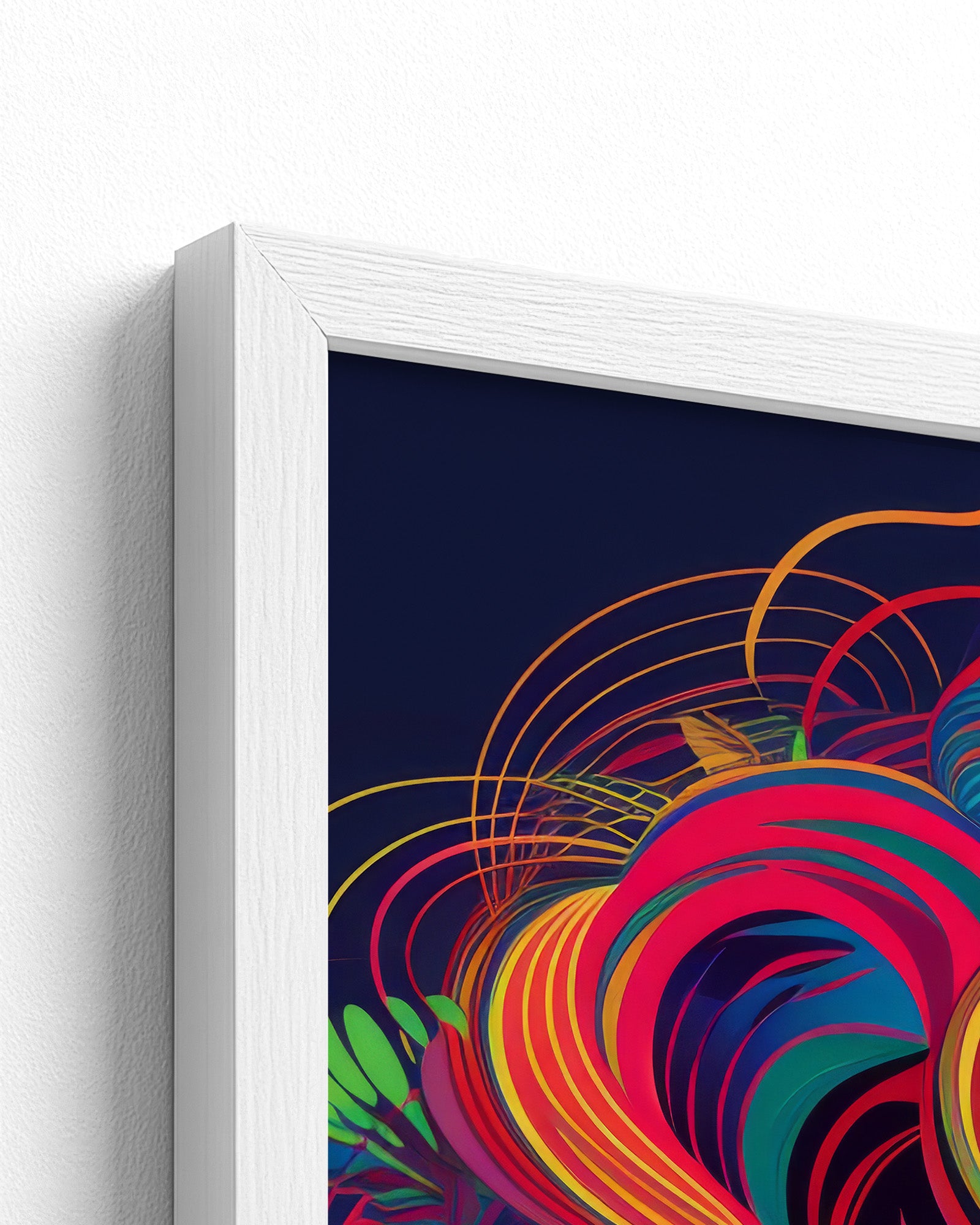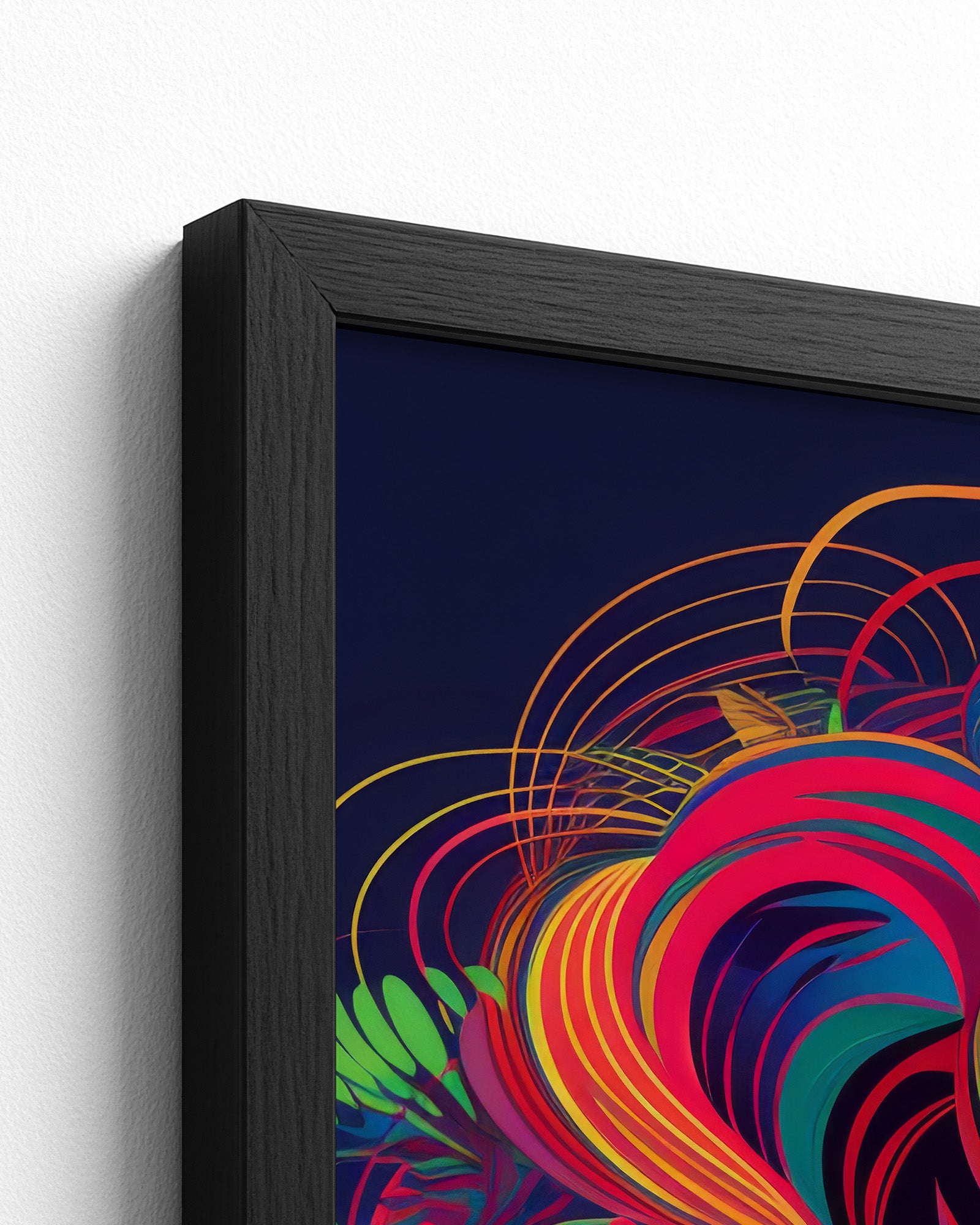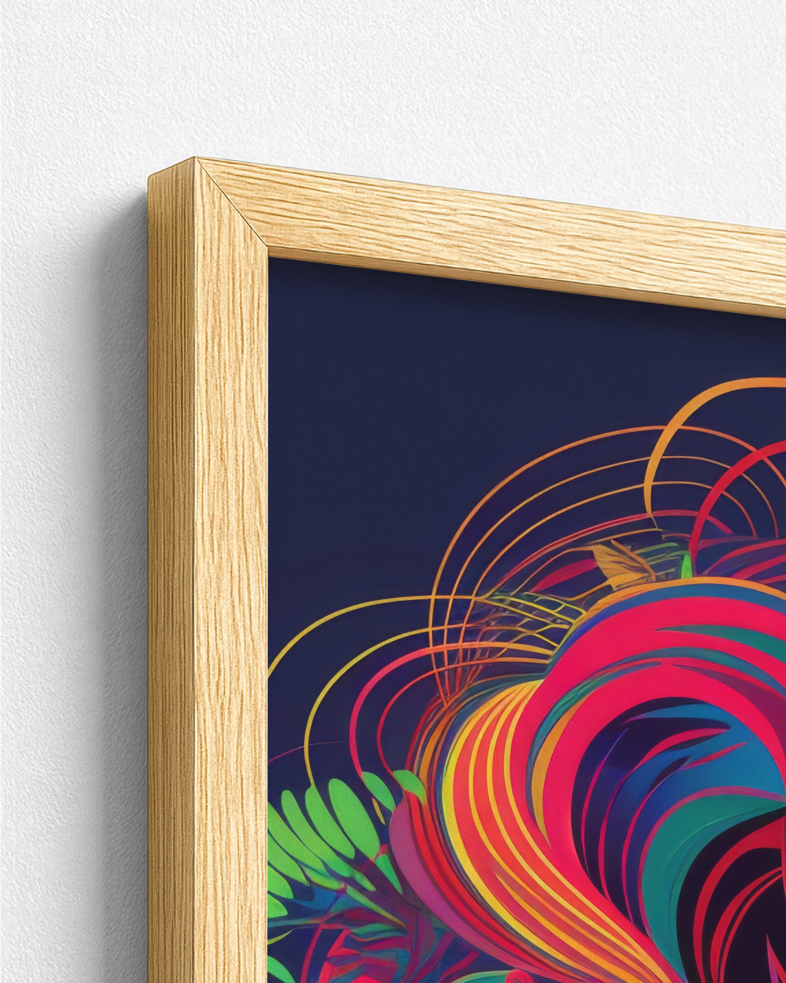Premium artwork printed on high-quality paper, professionally mounted within a durable pine wood frame.