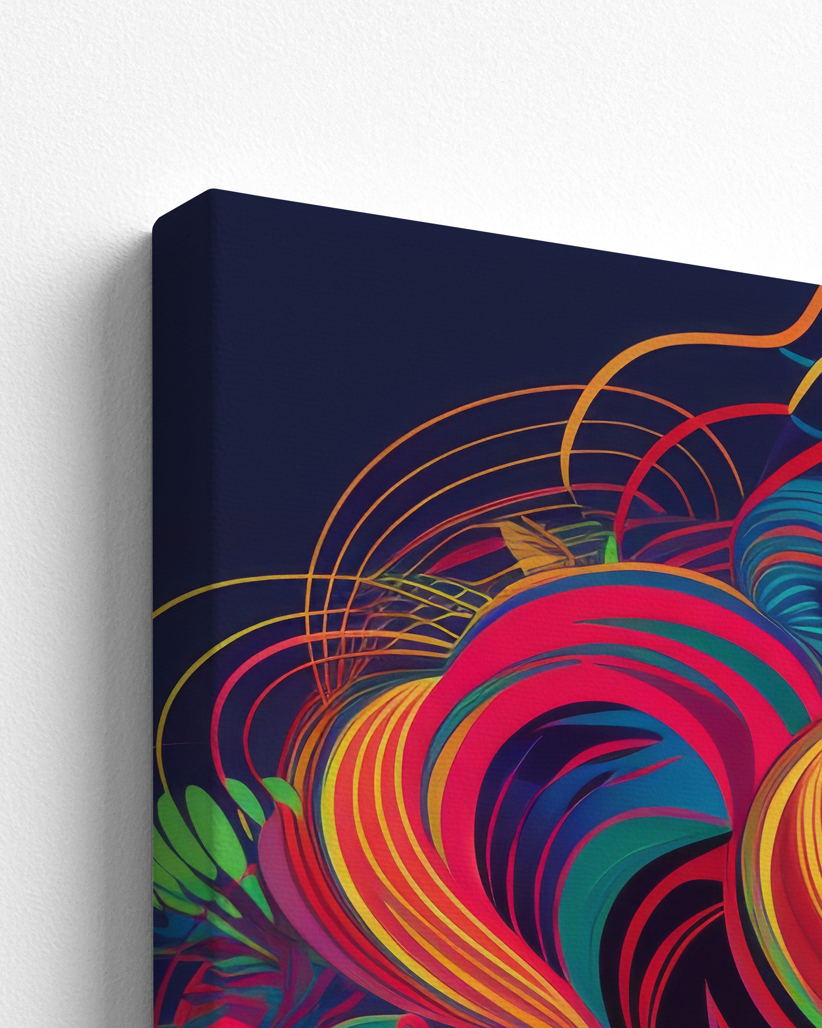 The canvas is stretched over a slim wooden frame with a 2–3 cm depth.
