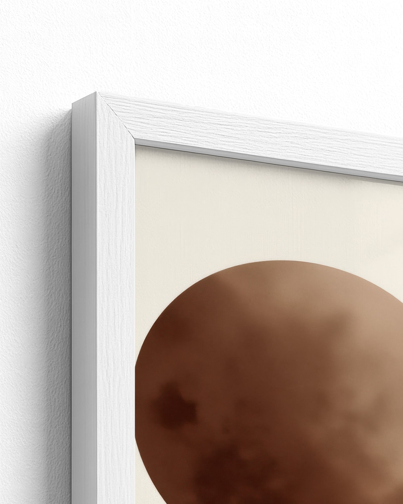 Premium artwork printed on high-quality paper, professionally mounted within a durable pine wood frame.