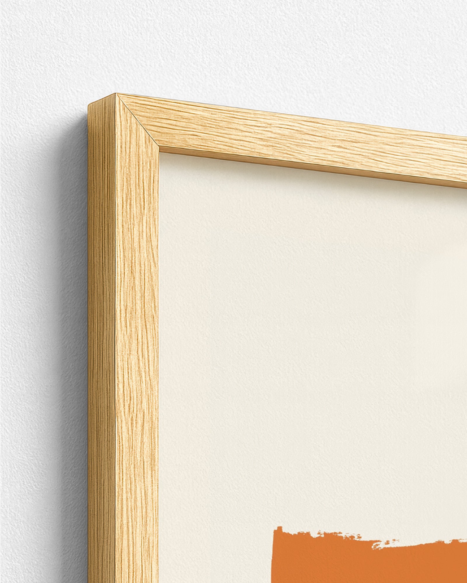 Premium artwork printed on high-quality paper, professionally mounted within a durable pine wood frame.