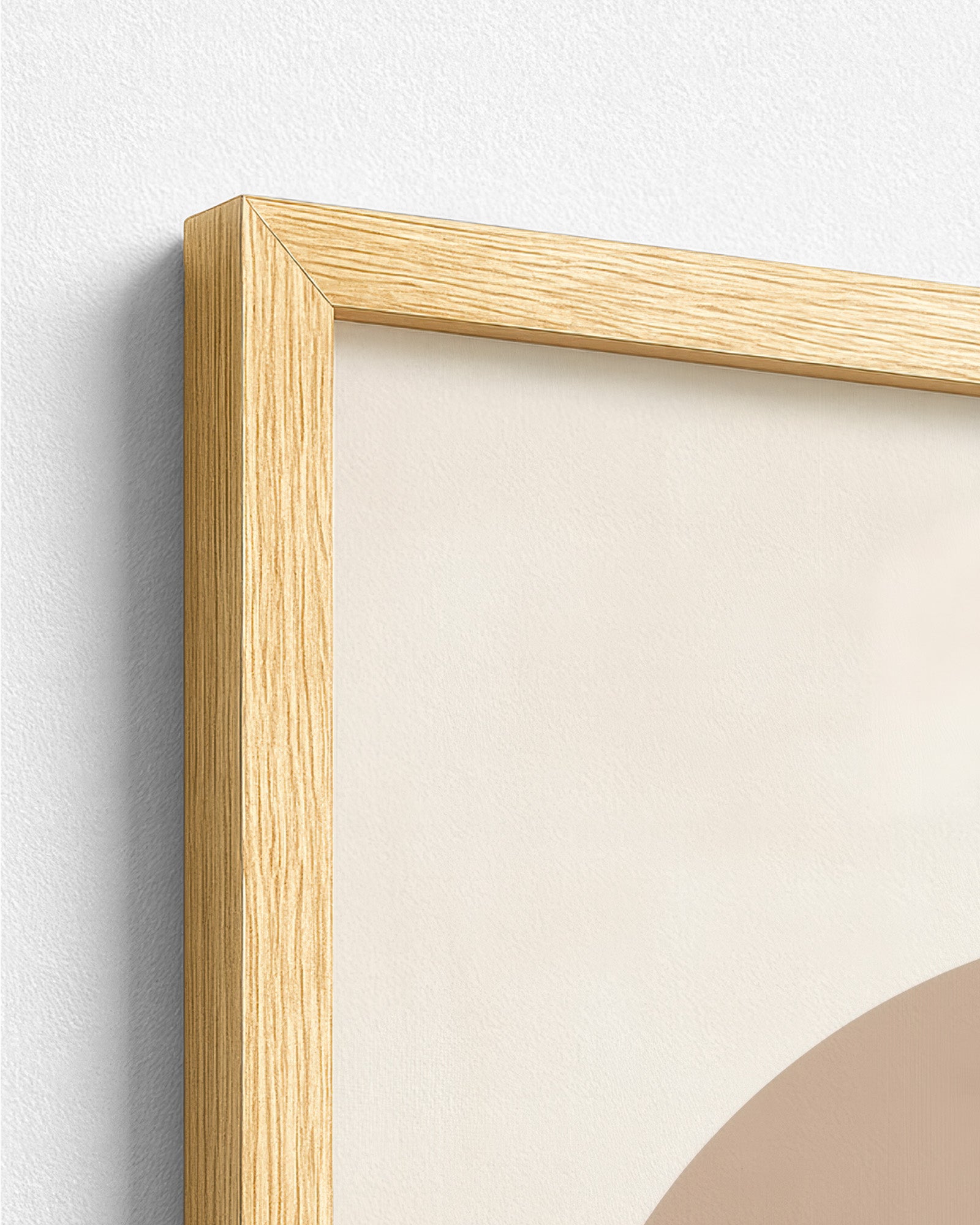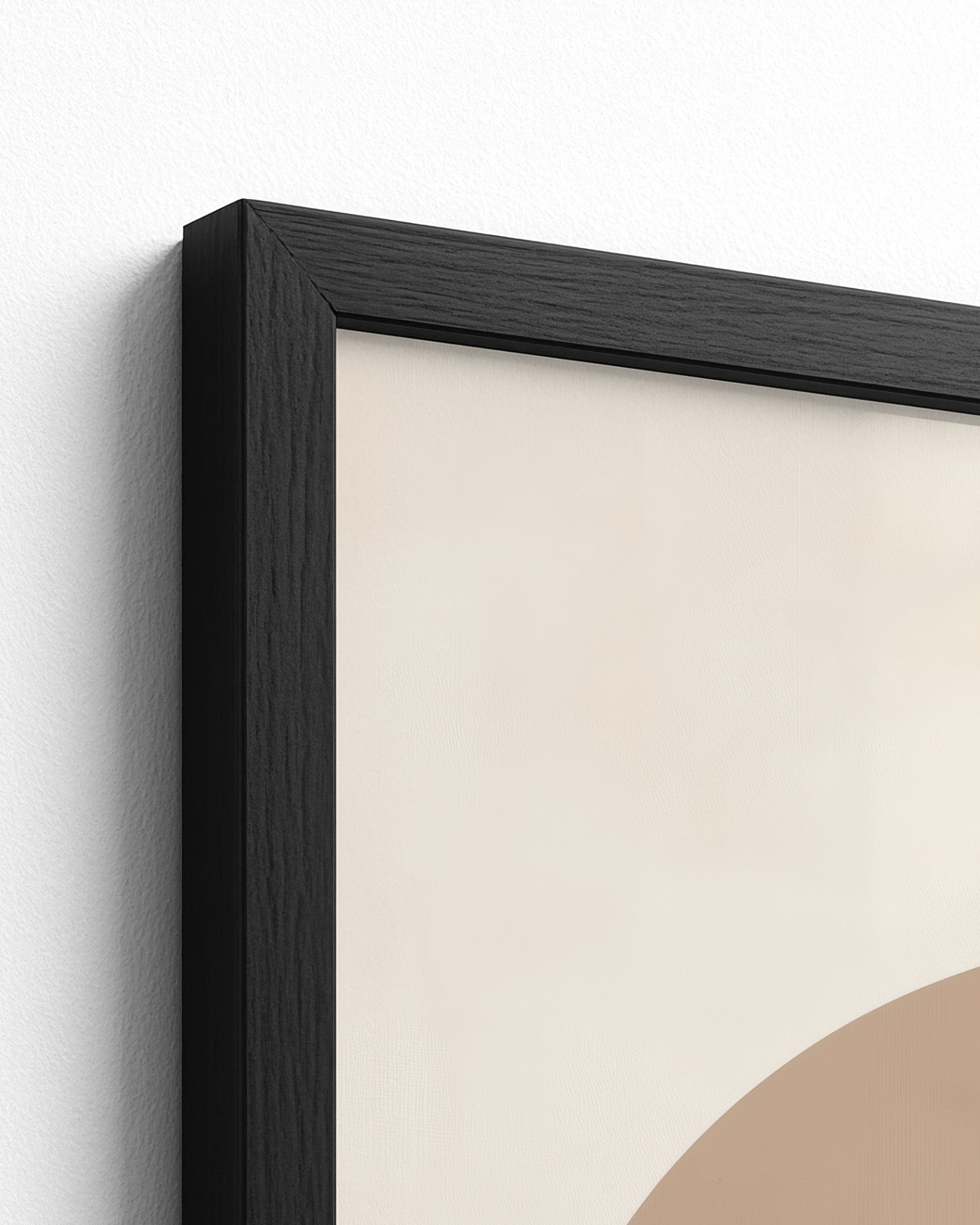 Premium artwork printed on high-quality paper, professionally mounted within a durable pine wood frame.