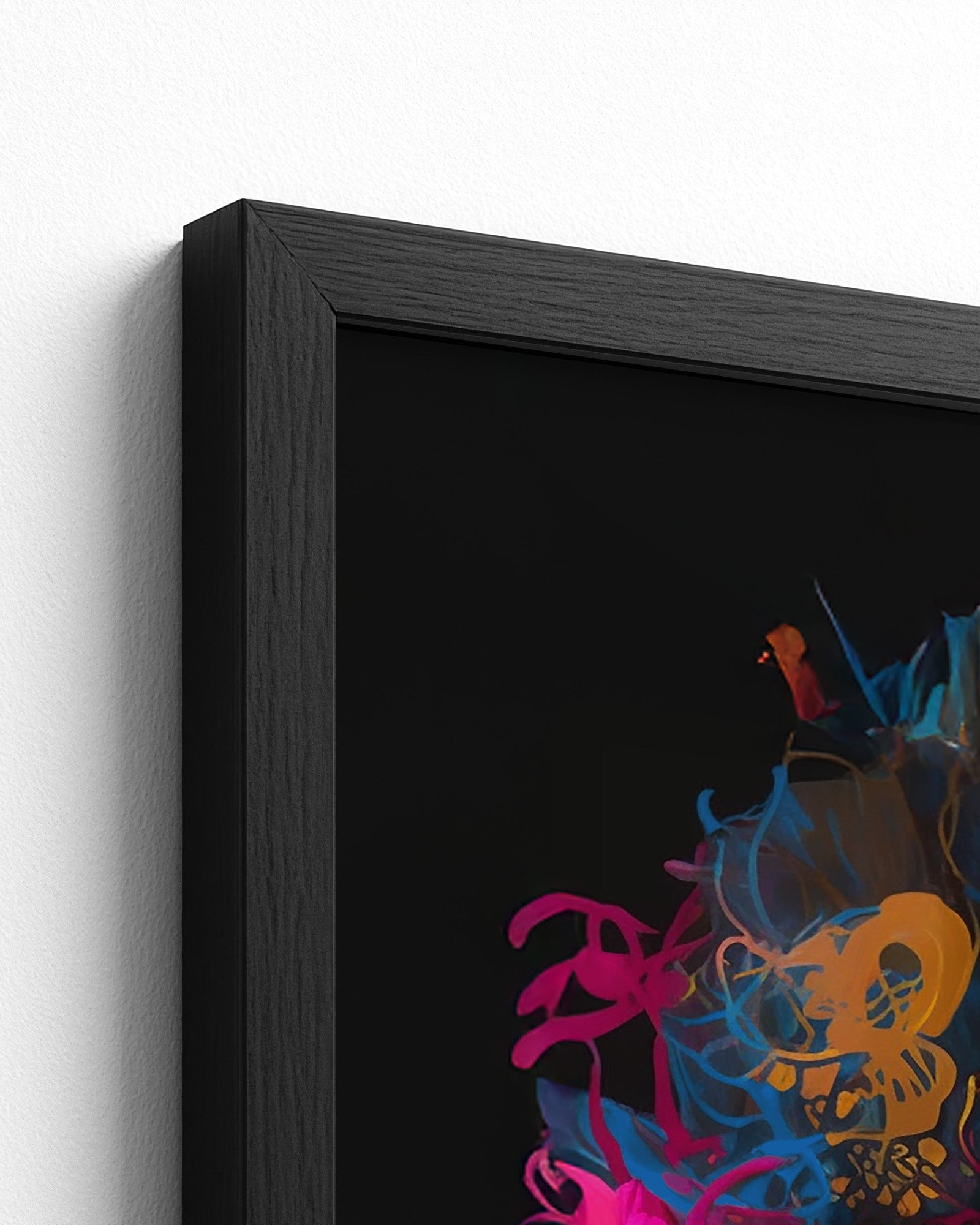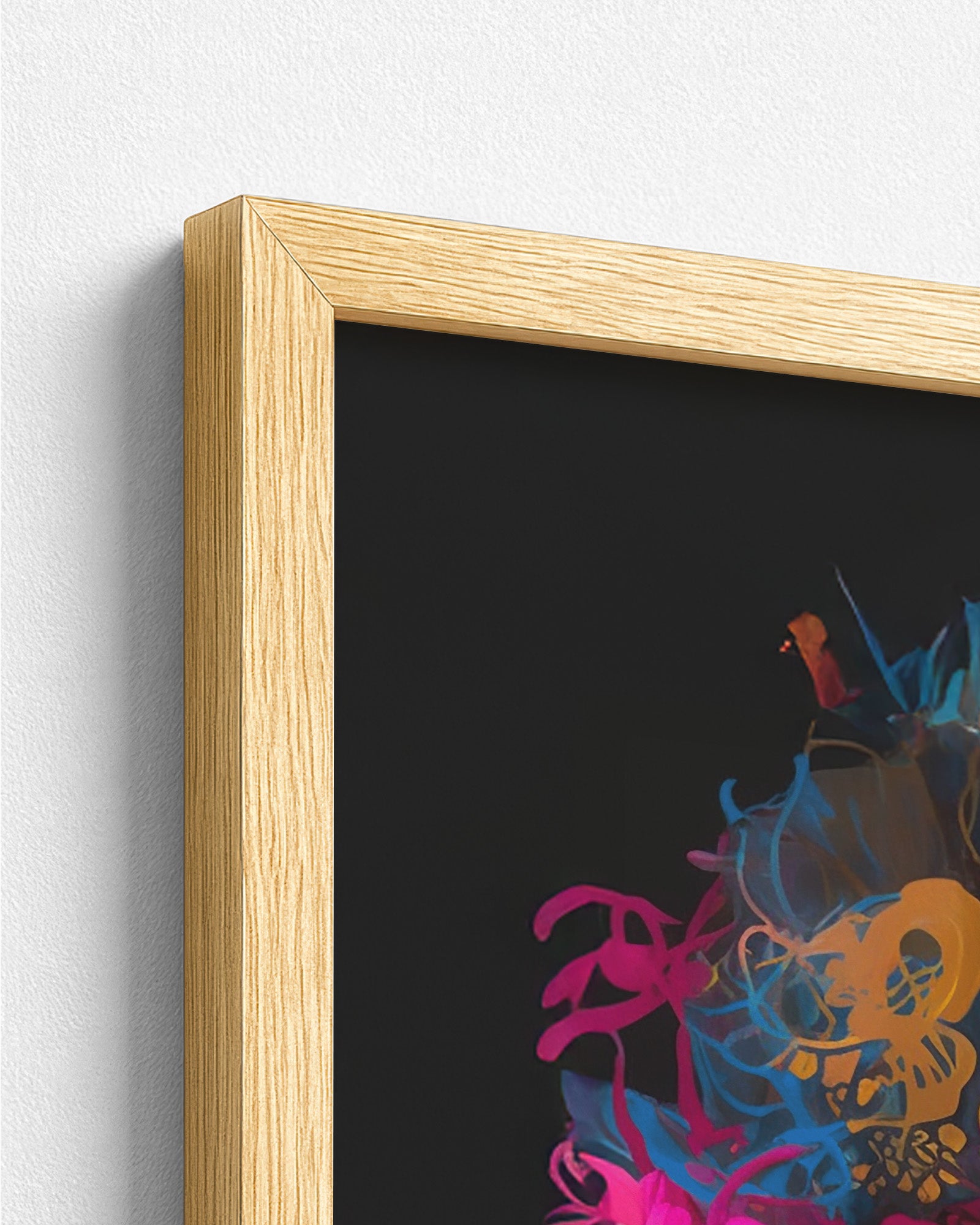 Premium artwork printed on high-quality paper, professionally mounted within a durable pine wood frame.