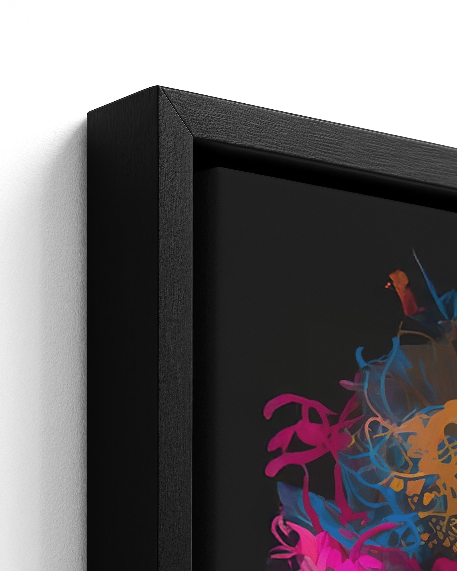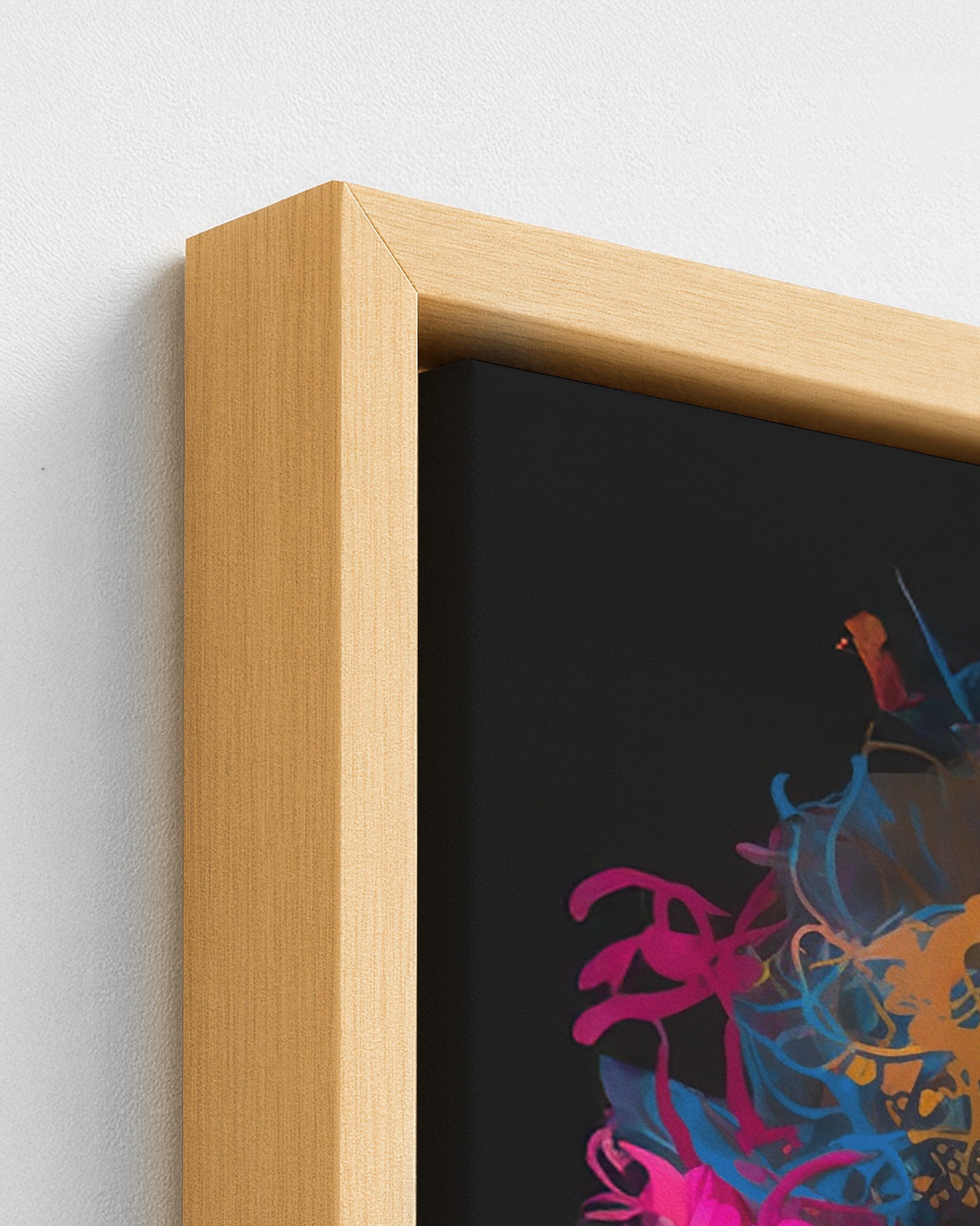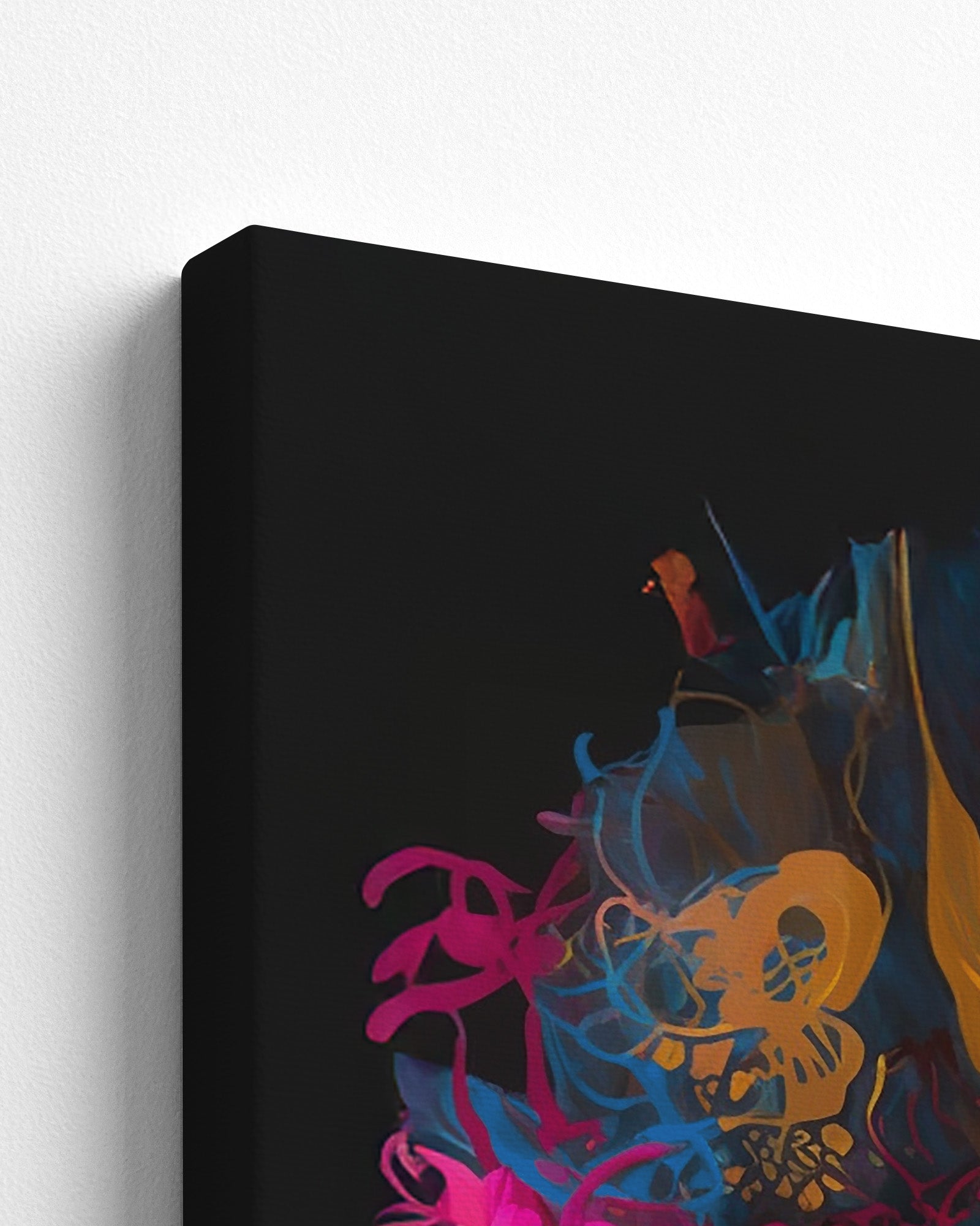 The canvas is stretched over a slim wooden frame with a 2–3 cm depth.