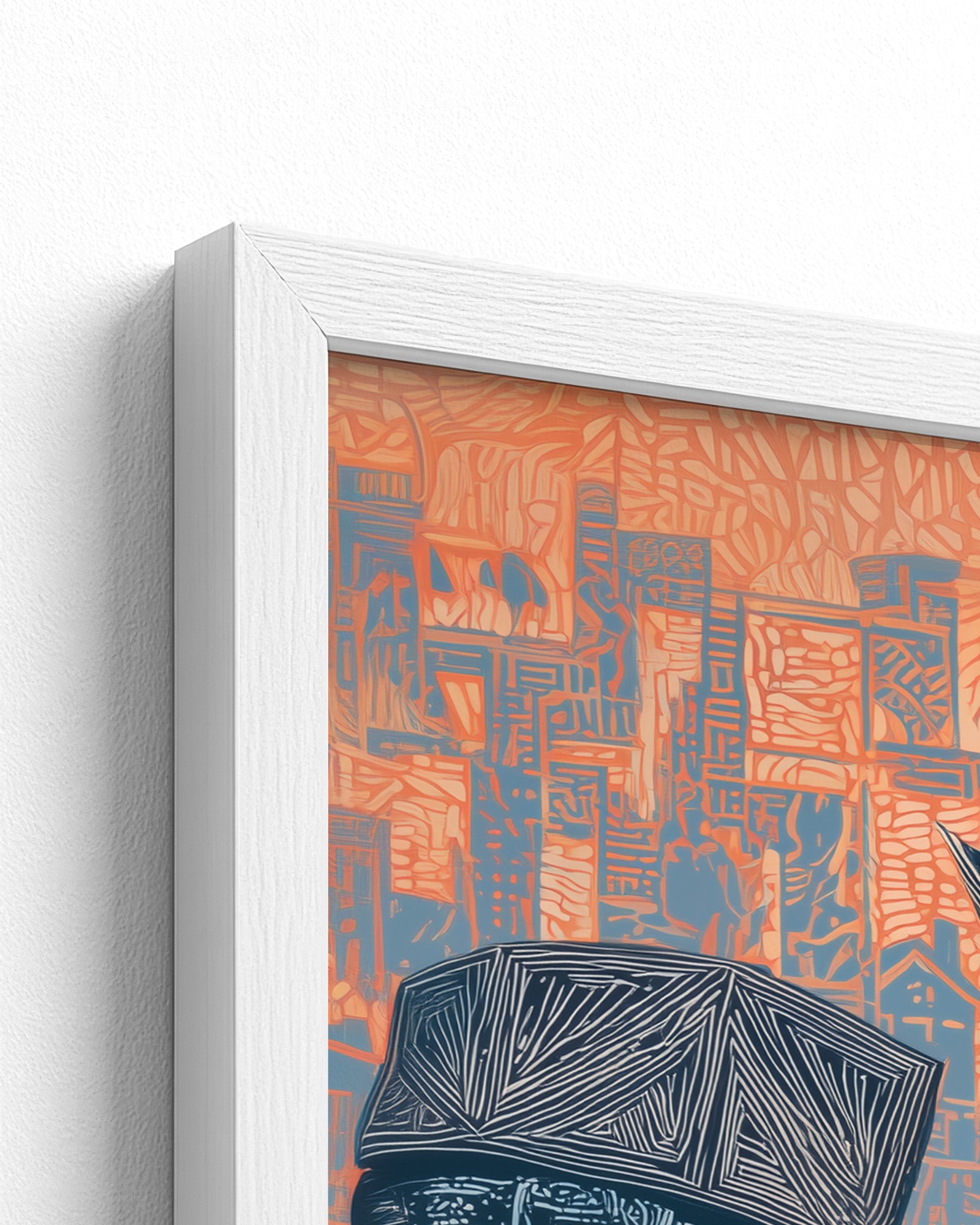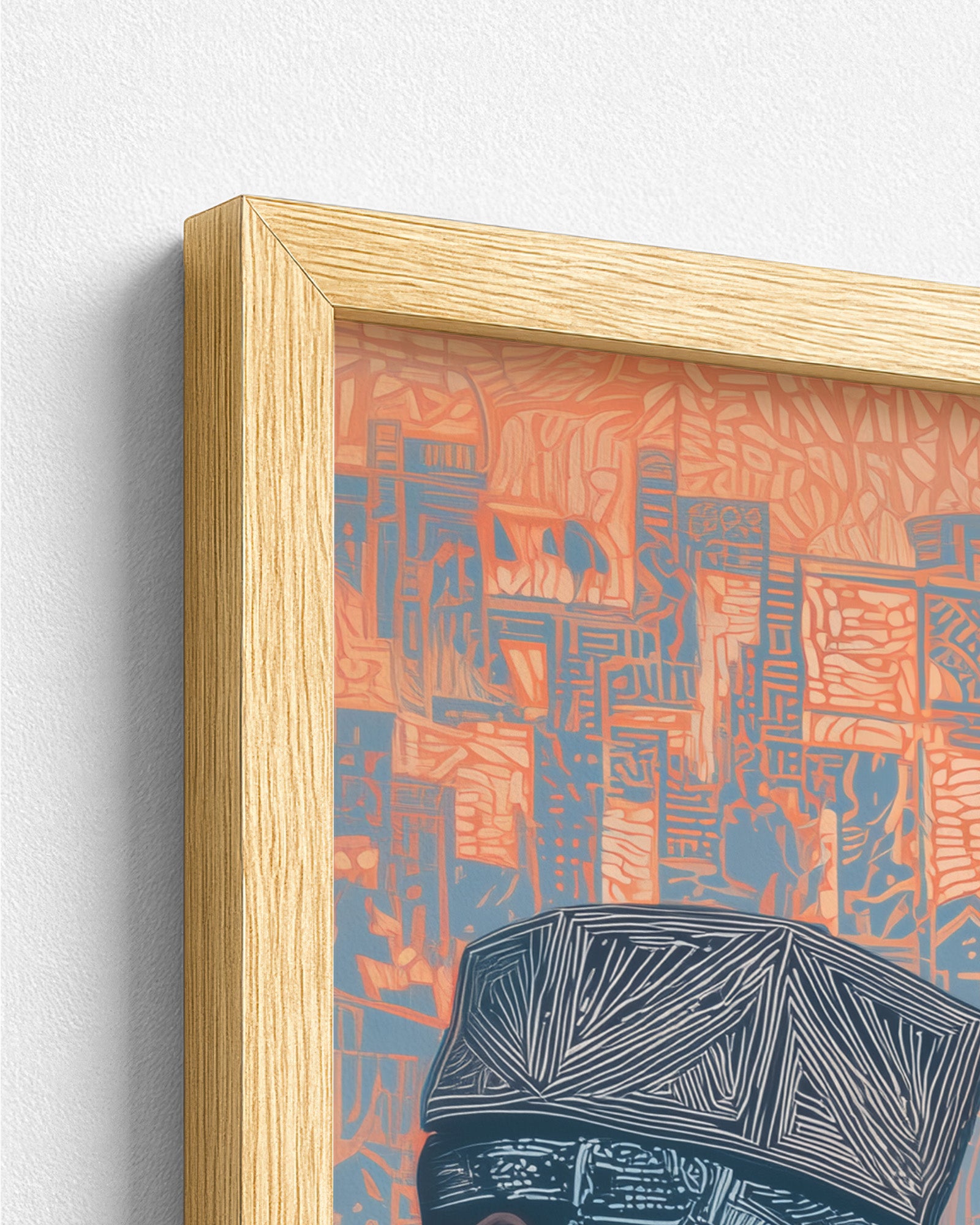 Premium artwork printed on high-quality paper, professionally mounted within a durable pine wood frame.