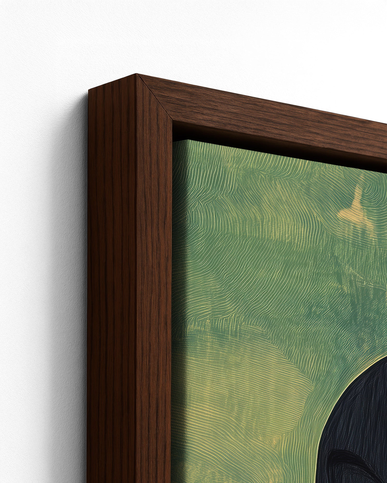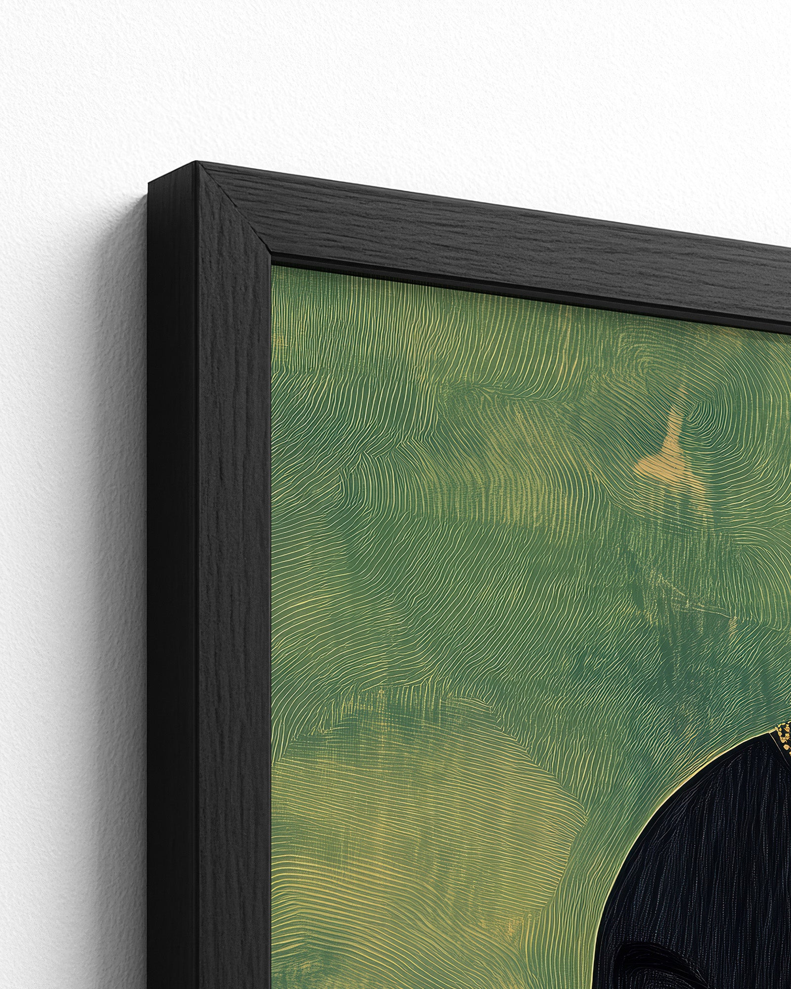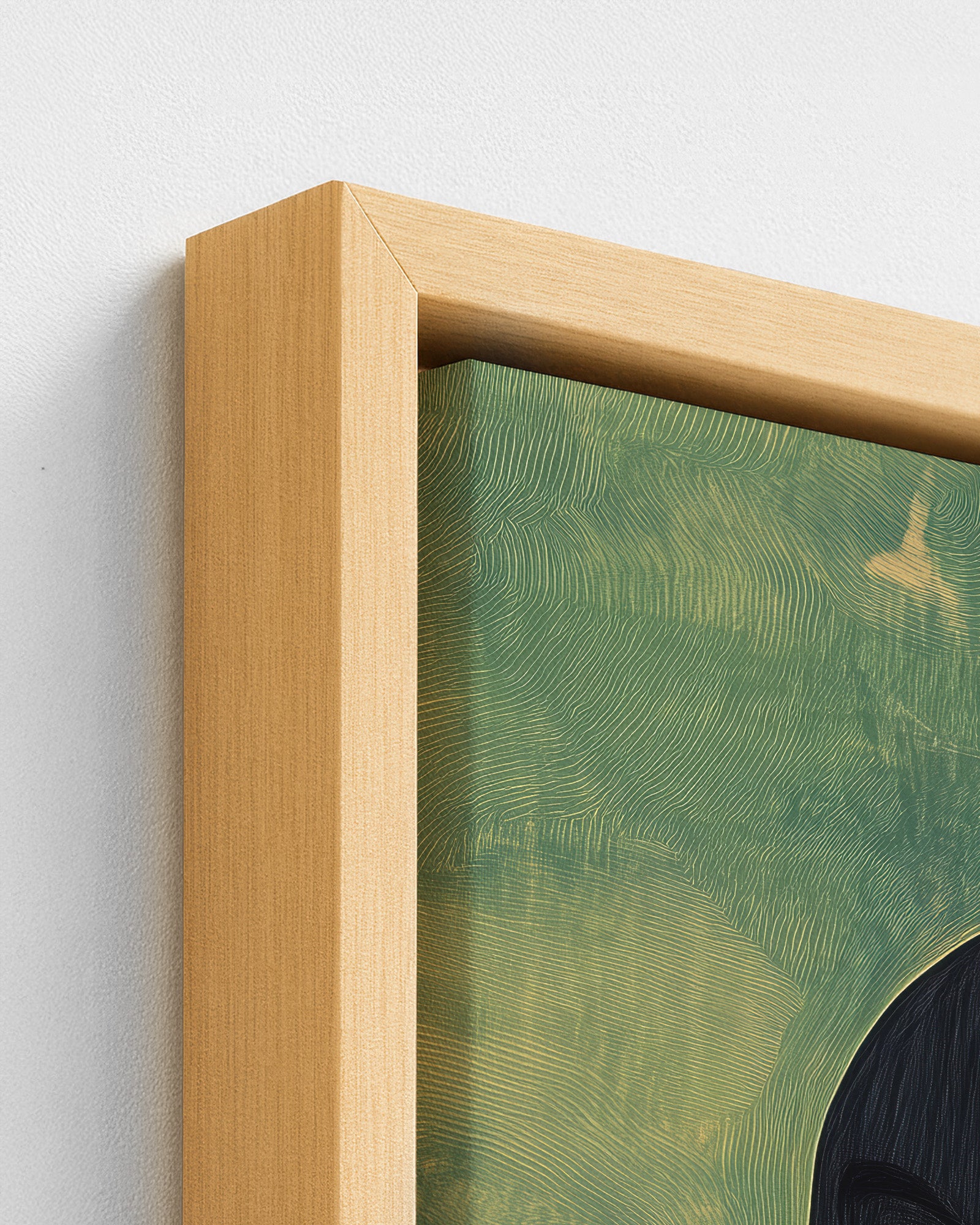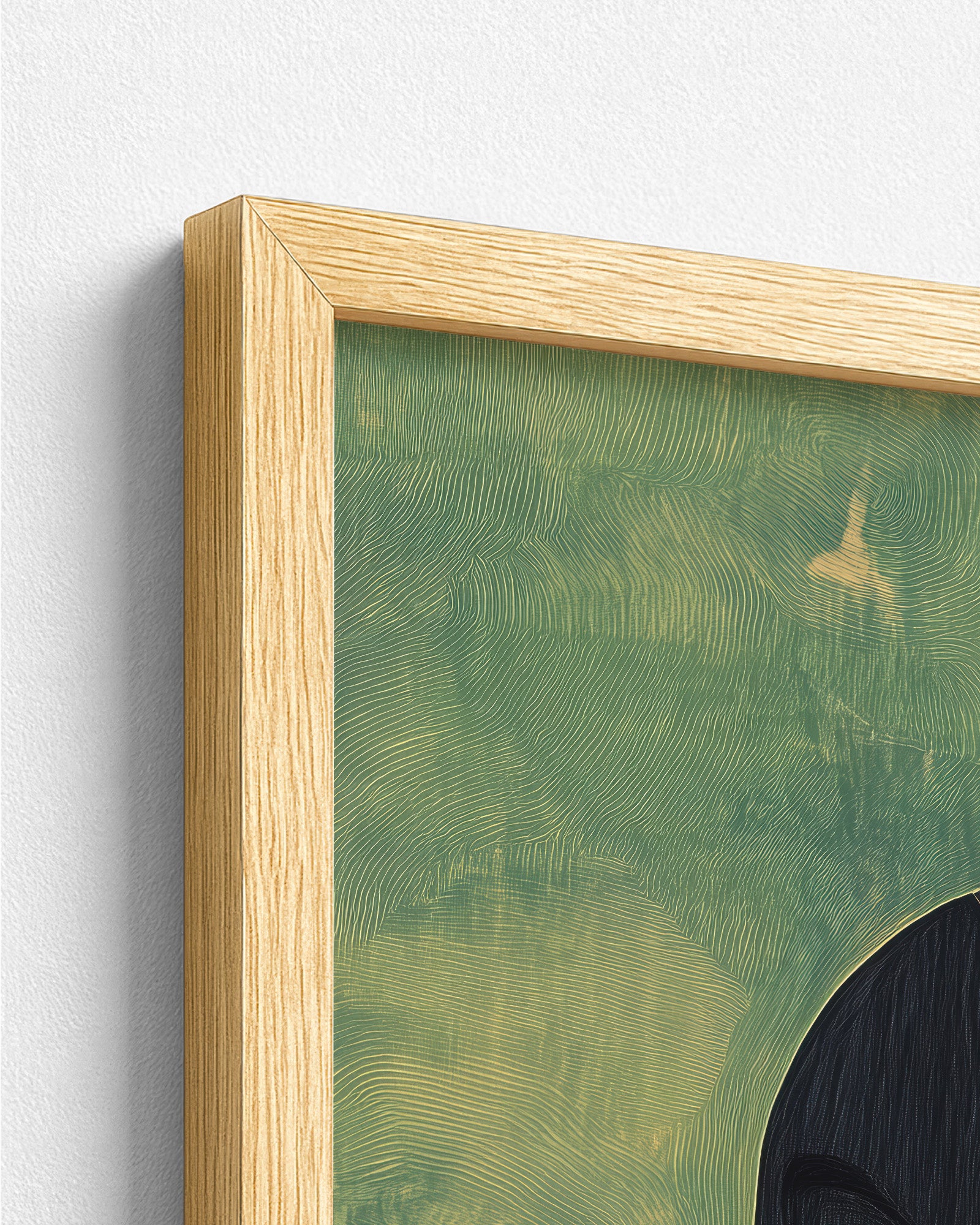 Premium artwork printed on high-quality paper, professionally mounted within a durable pine wood frame.