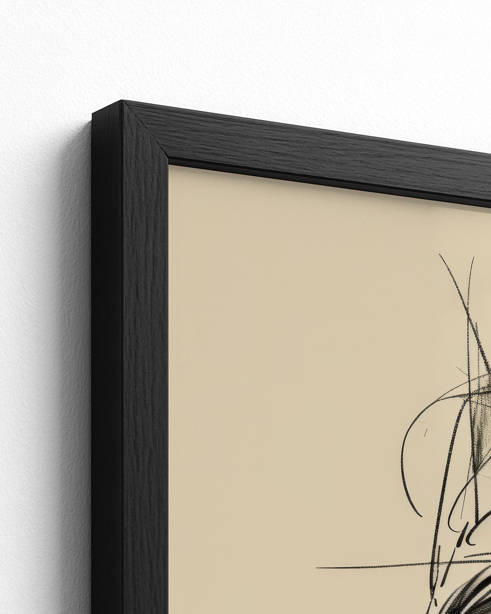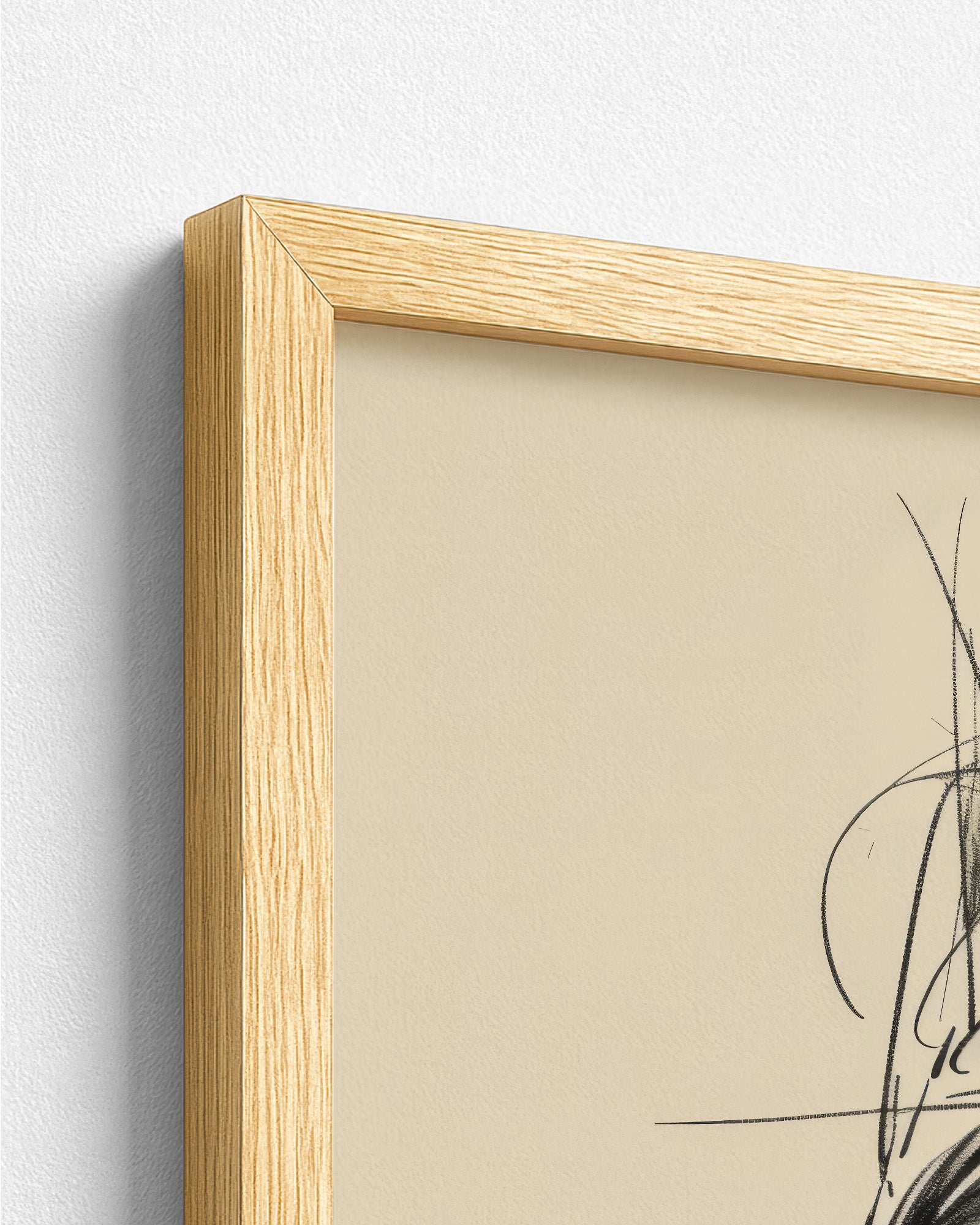 Premium artwork printed on high-quality paper, professionally mounted within a durable pine wood frame.