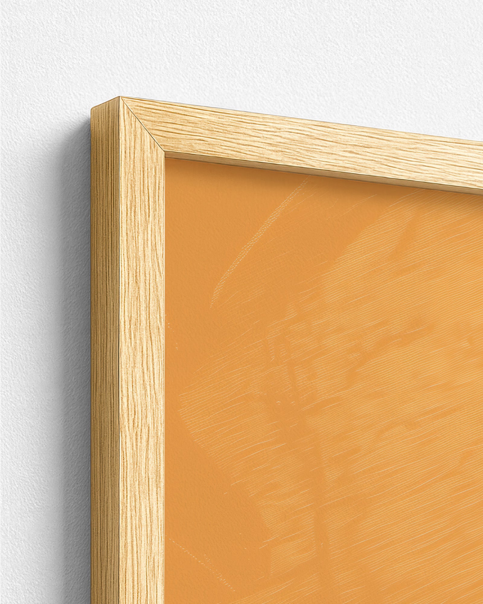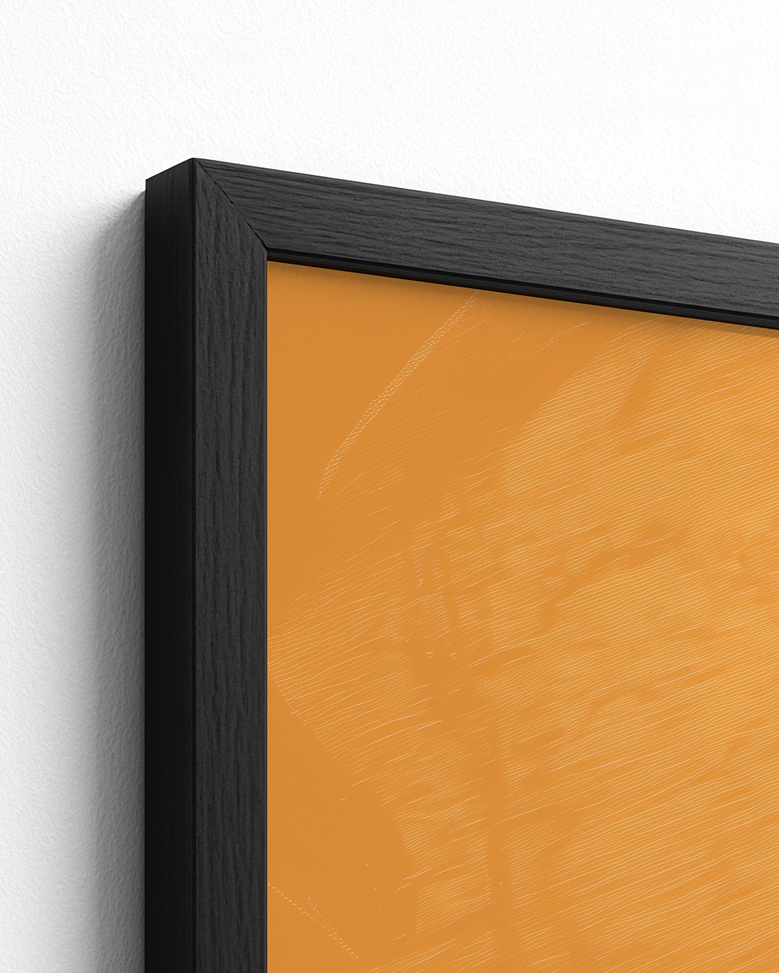 Premium artwork printed on high-quality paper, professionally mounted within a durable pine wood frame.