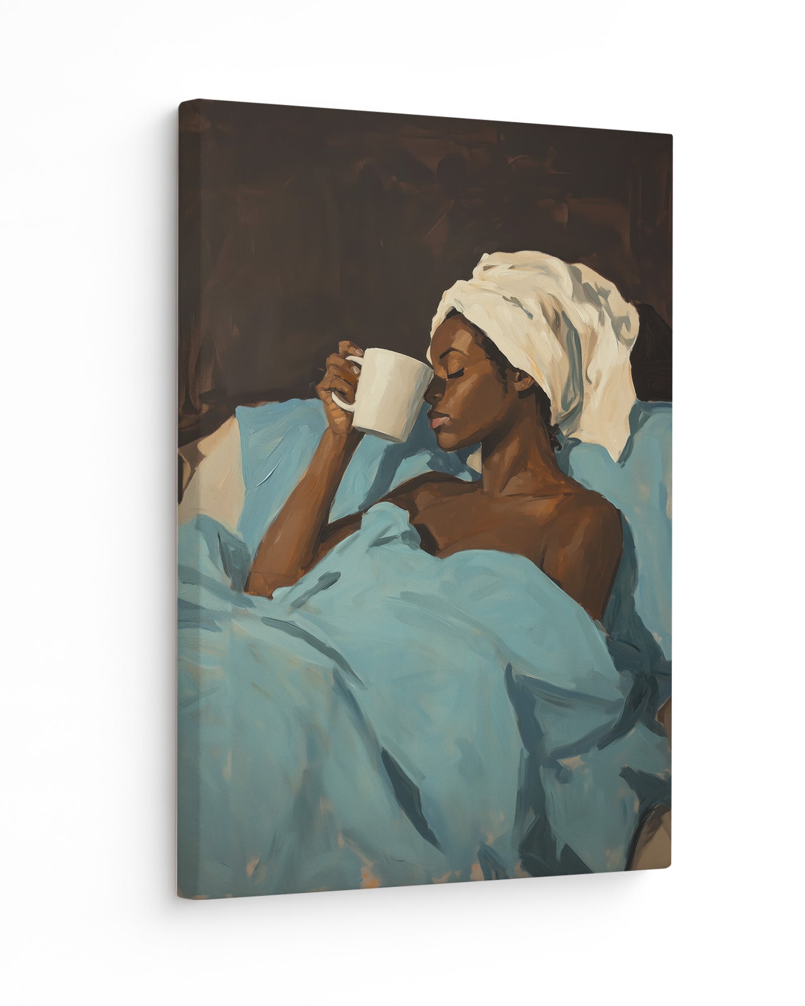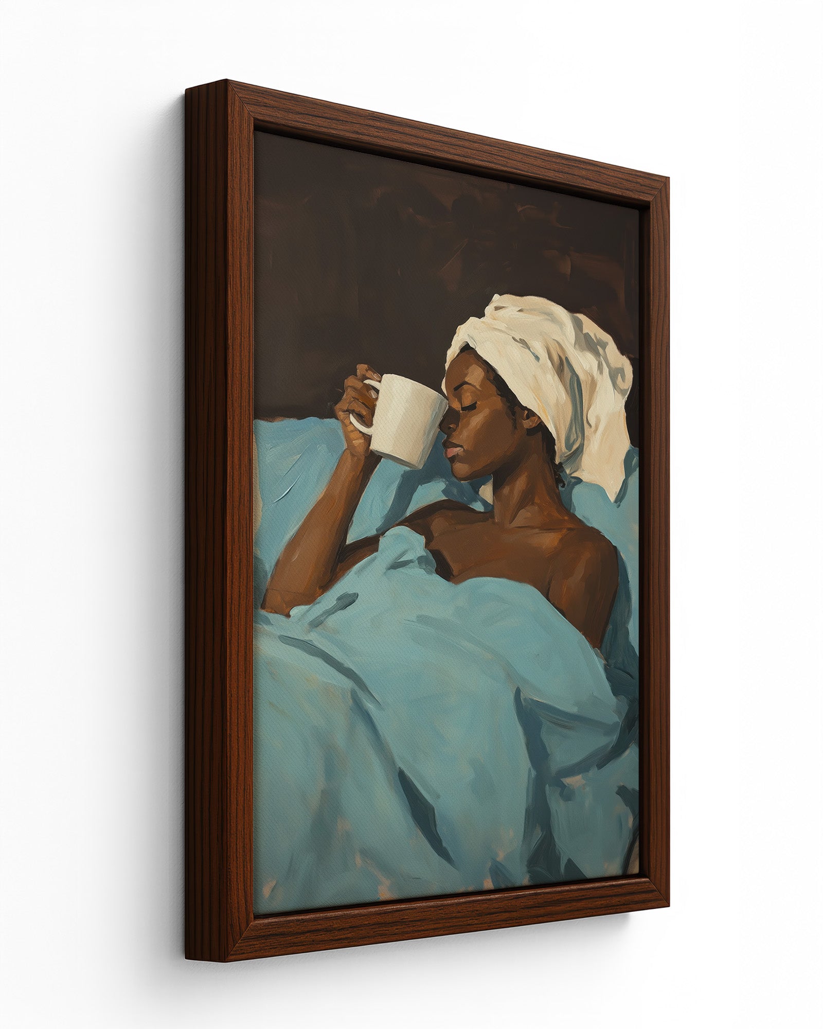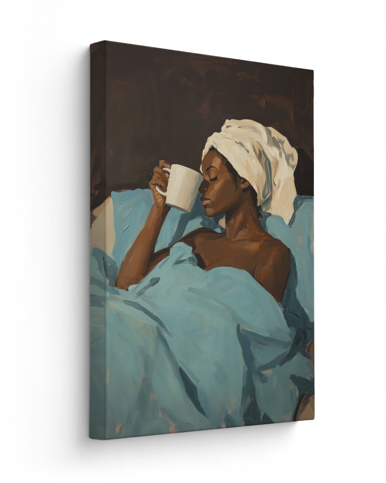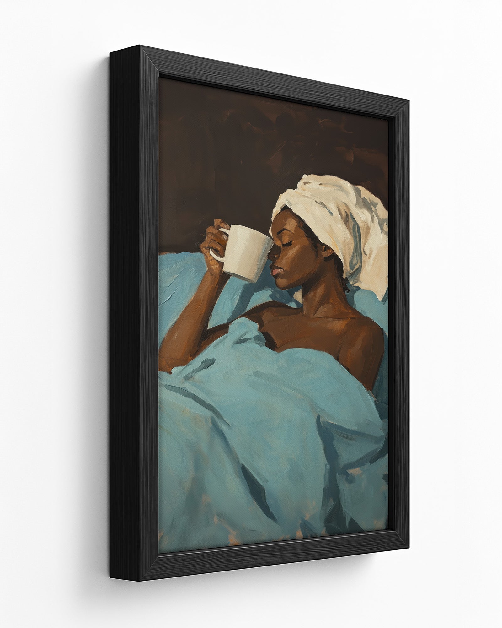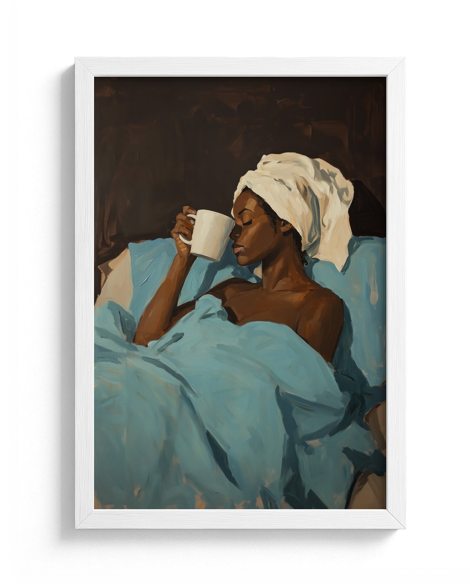 Rendered in expressive brushstrokes and warm tones, this oil-style artwork is perfect for bedrooms, self-care corners, or curated spaces that value restoration, reflection, and the power of pause.