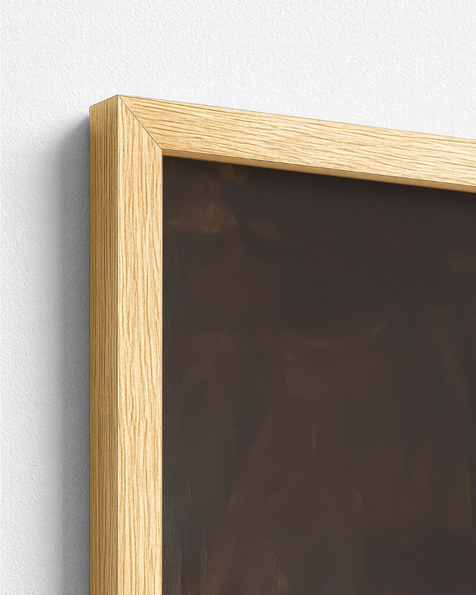 Premium artwork printed on high-quality paper, professionally mounted within a durable pine wood frame.