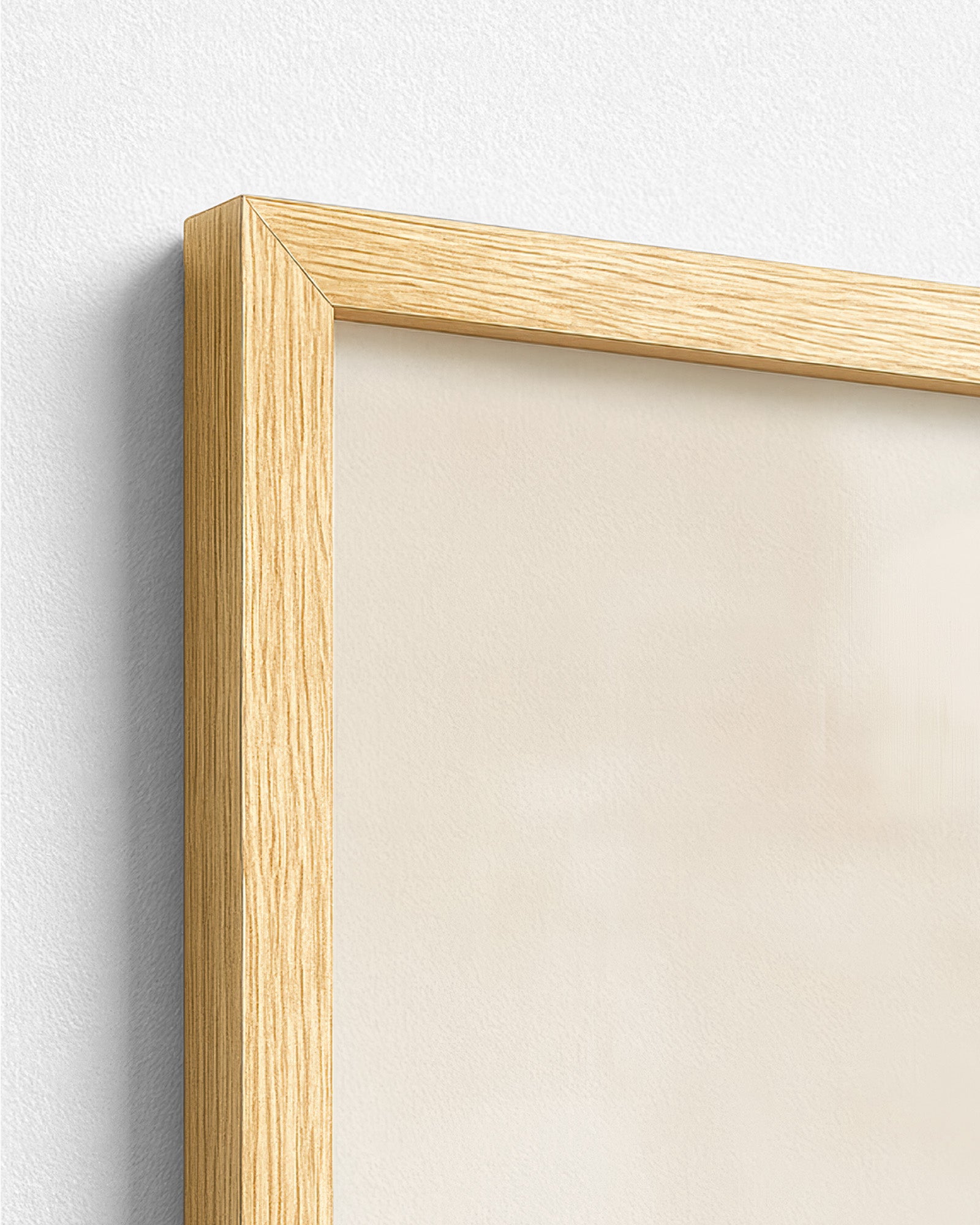 Premium artwork printed on high-quality paper, professionally mounted within a durable pine wood frame.