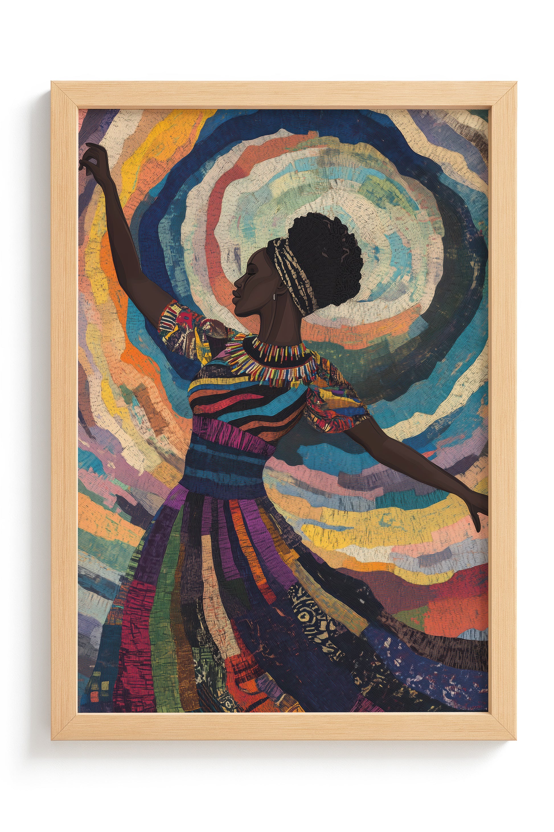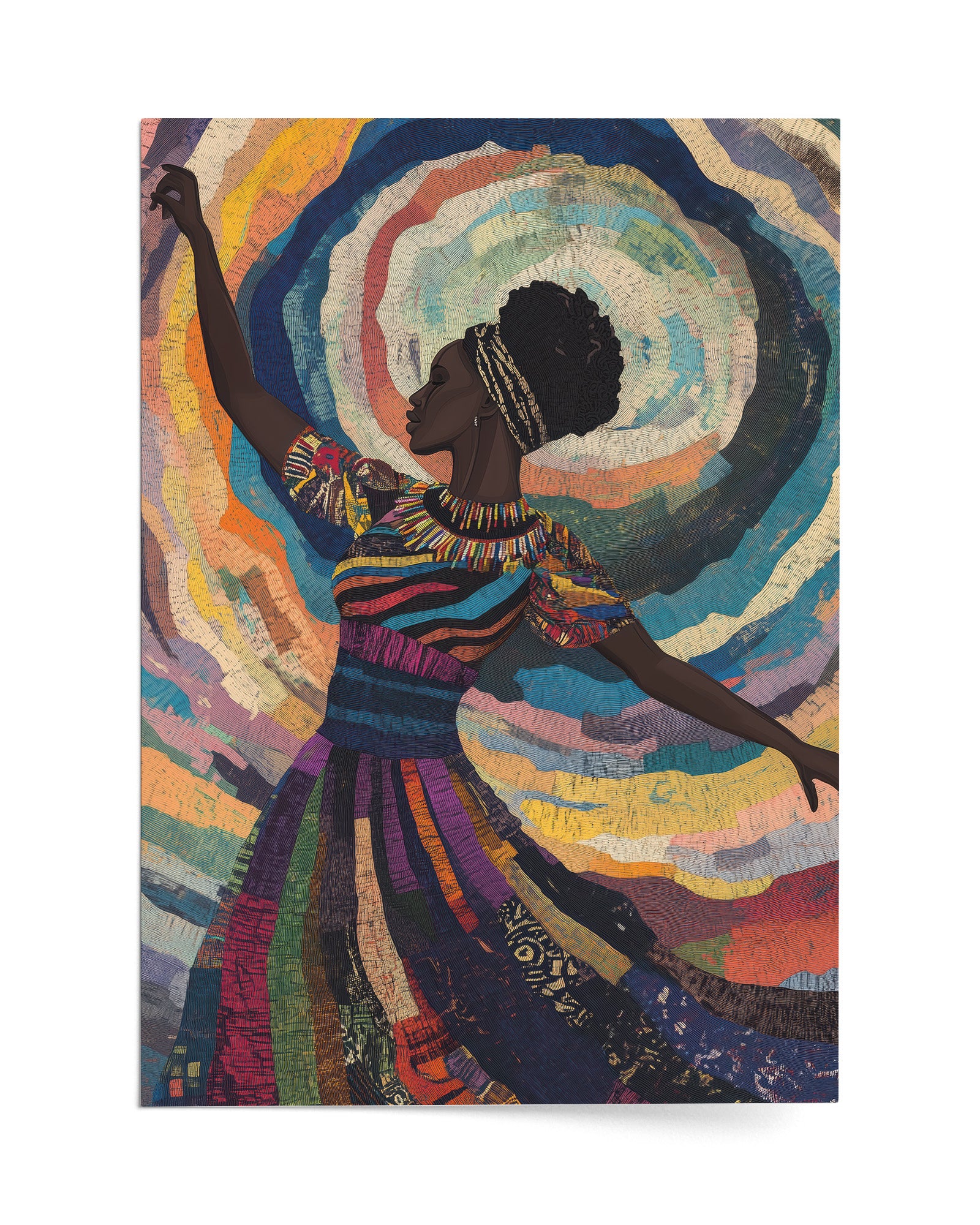 This vibrant artwork captures the timeless elegance and cultural significance of a Zulu woman adorned in traditional tribal attire. Her clothing, rich with intricate patterns and bright colours, symbolises the pride and heritage of the Zulu people.