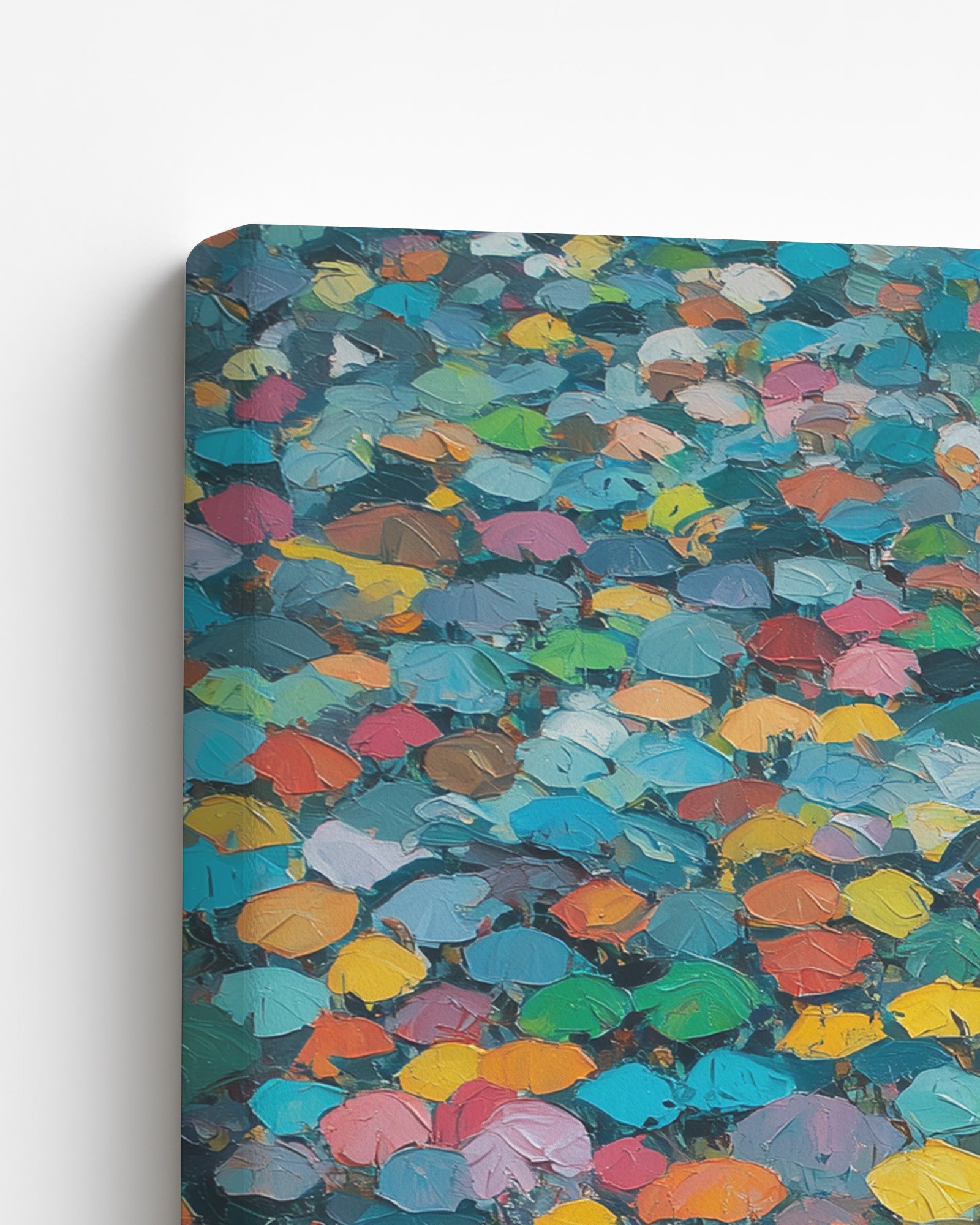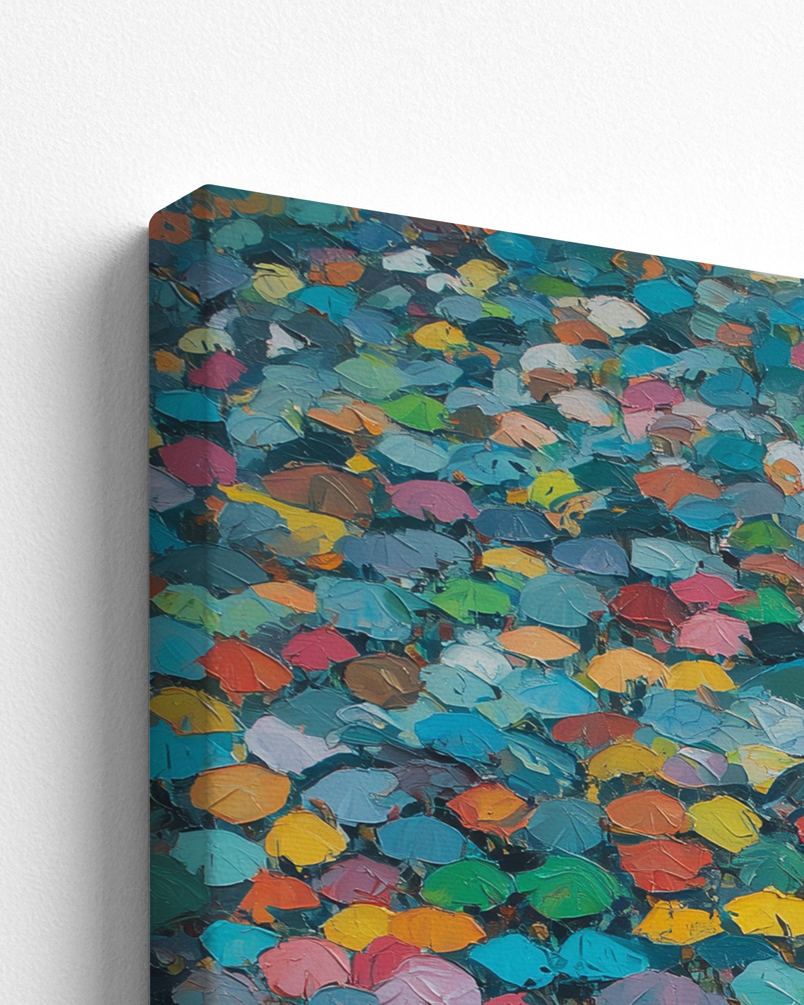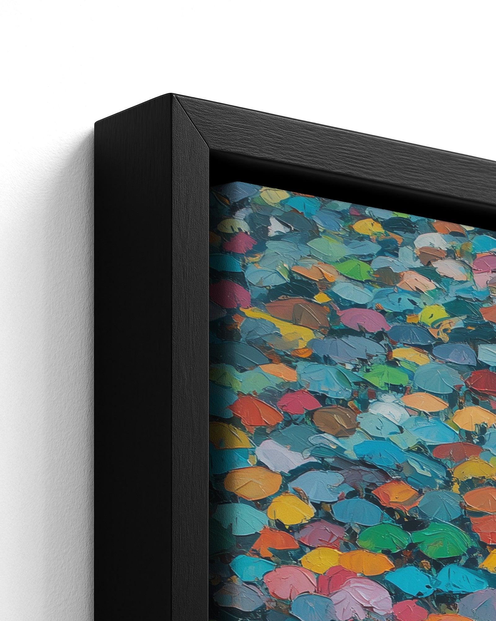 The canvas is stretched over a slim wooden frame with a 2–3 cm depth.