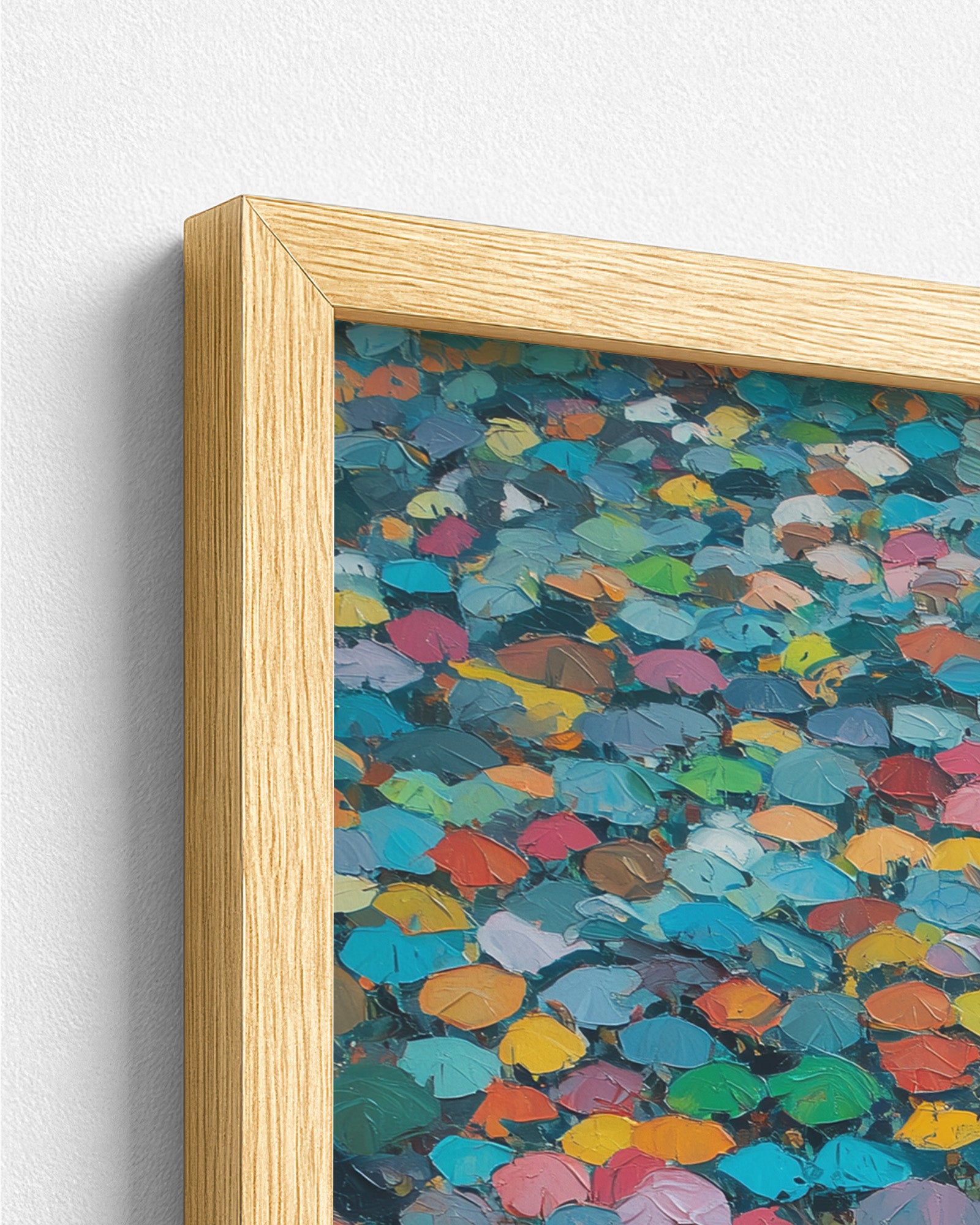 Premium artwork printed on high-quality paper, professionally mounted within a durable pine wood frame.