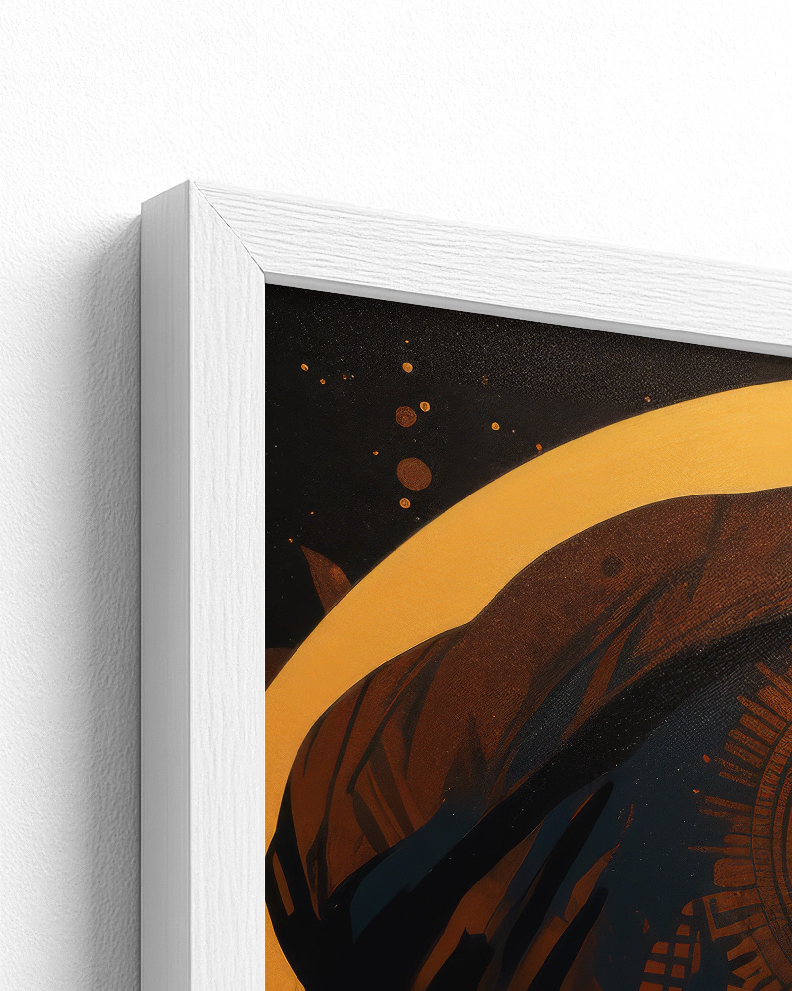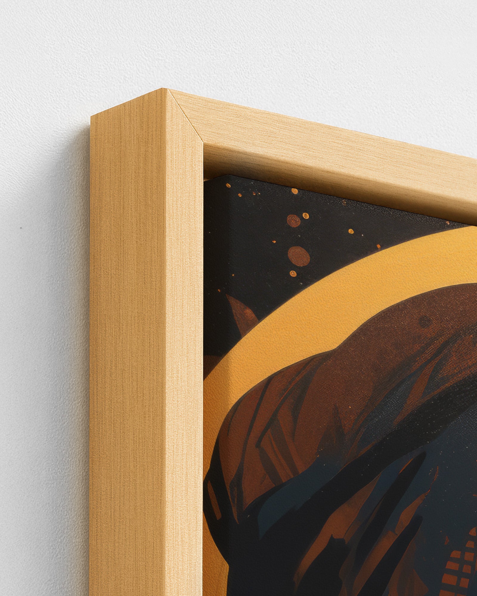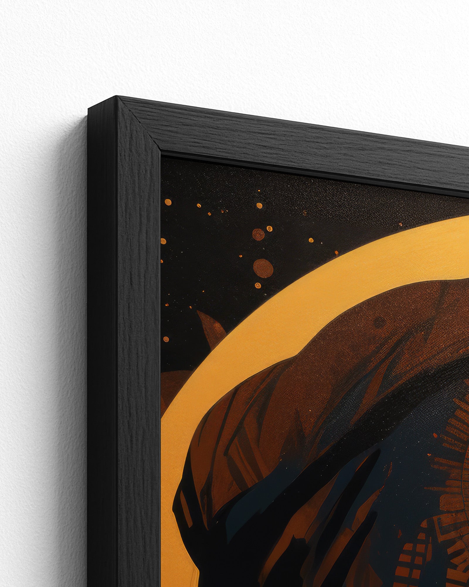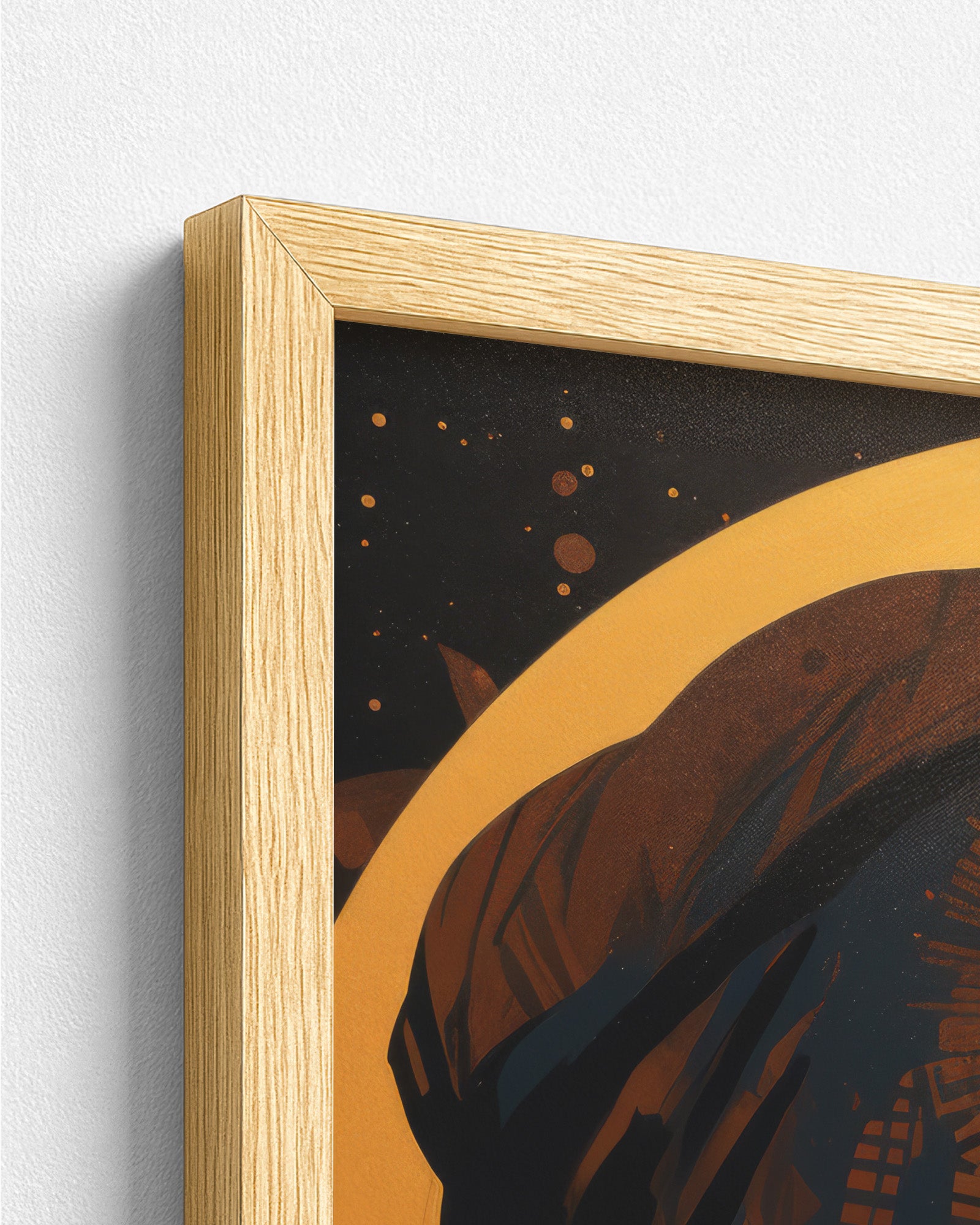 Premium artwork printed on high-quality paper, professionally mounted within a durable pine wood frame.