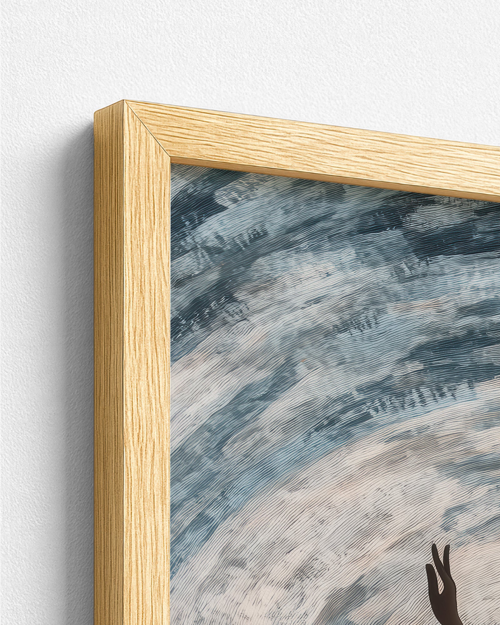 Premium artwork printed on high-quality paper, professionally mounted within a durable pine wood frame.