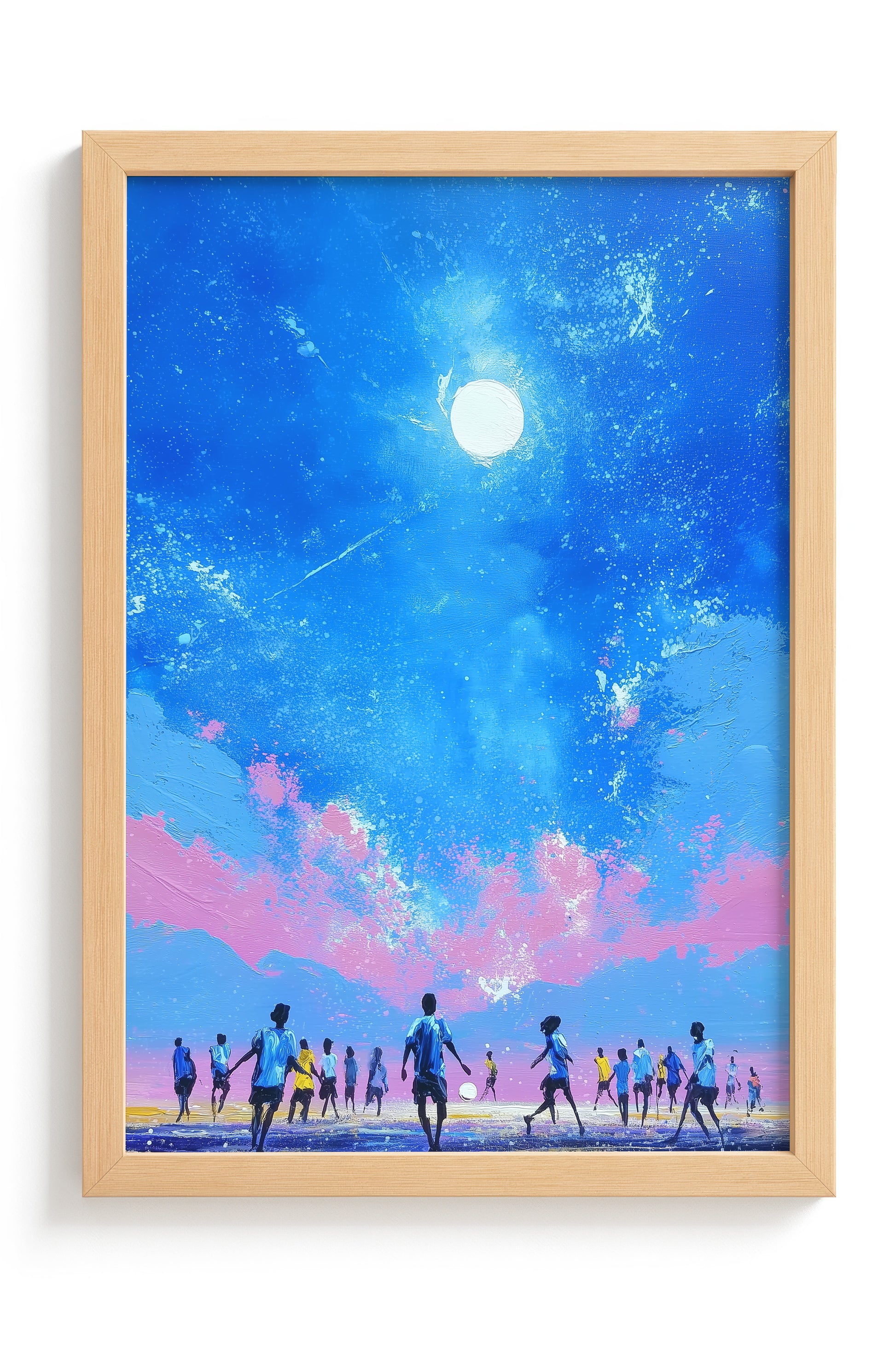 Premium artwork printed on high-quality paper, professionally mounted within a durable pine wood frame.