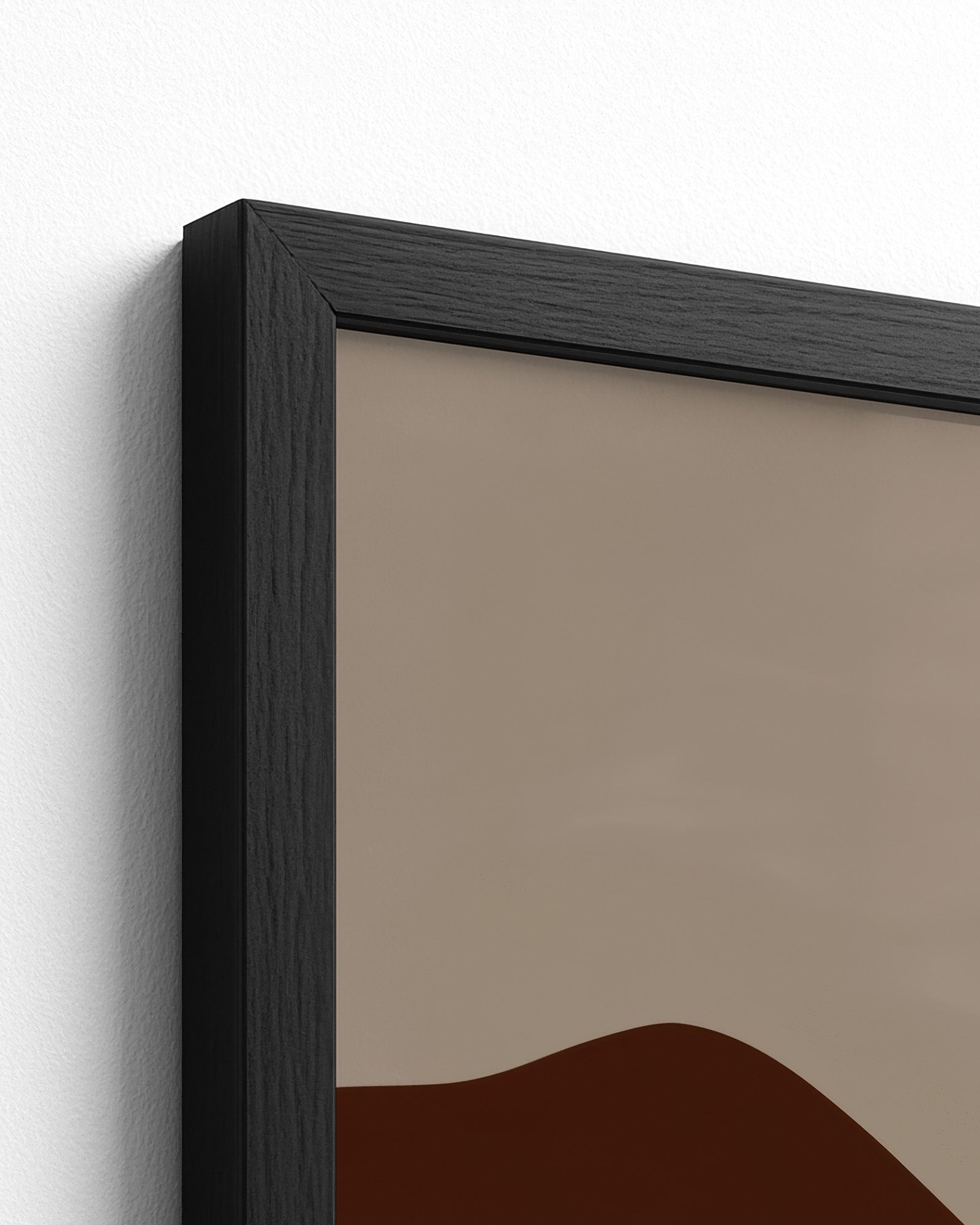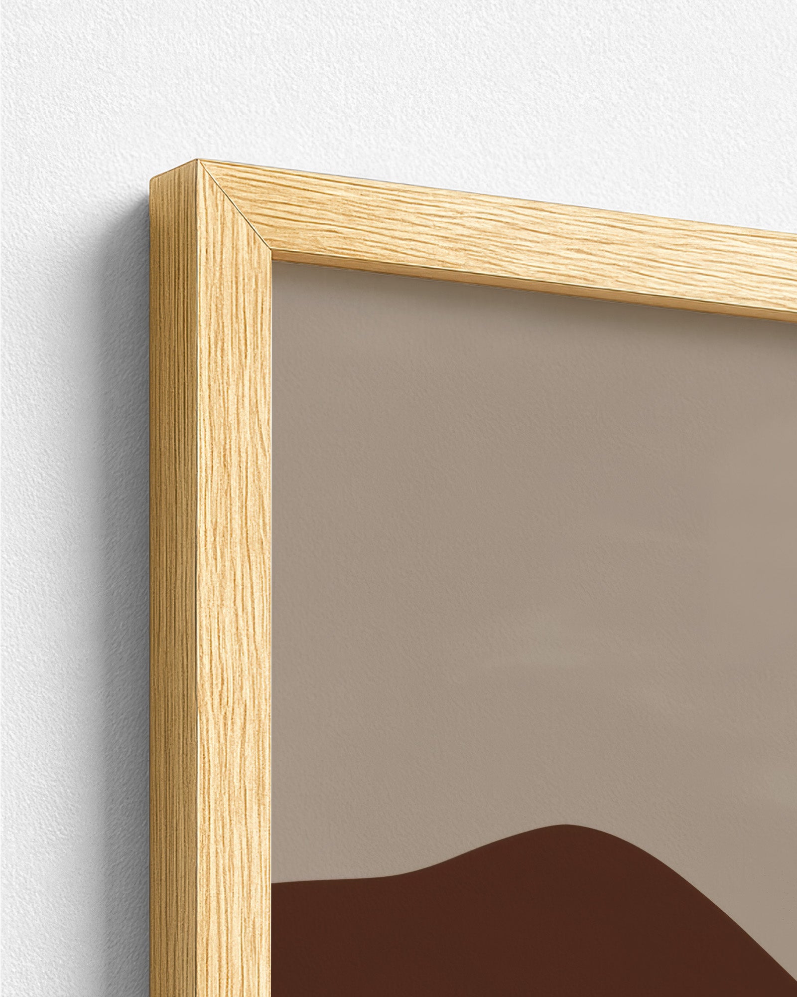Premium artwork printed on high-quality paper, professionally mounted within a durable pine wood frame.
