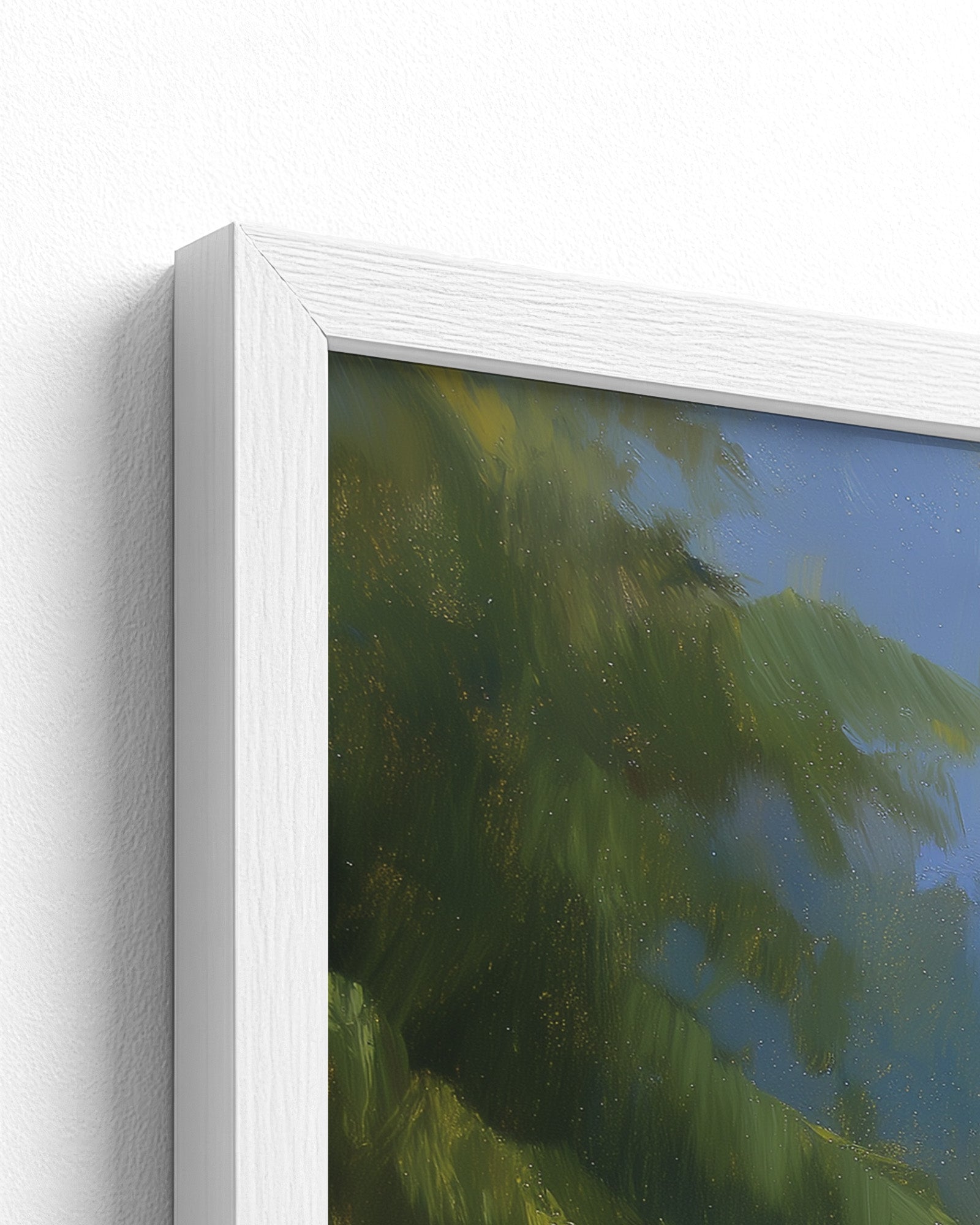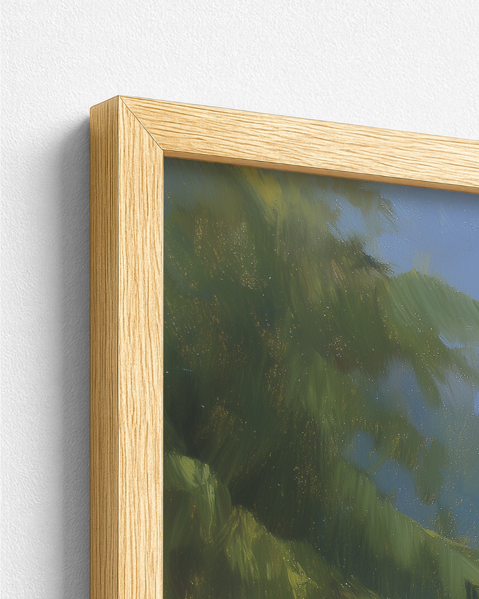 Premium artwork printed on high-quality paper, professionally mounted within a durable pine wood frame.