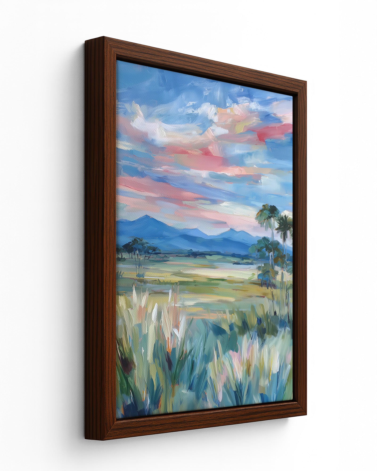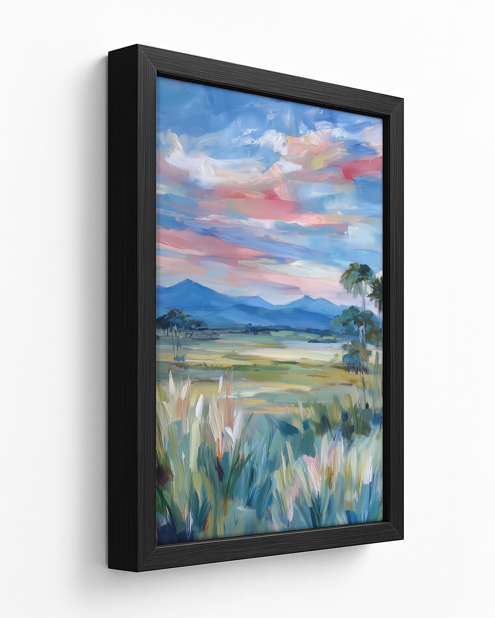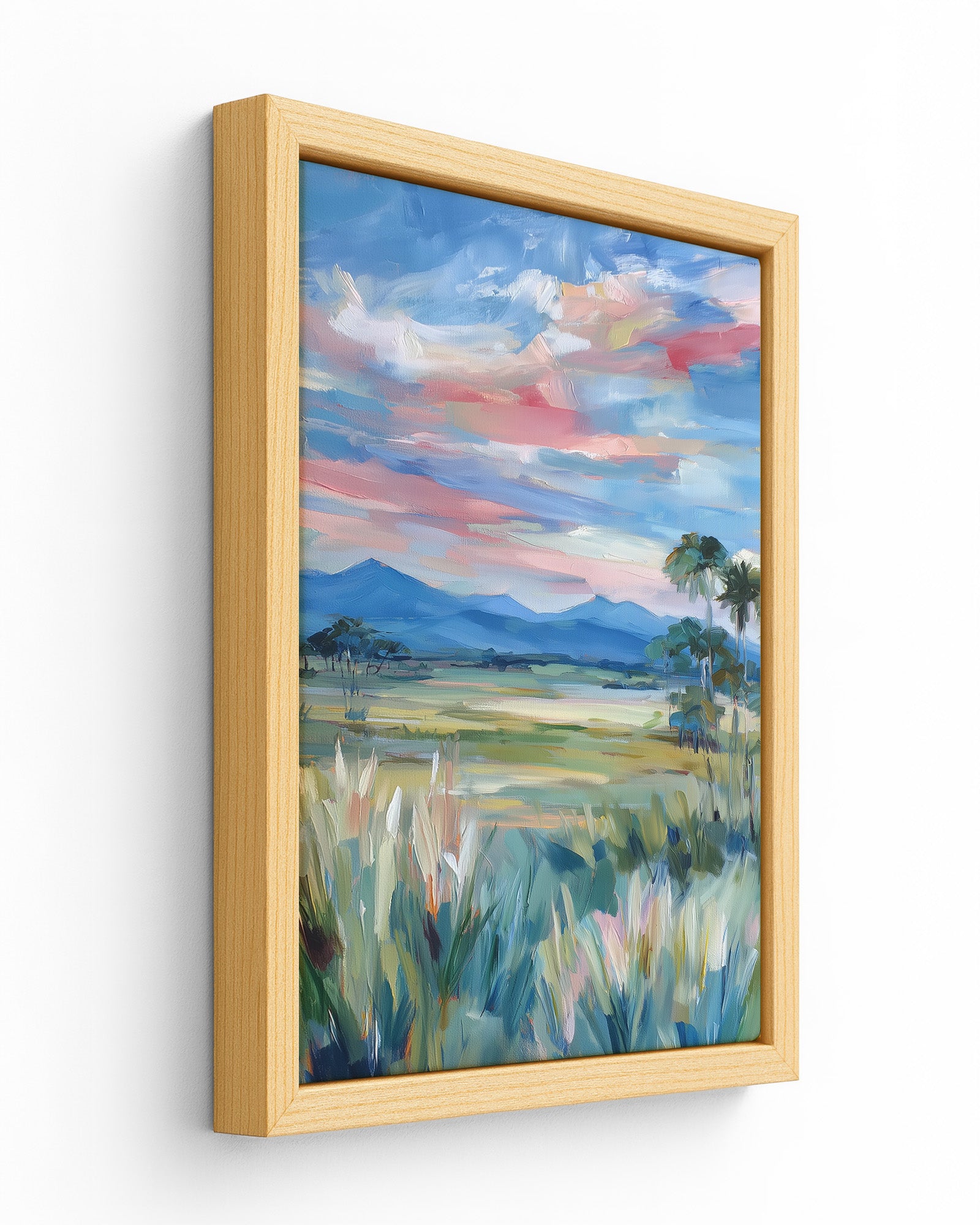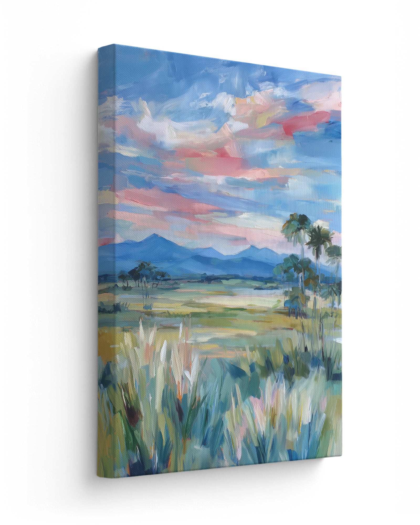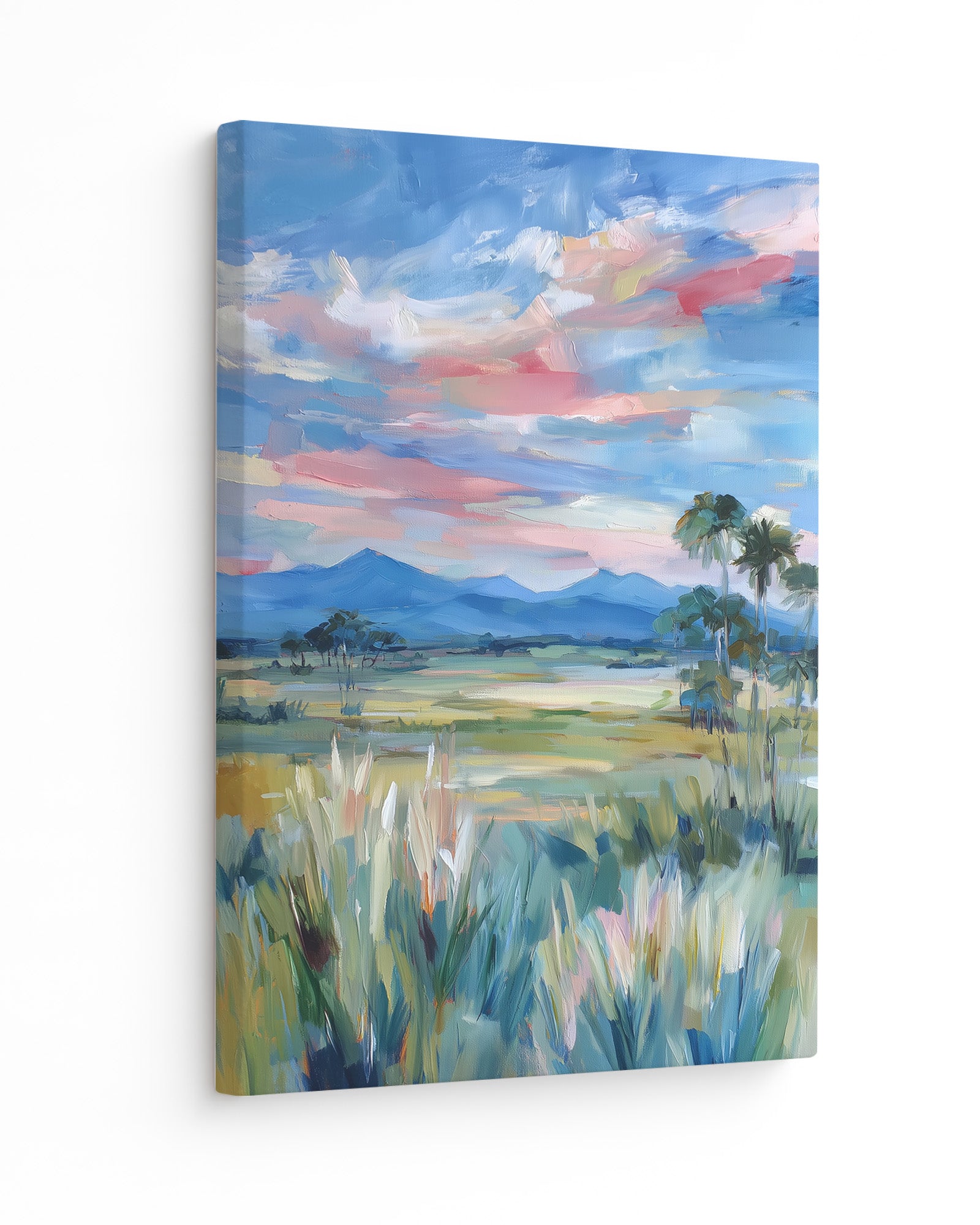 The canvas is stretched over a slim wooden frame with a 2–3 cm depth.