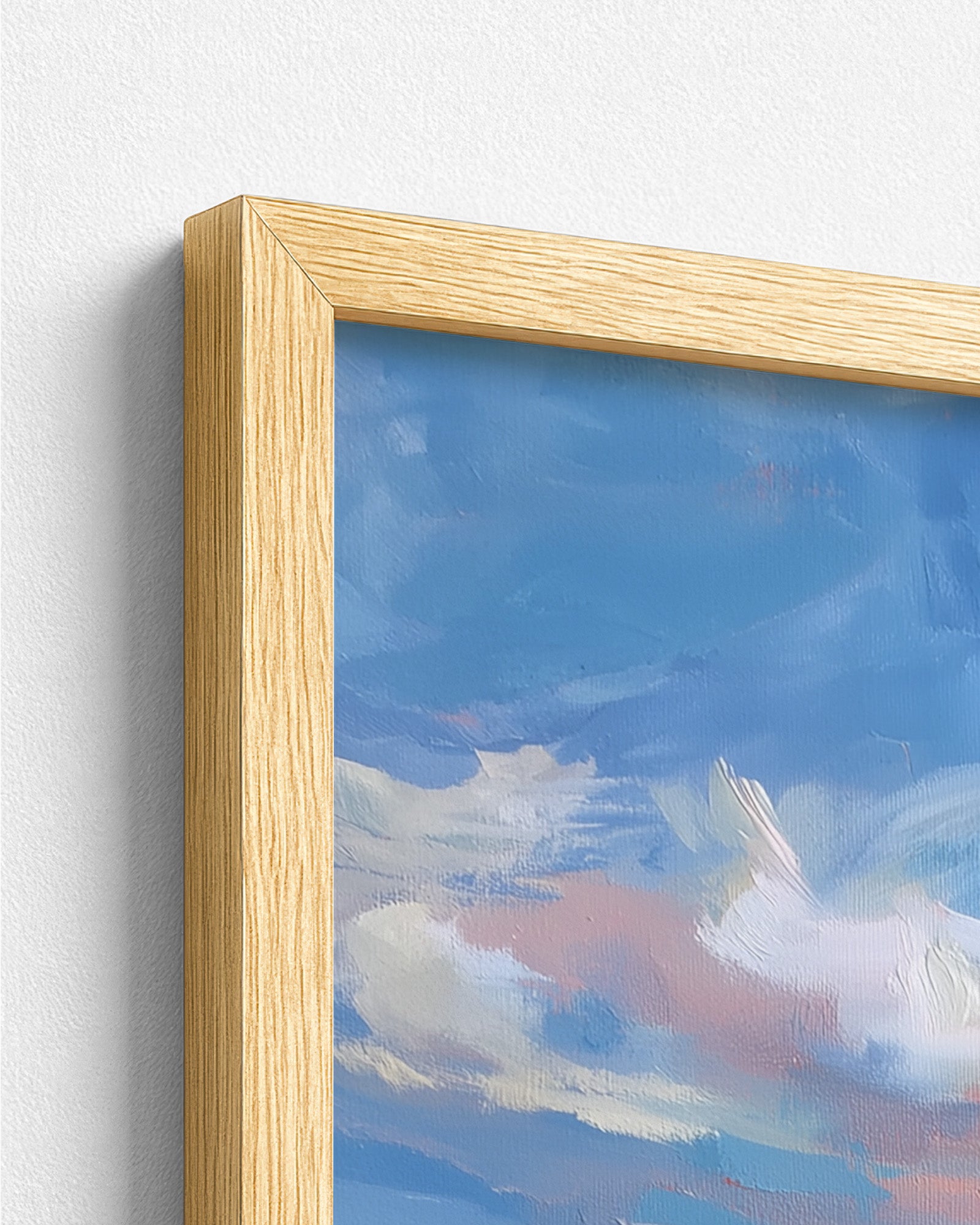 Premium artwork printed on high-quality paper, professionally mounted within a durable pine wood frame.