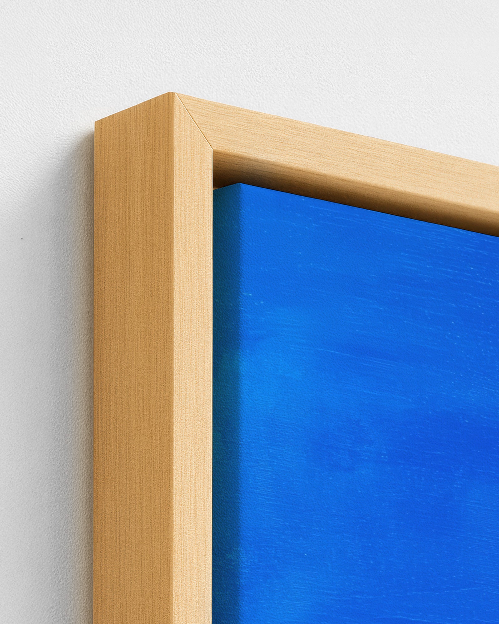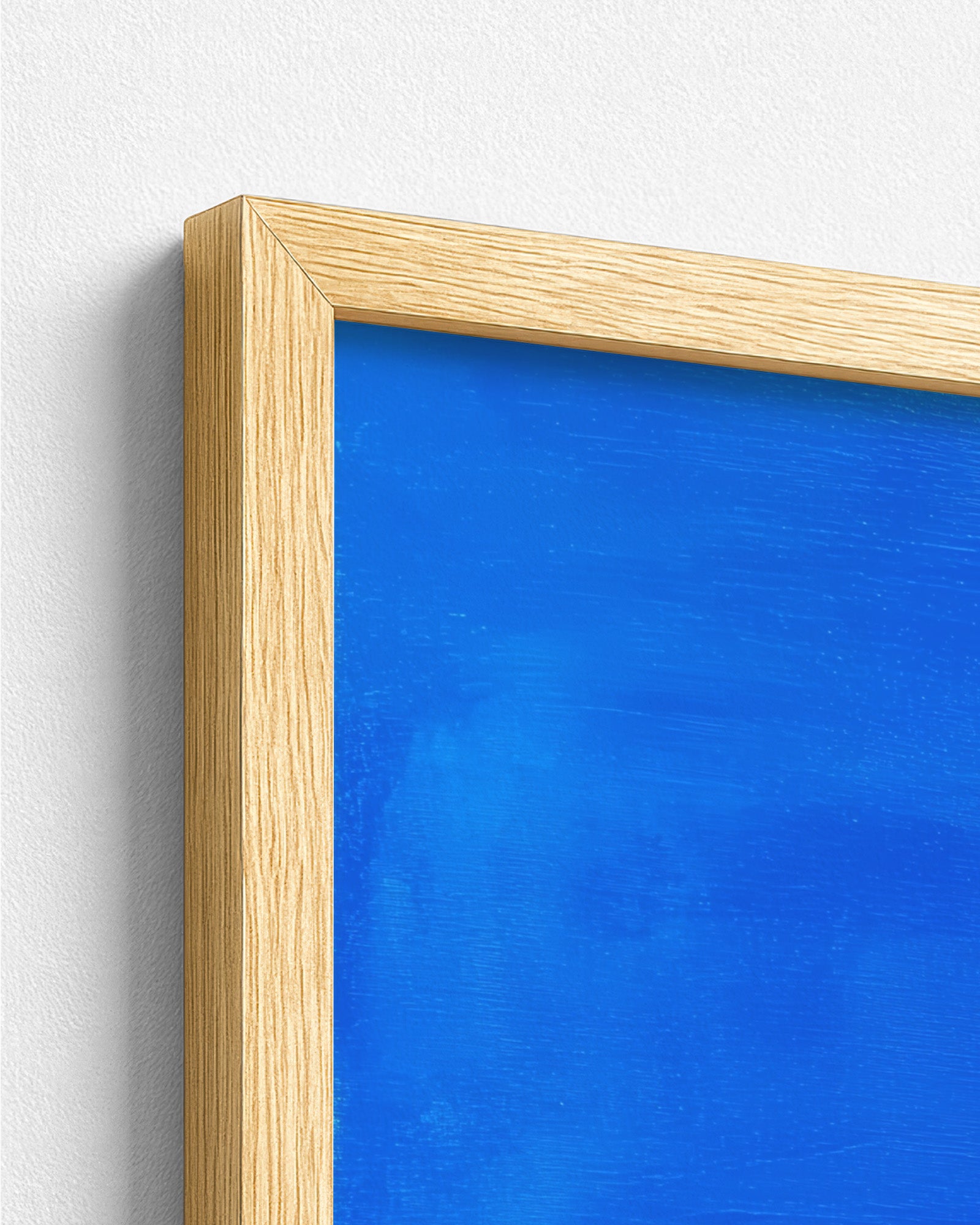 Premium artwork printed on high-quality paper, professionally mounted within a durable pine wood frame.