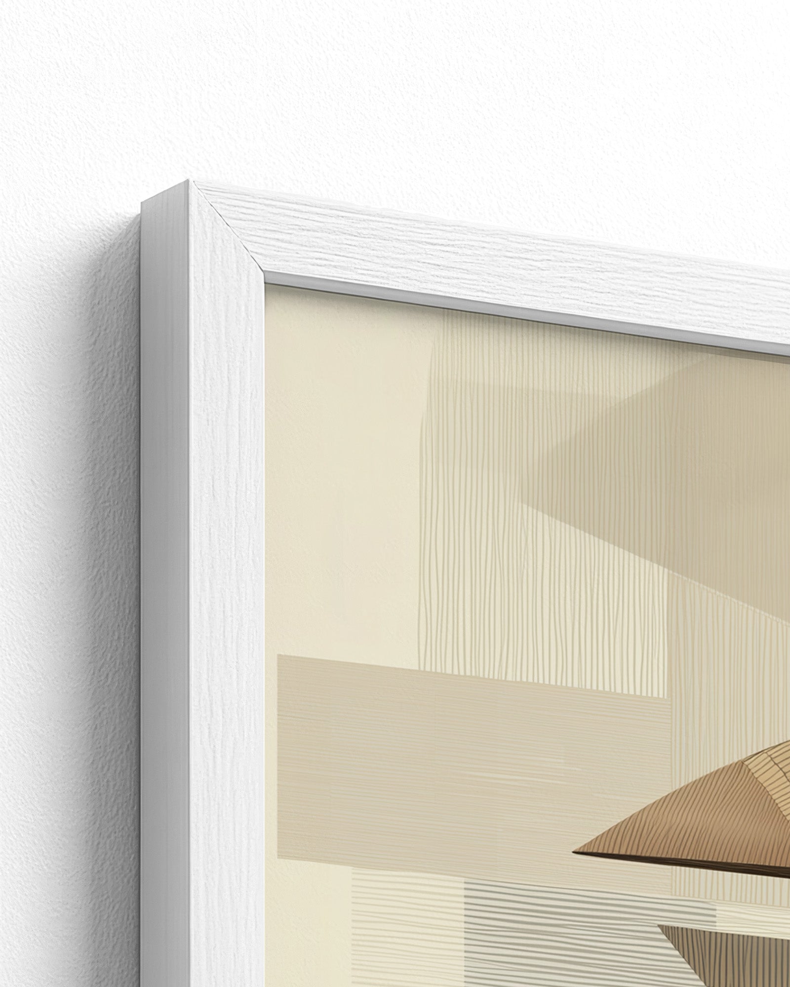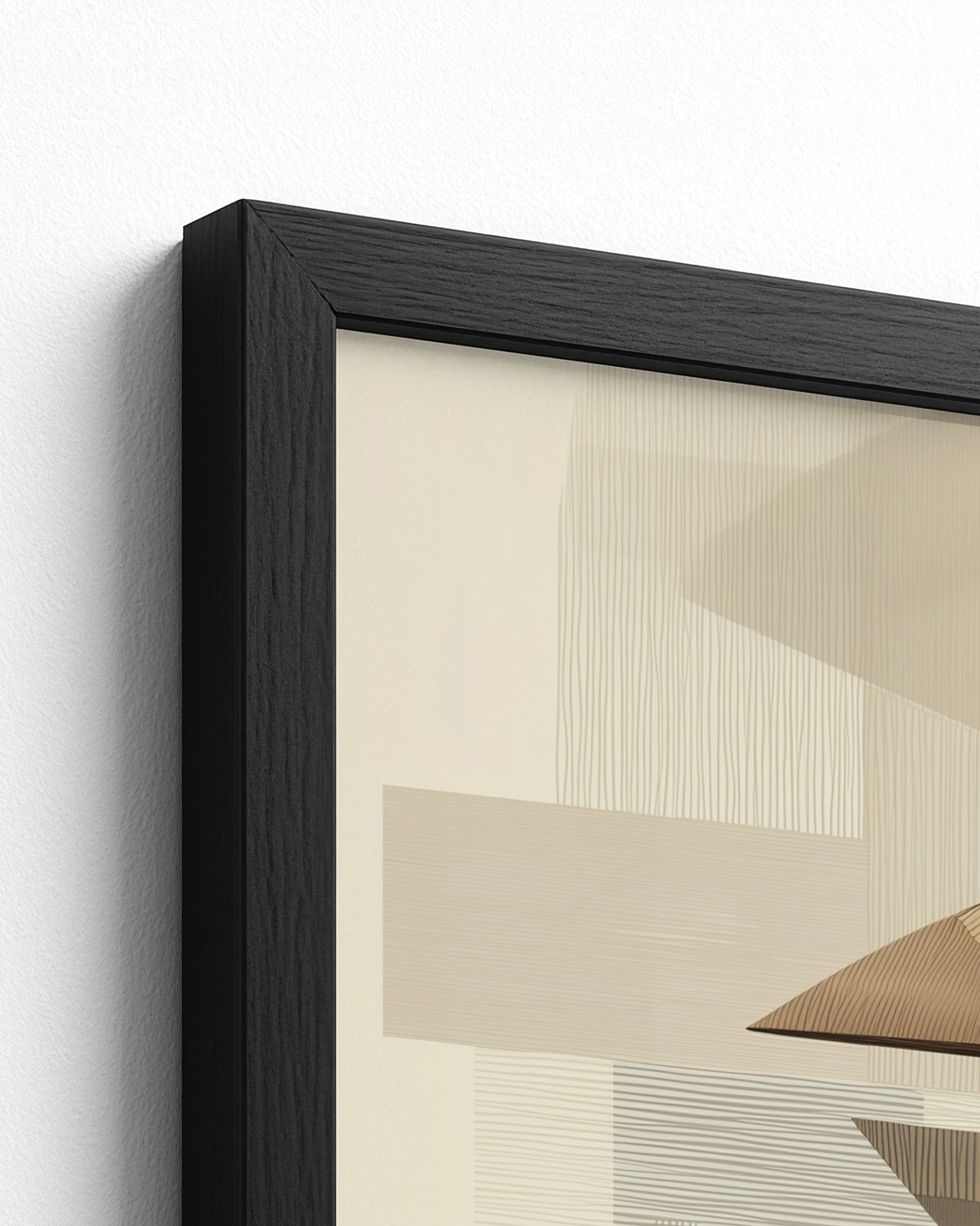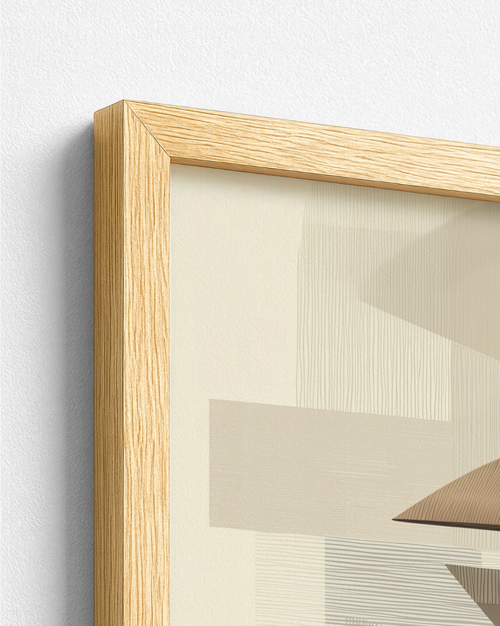 Premium artwork printed on high-quality paper, professionally mounted within a durable pine wood frame.