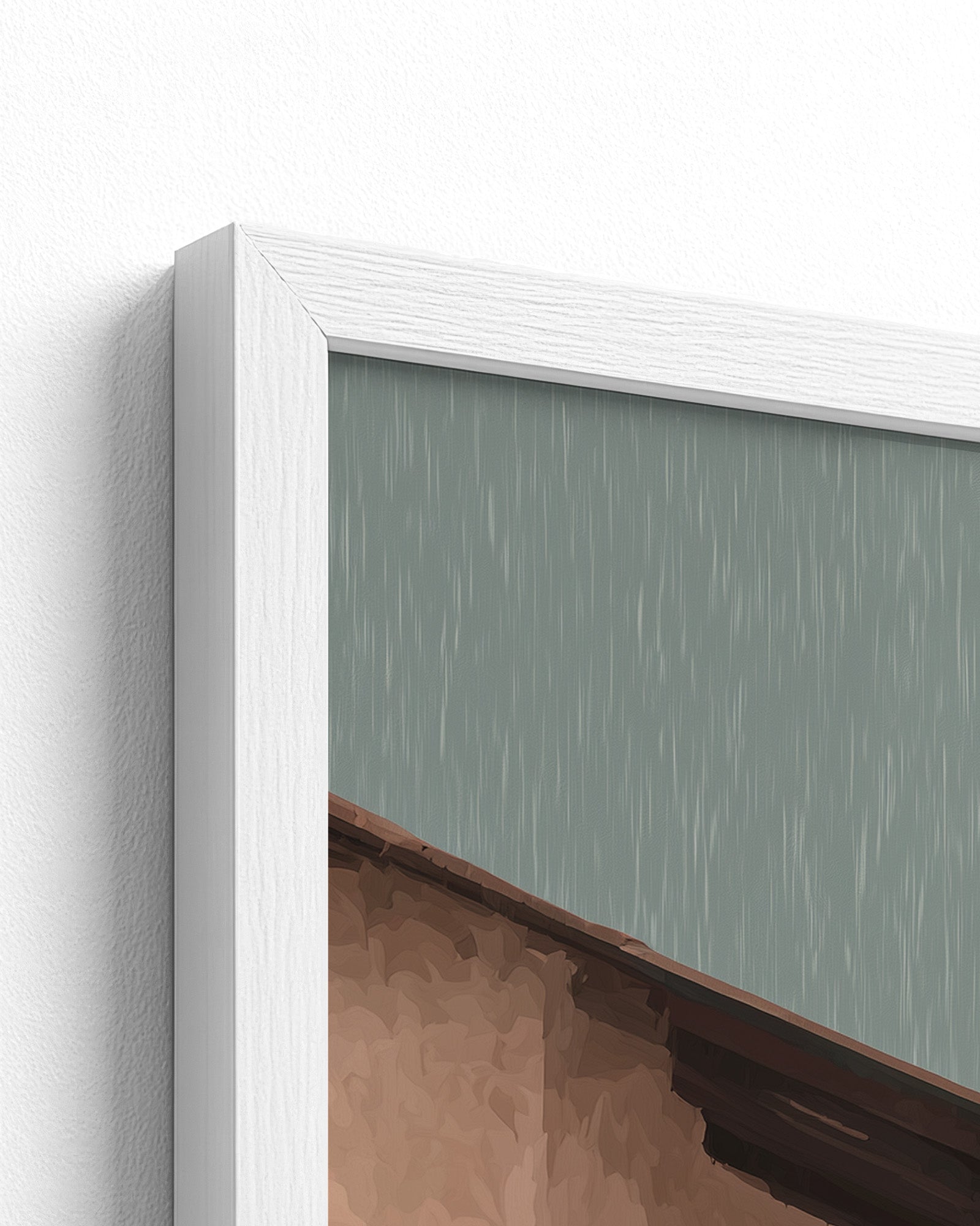 Premium artwork printed on high-quality paper, professionally mounted within a durable pine wood frame.