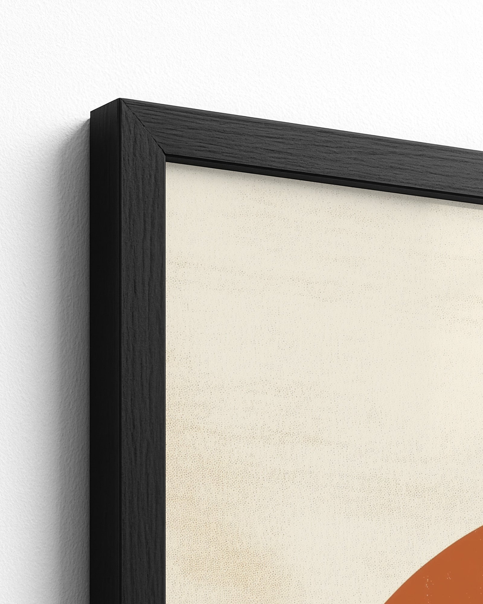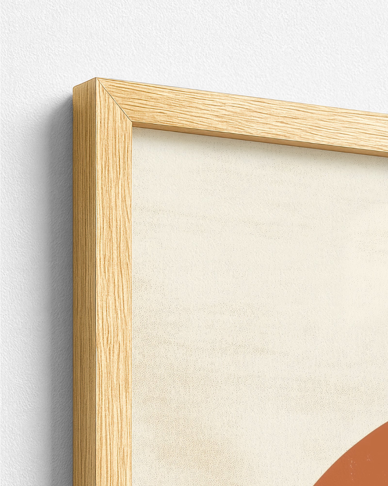 Premium artwork printed on high-quality paper, professionally mounted within a durable pine wood frame.