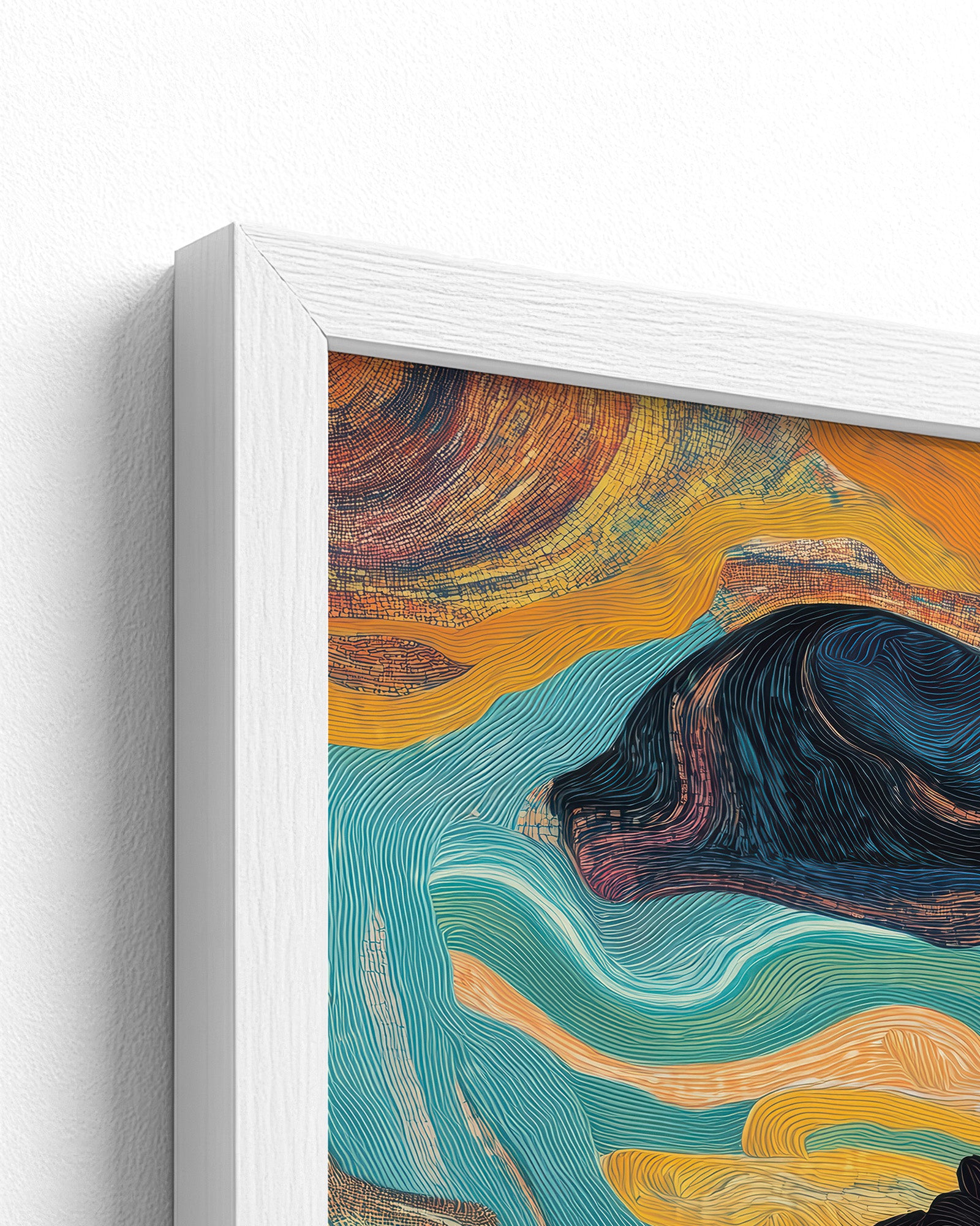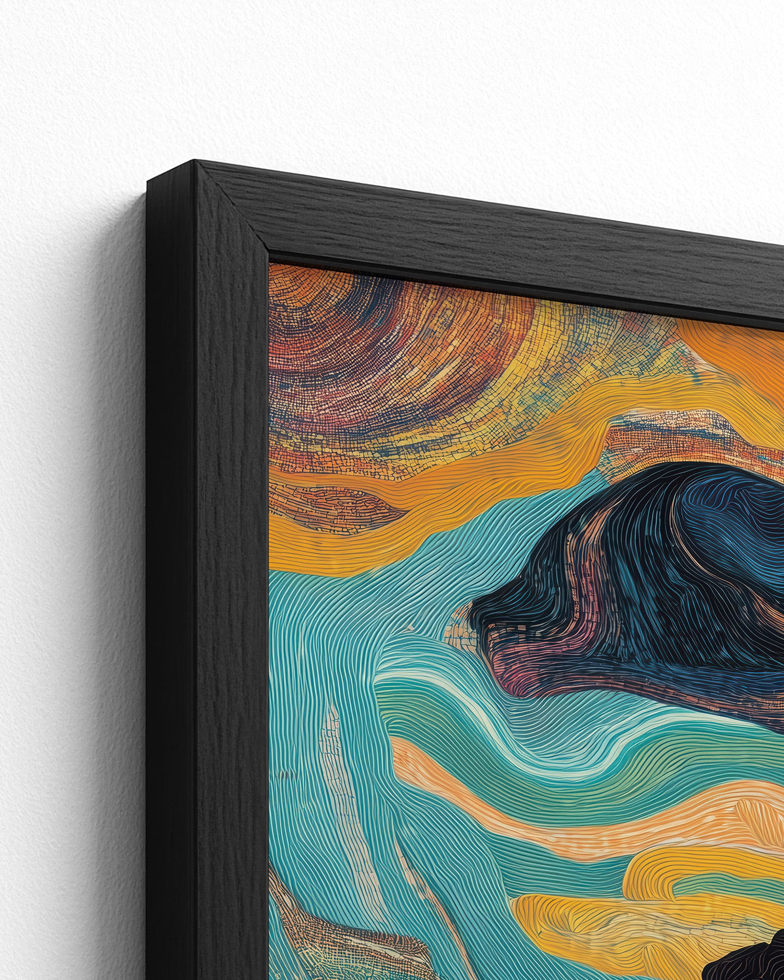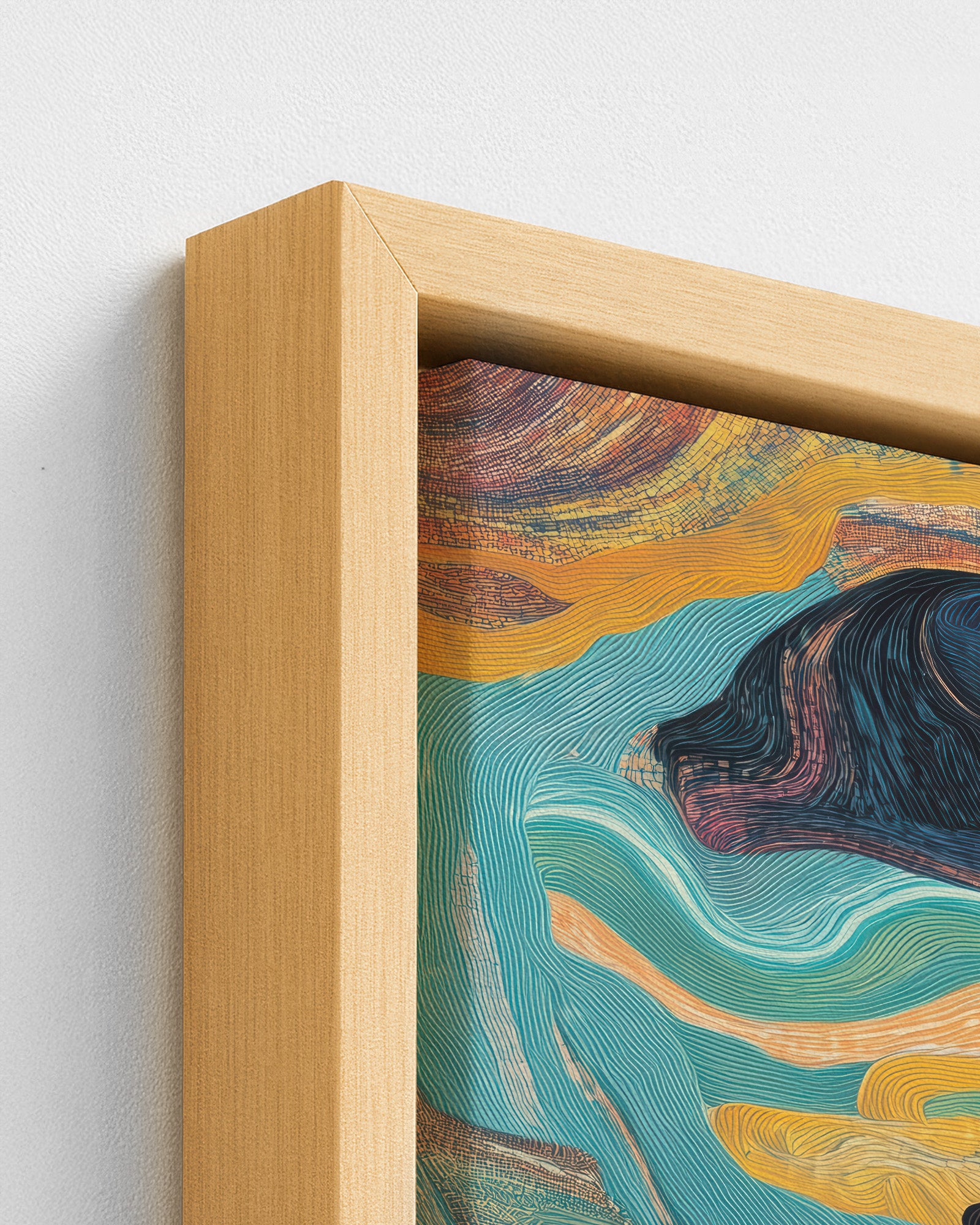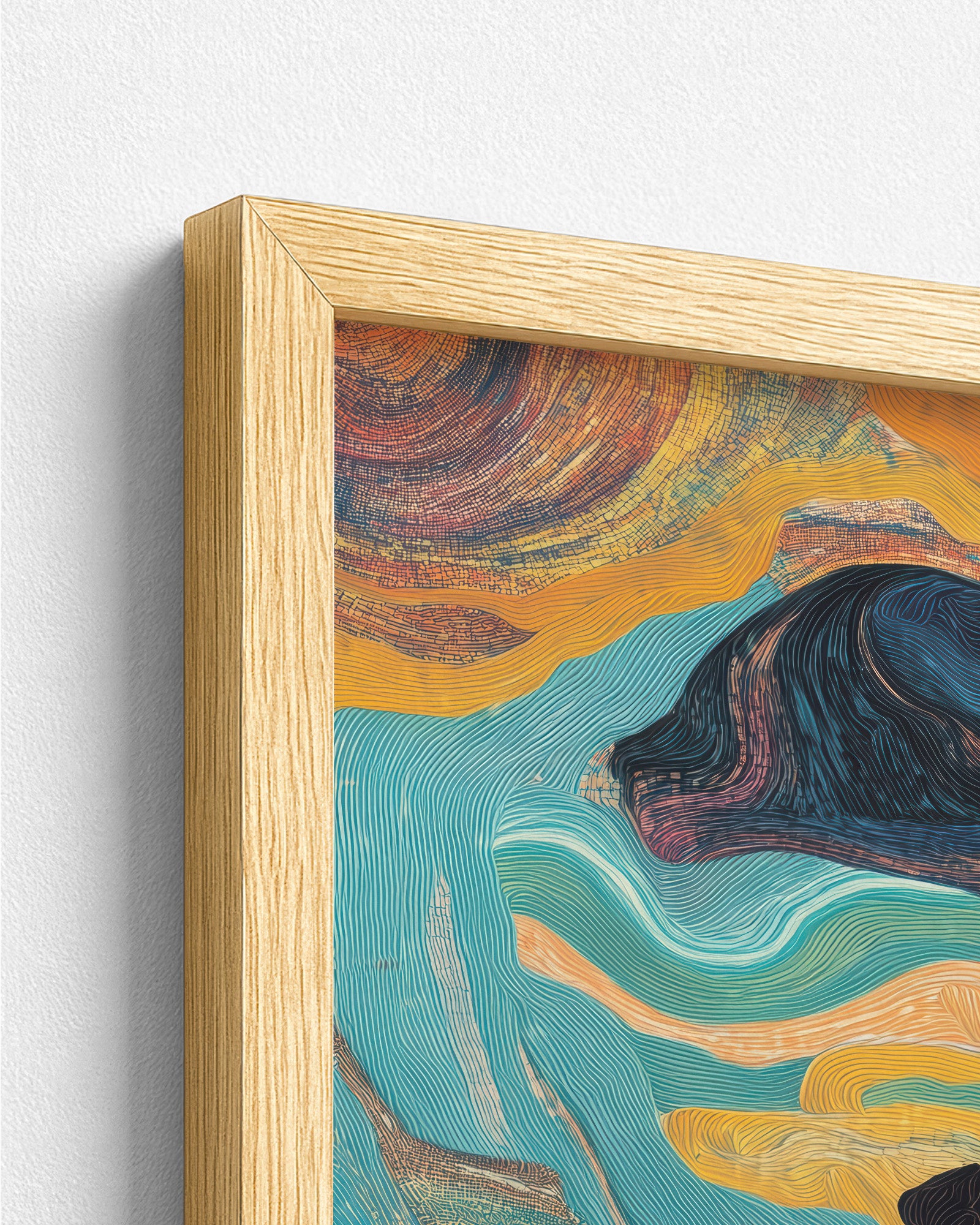 Premium artwork printed on high-quality paper, professionally mounted within a durable pine wood frame.