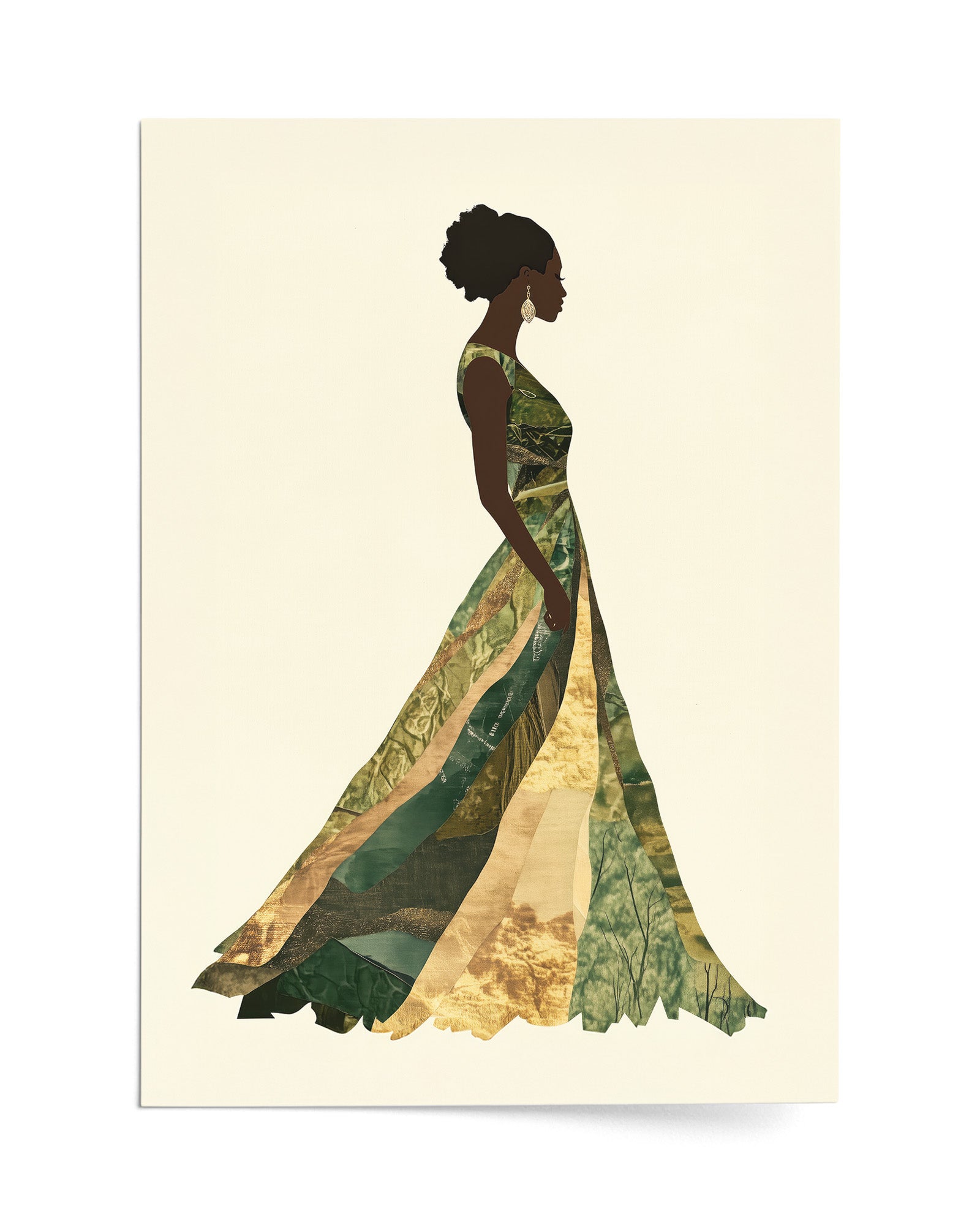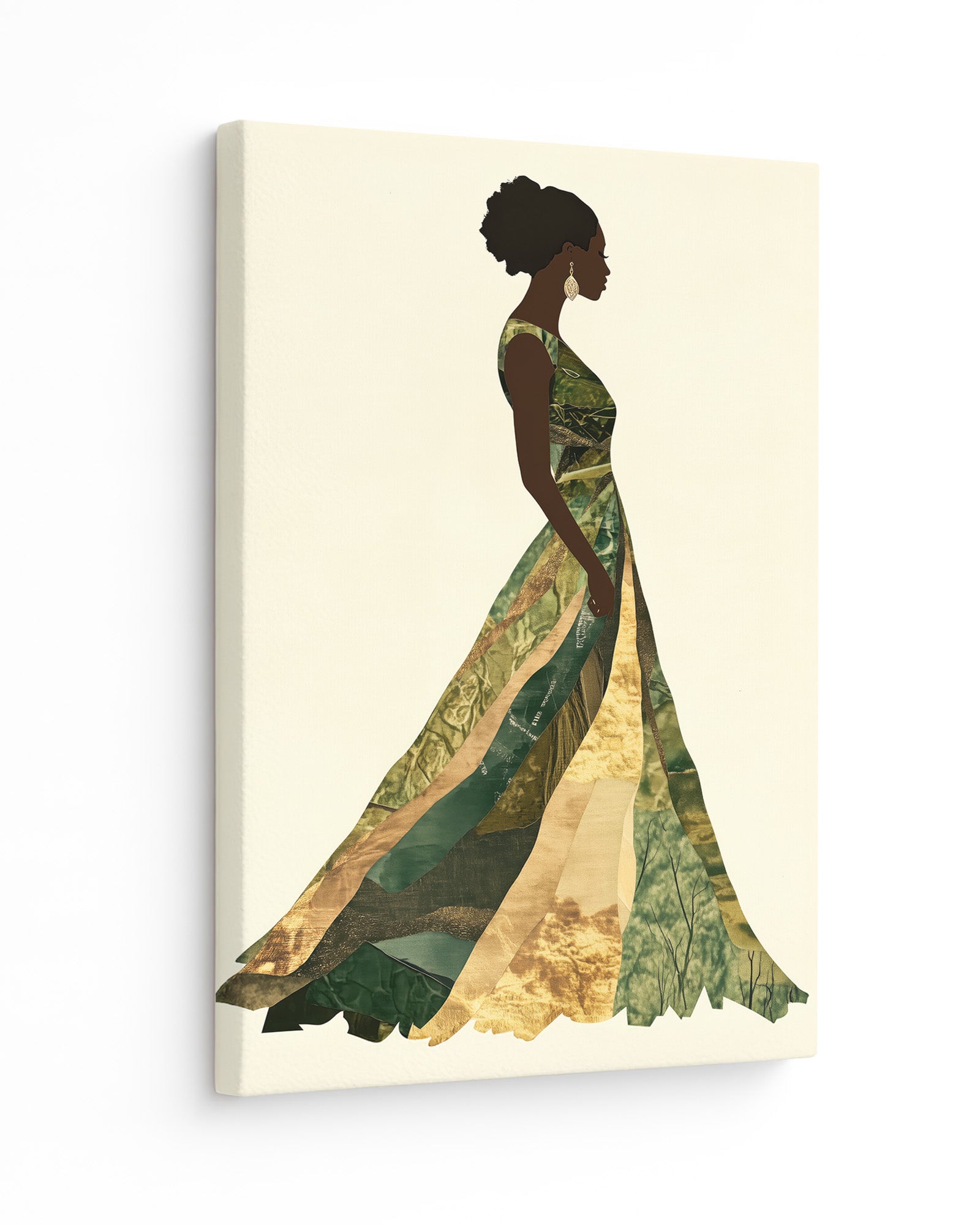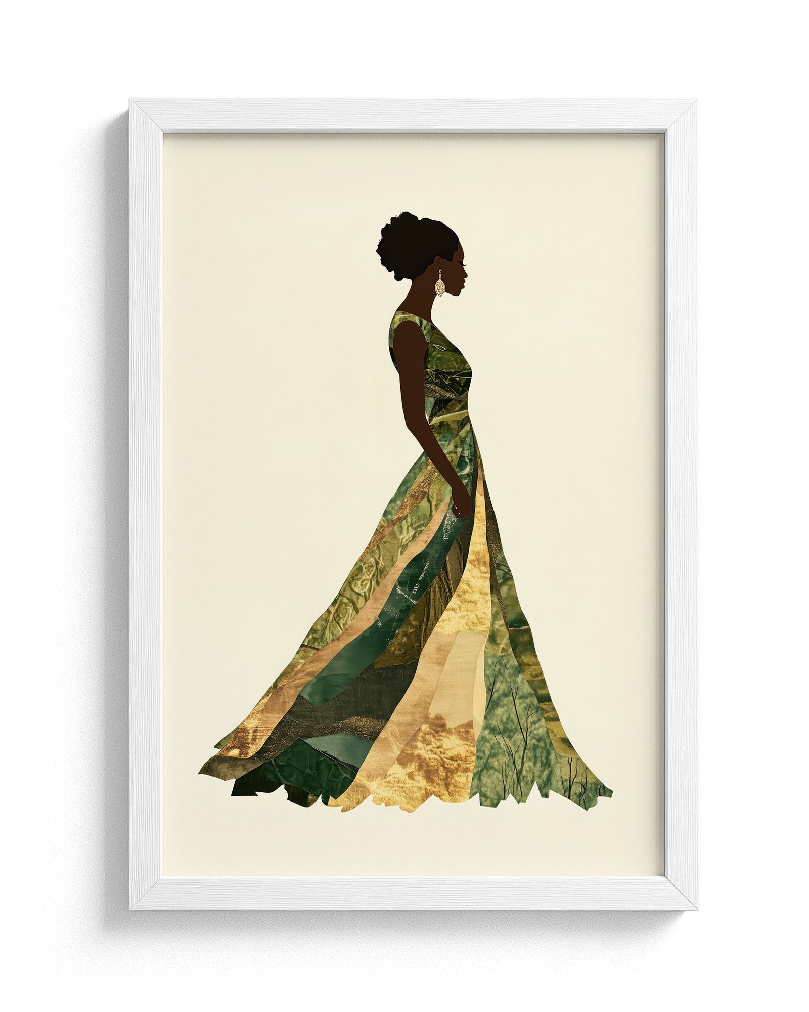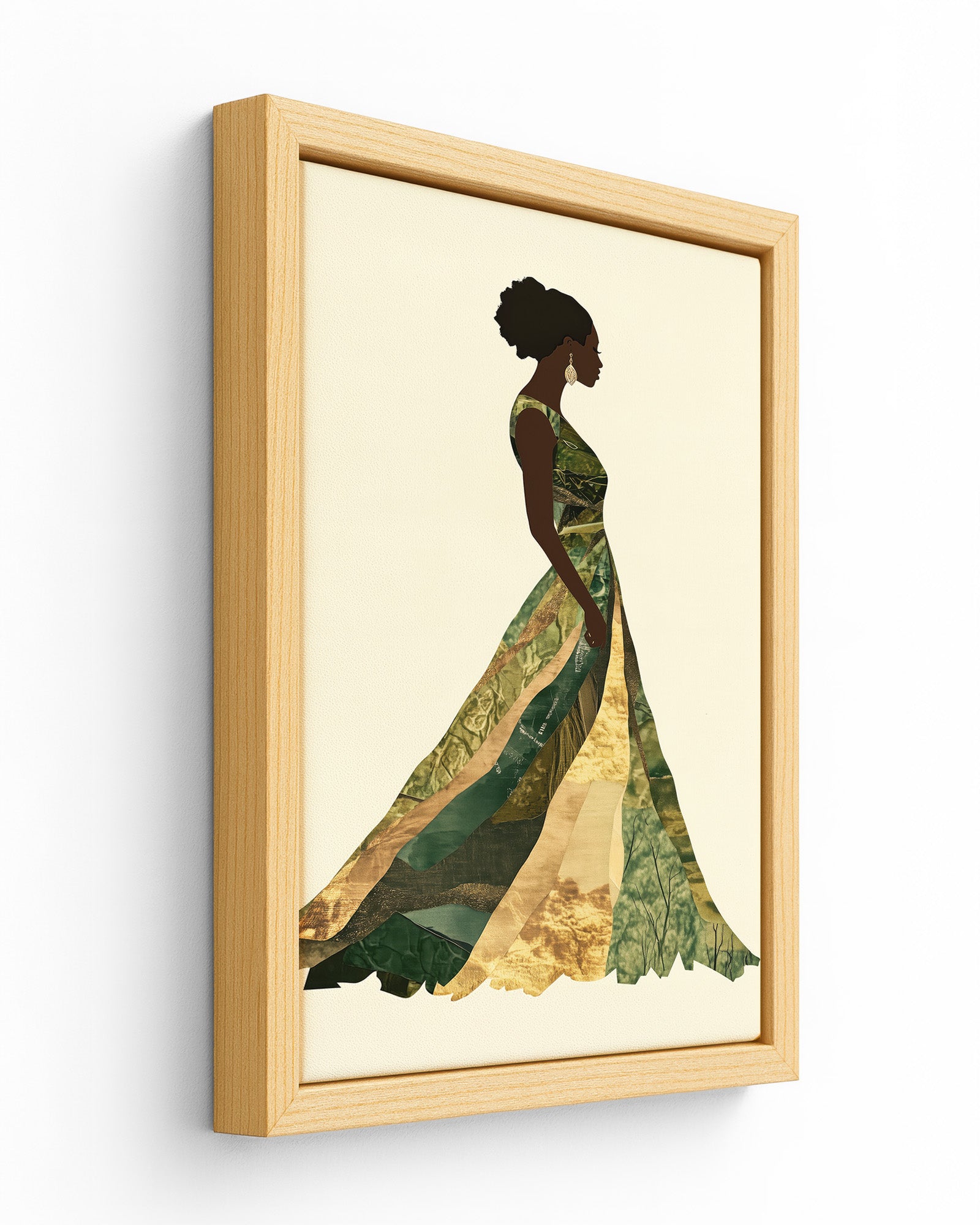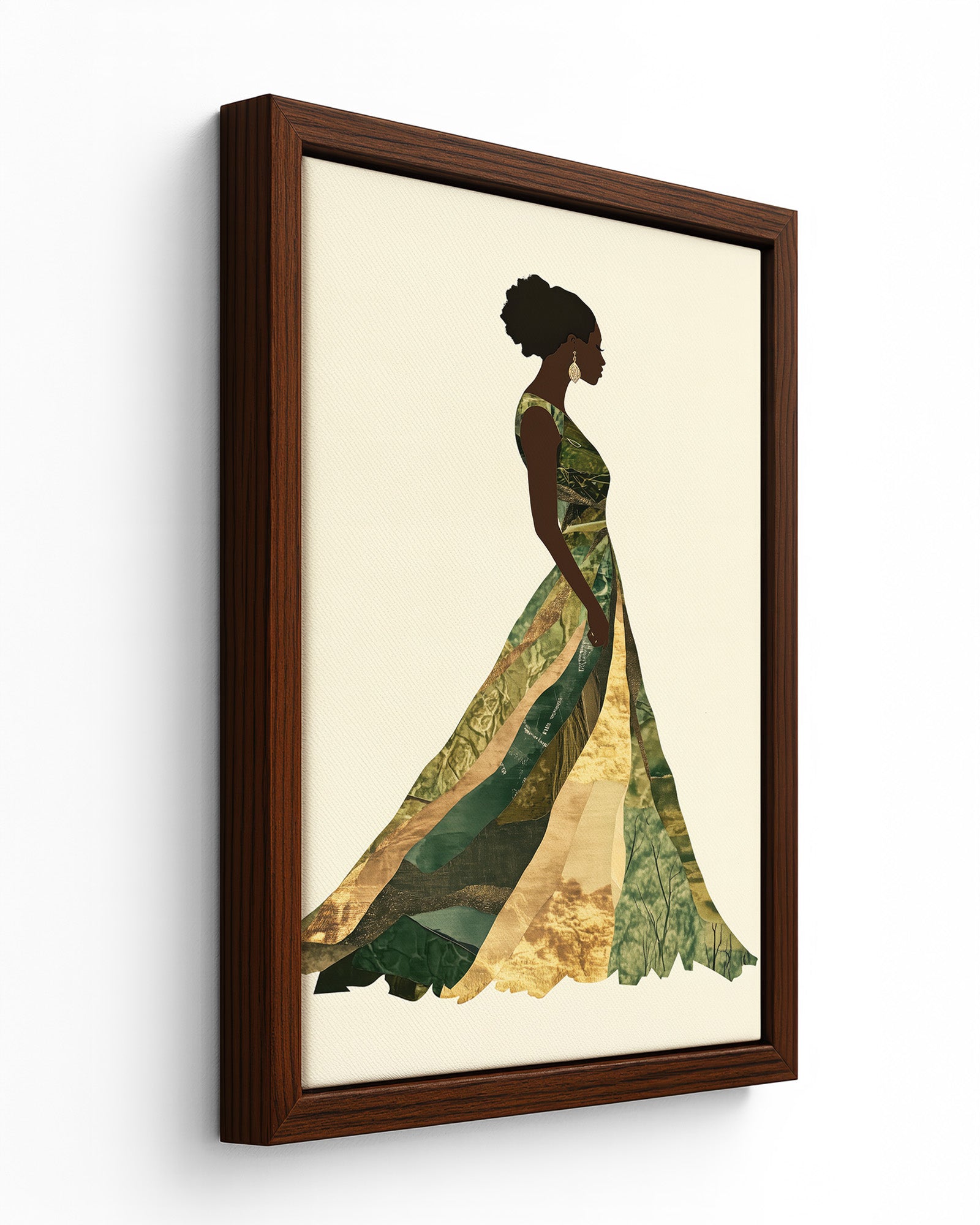 Infuse your space with the elegance of African heritage and nature with this stunning minimalist wall art. Featuring a serene side-profile of an African woman, her dress flowing in a blend of soft greens and golds.