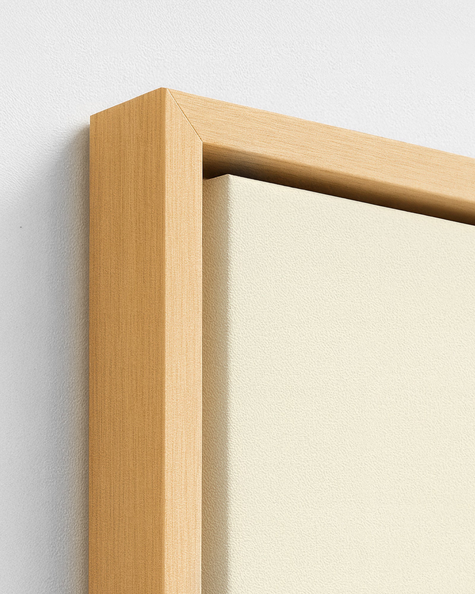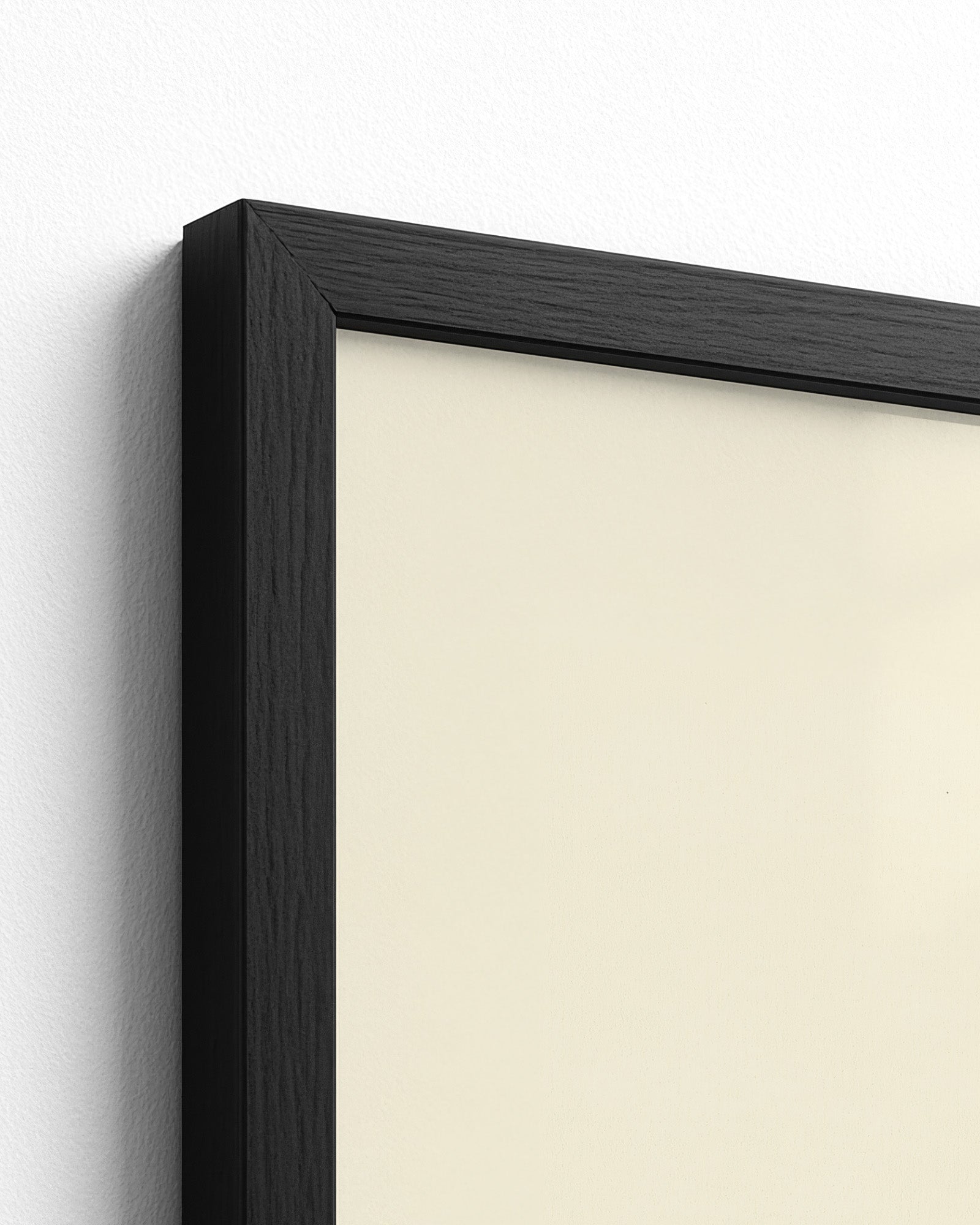 Premium artwork printed on high-quality paper, professionally mounted within a durable pine wood frame.