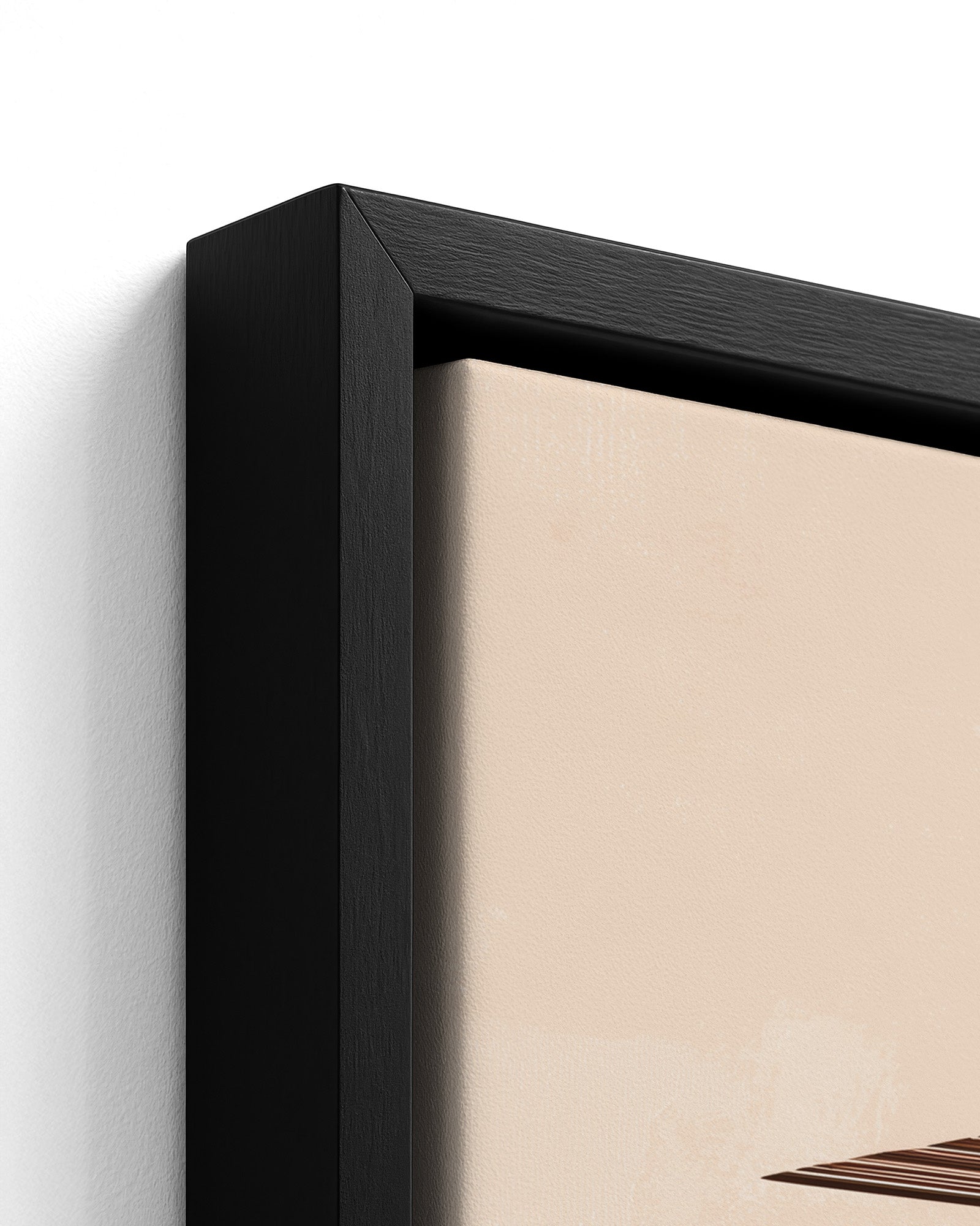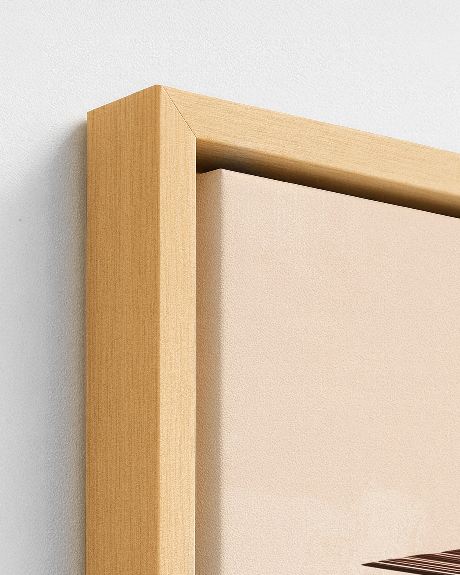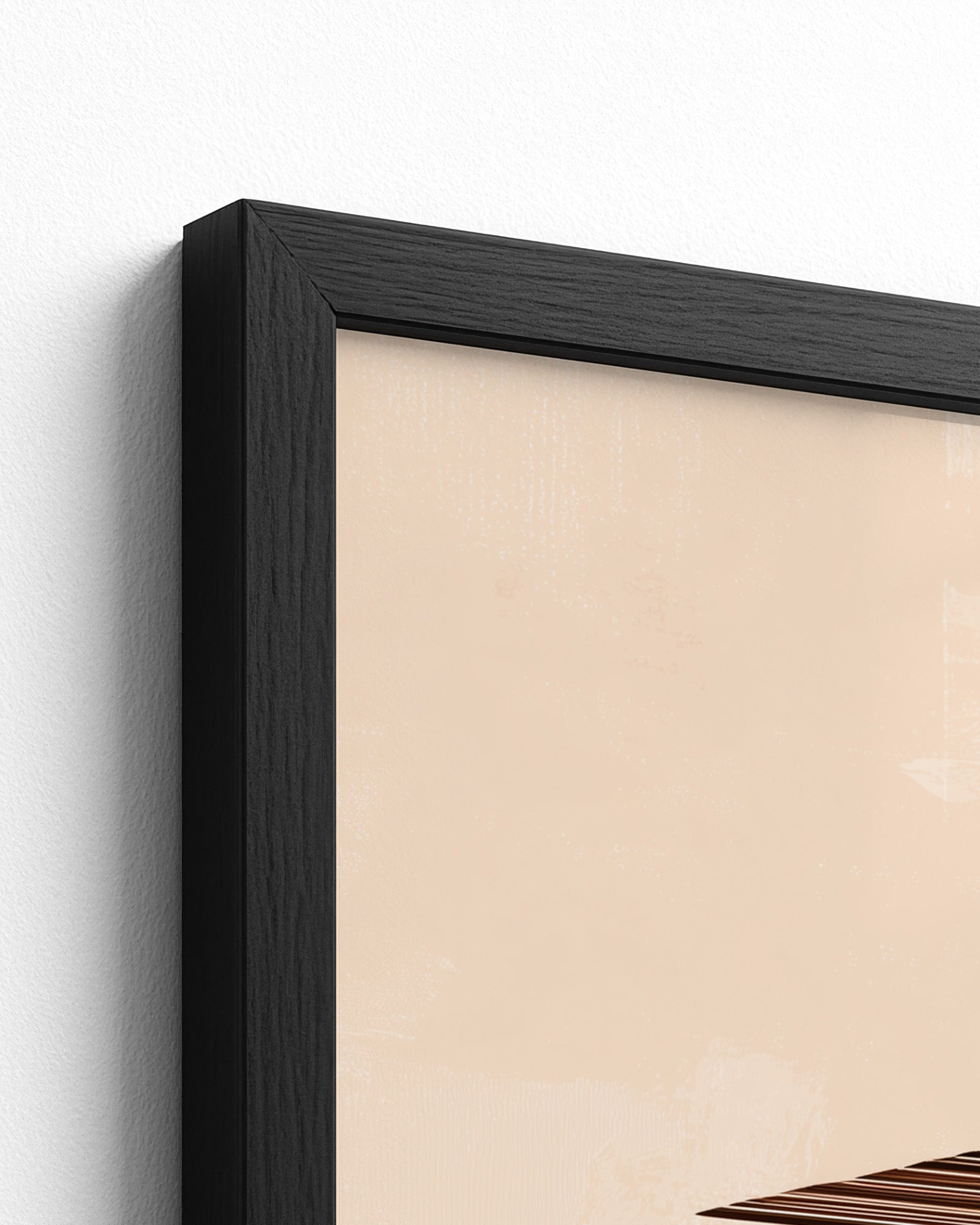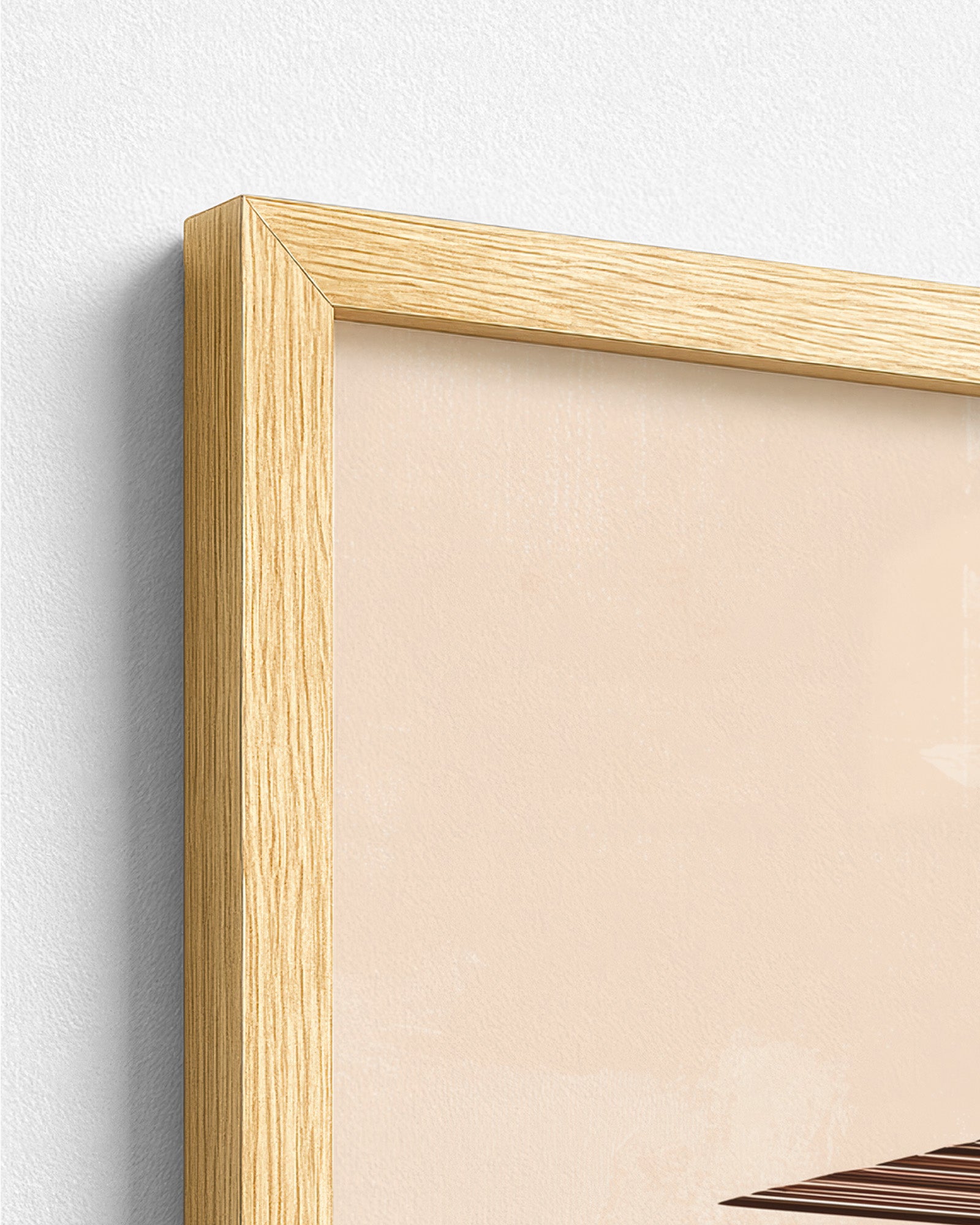 Premium artwork printed on high-quality paper, professionally mounted within a durable pine wood frame.