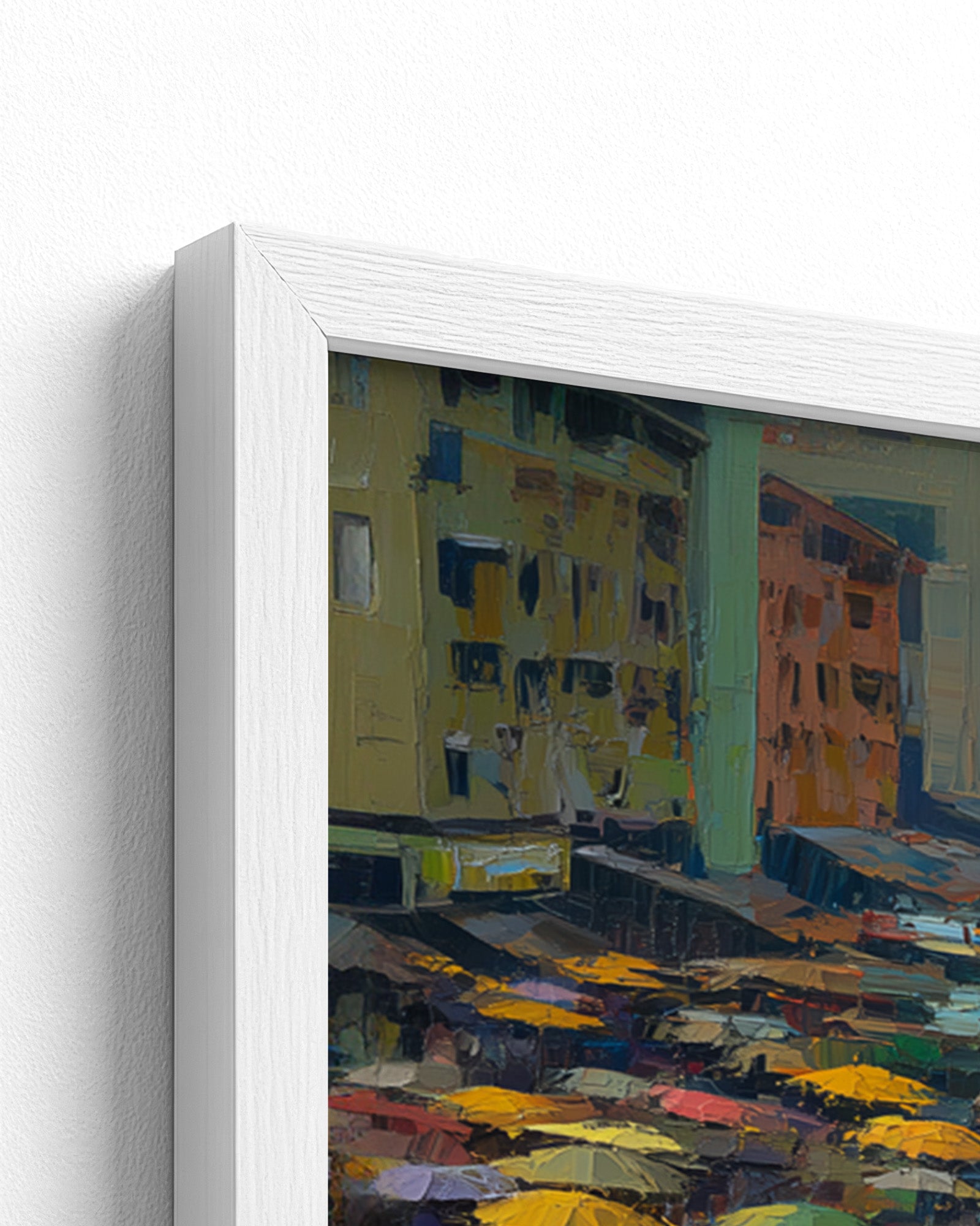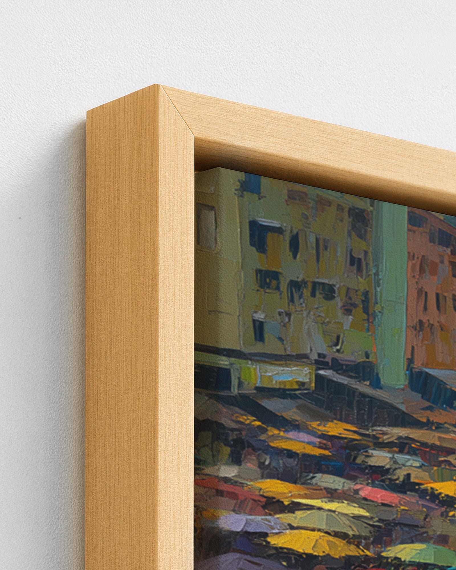 The canvas is stretched over a slim wooden frame with a 2–3 cm depth.