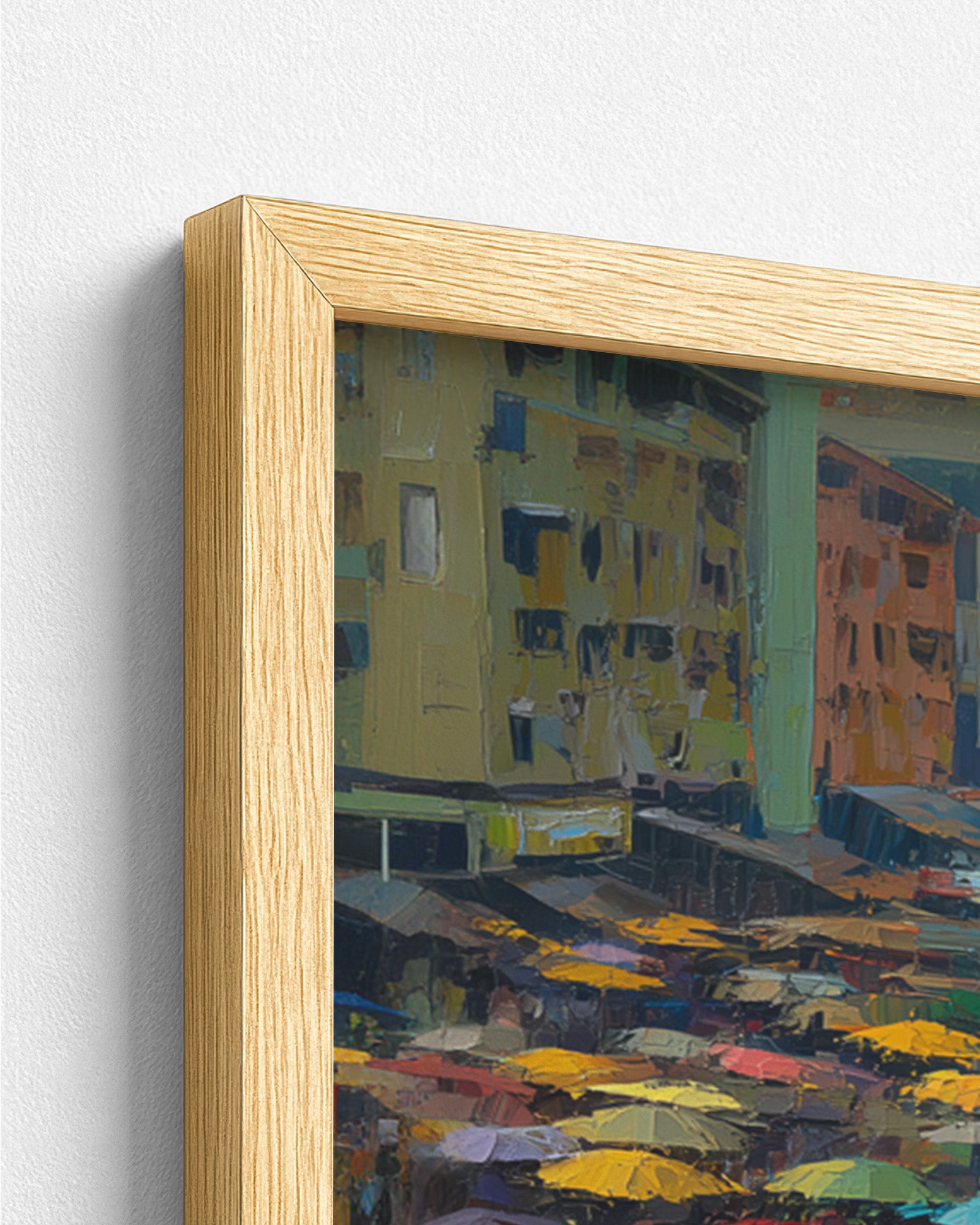 Premium artwork printed on high-quality paper, professionally mounted within a durable pine wood frame.