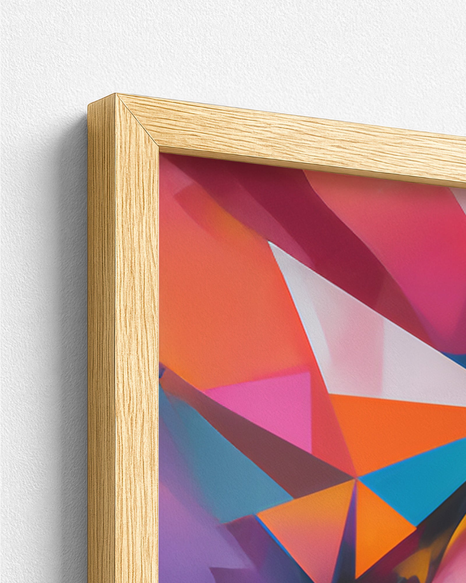 Premium artwork printed on high-quality paper, professionally mounted within a durable pine wood frame.