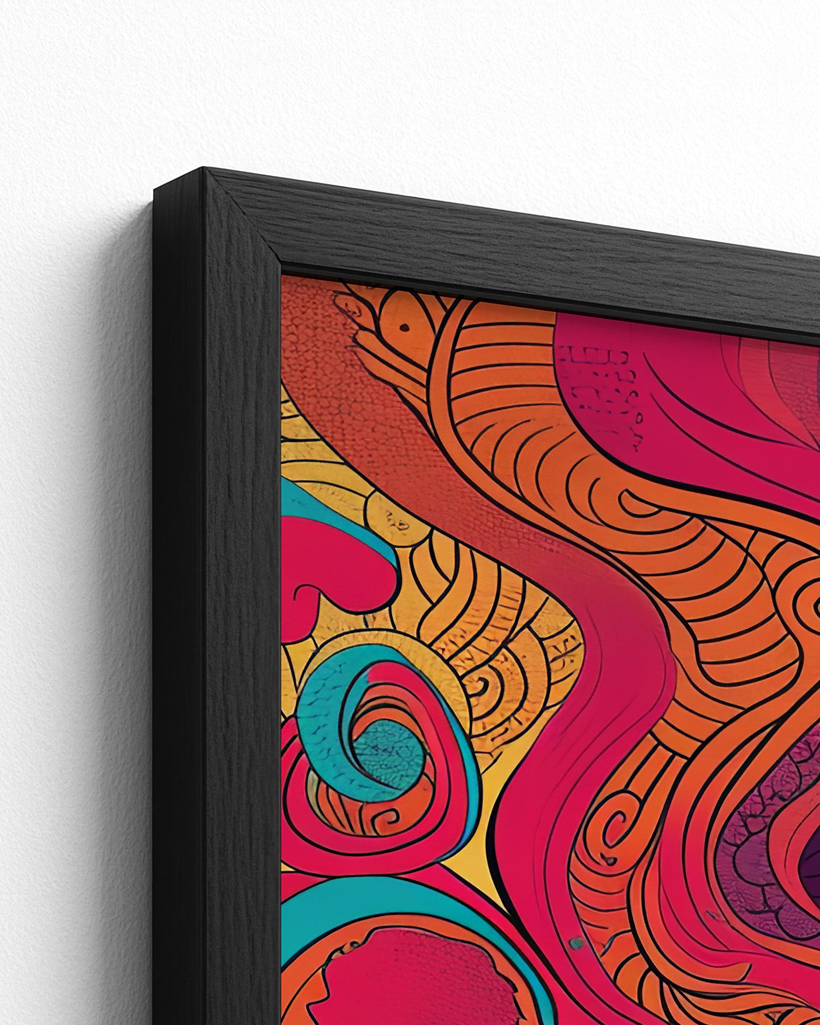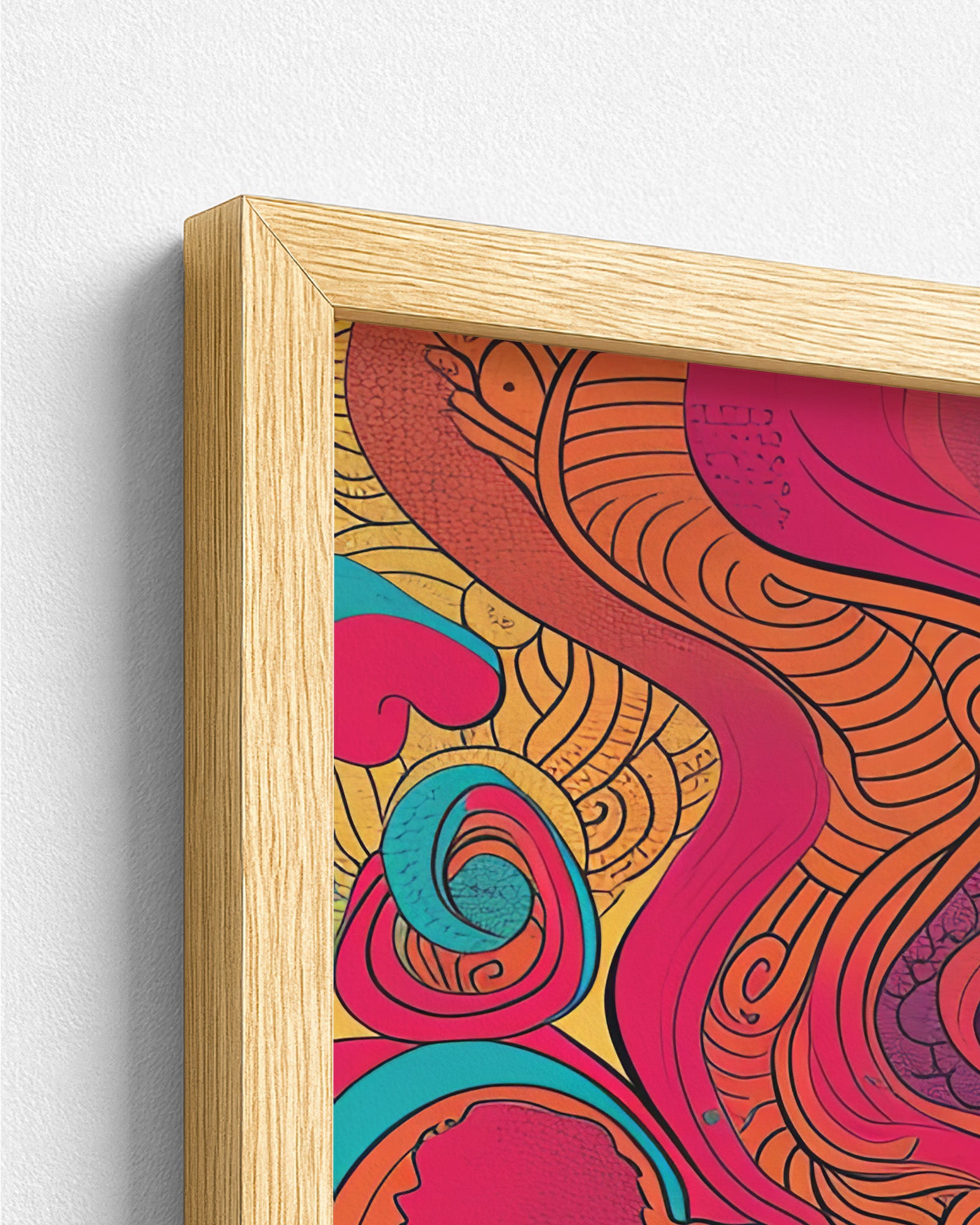 Premium artwork printed on high-quality paper, professionally mounted within a durable pine wood frame.