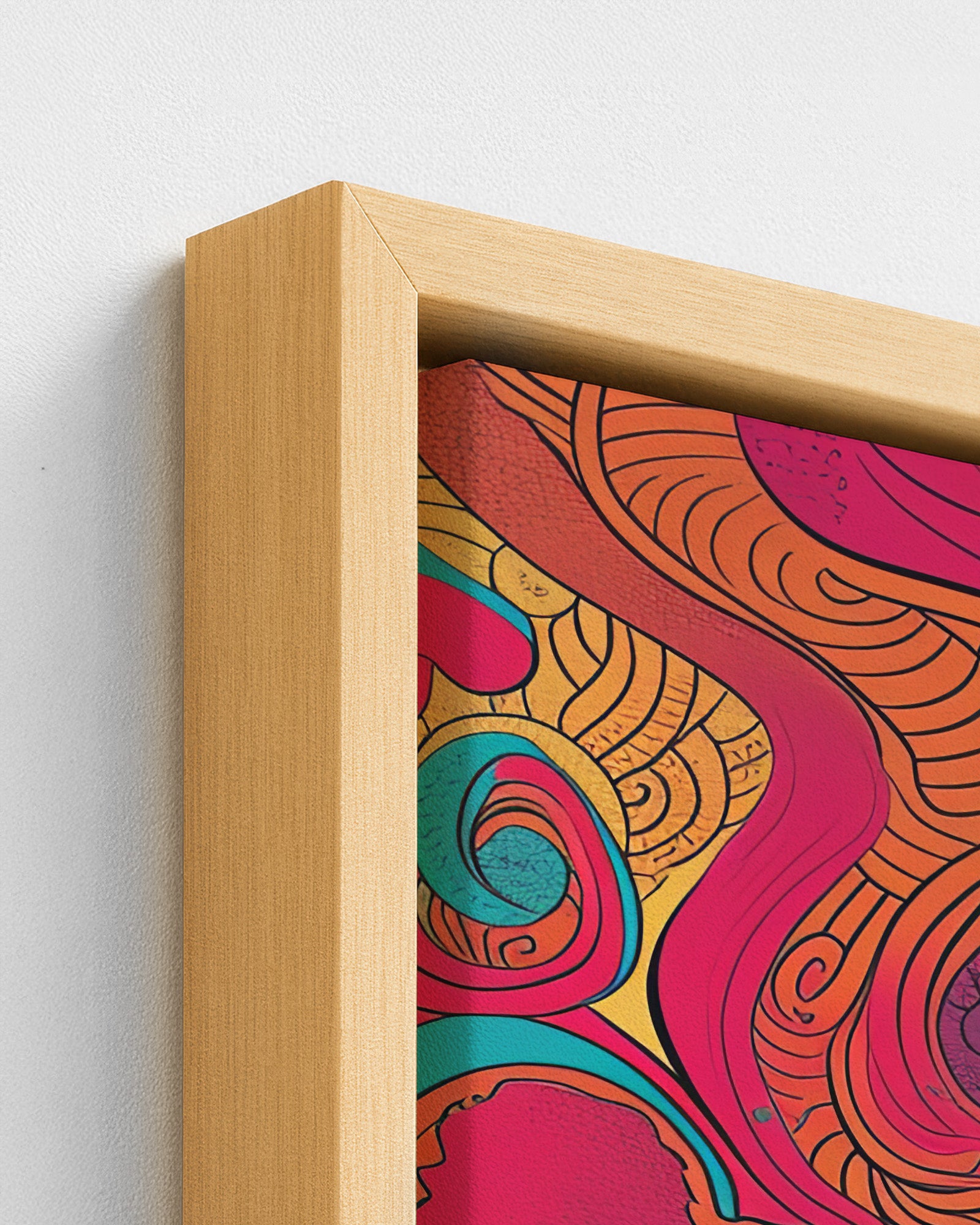 The canvas is stretched over a slim wooden frame with a 2–3 cm depth.